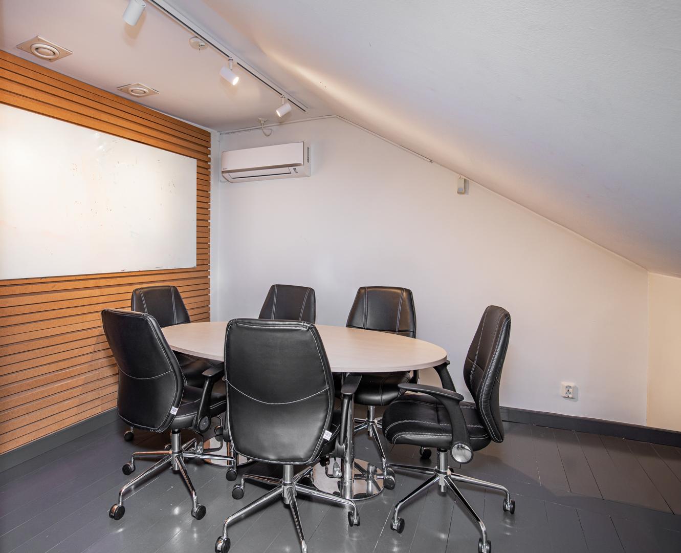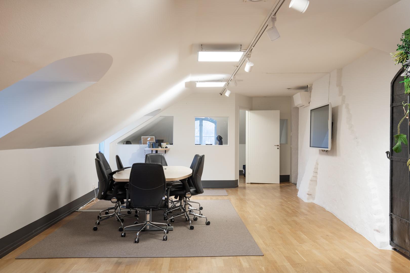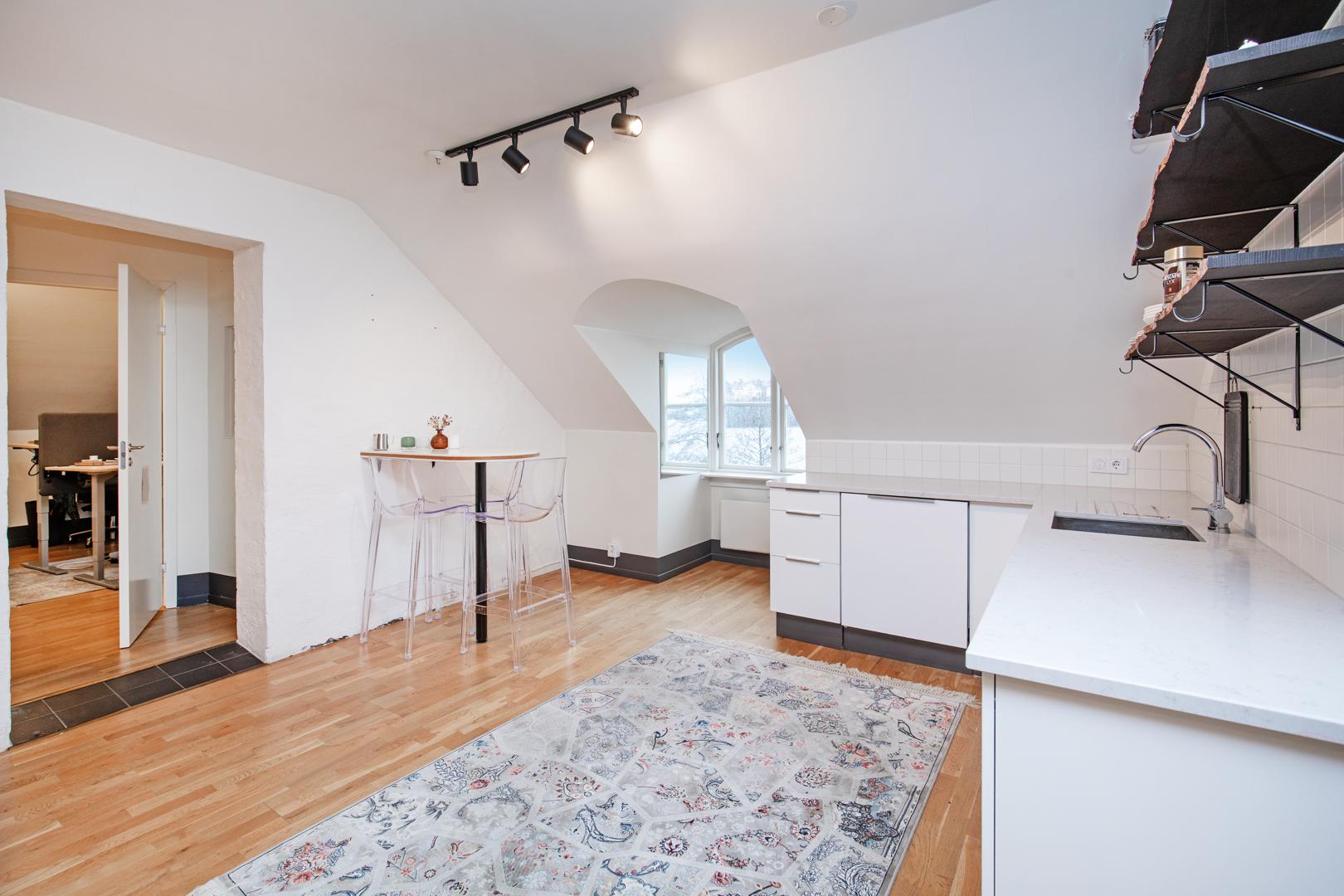 Lokalen är idealisk för företag som vill ha ett flexibelt kontor med karaktär, inklusive fyra separata kontorsrum i olika storlekar, ett rymligt öppet kontorslandskap och ett mötesrum som nås via en trappa ned. Här finns även ett rymligt kök/pentry med gott om plats för matbord.