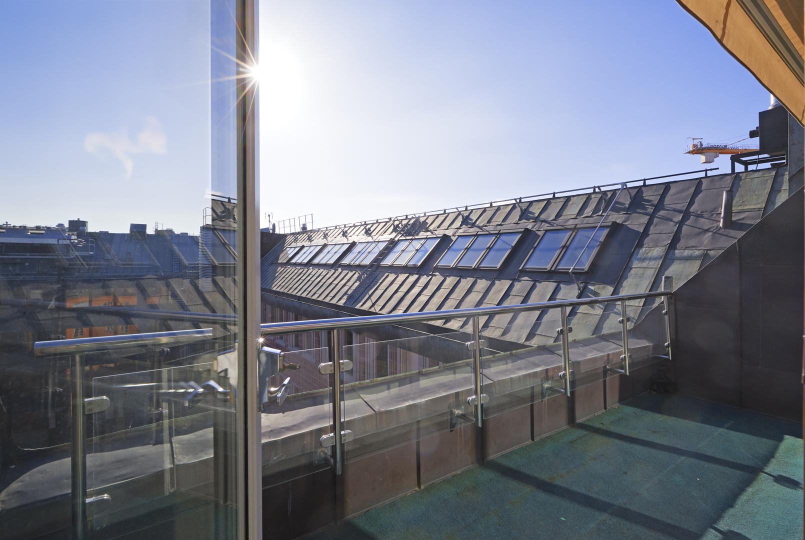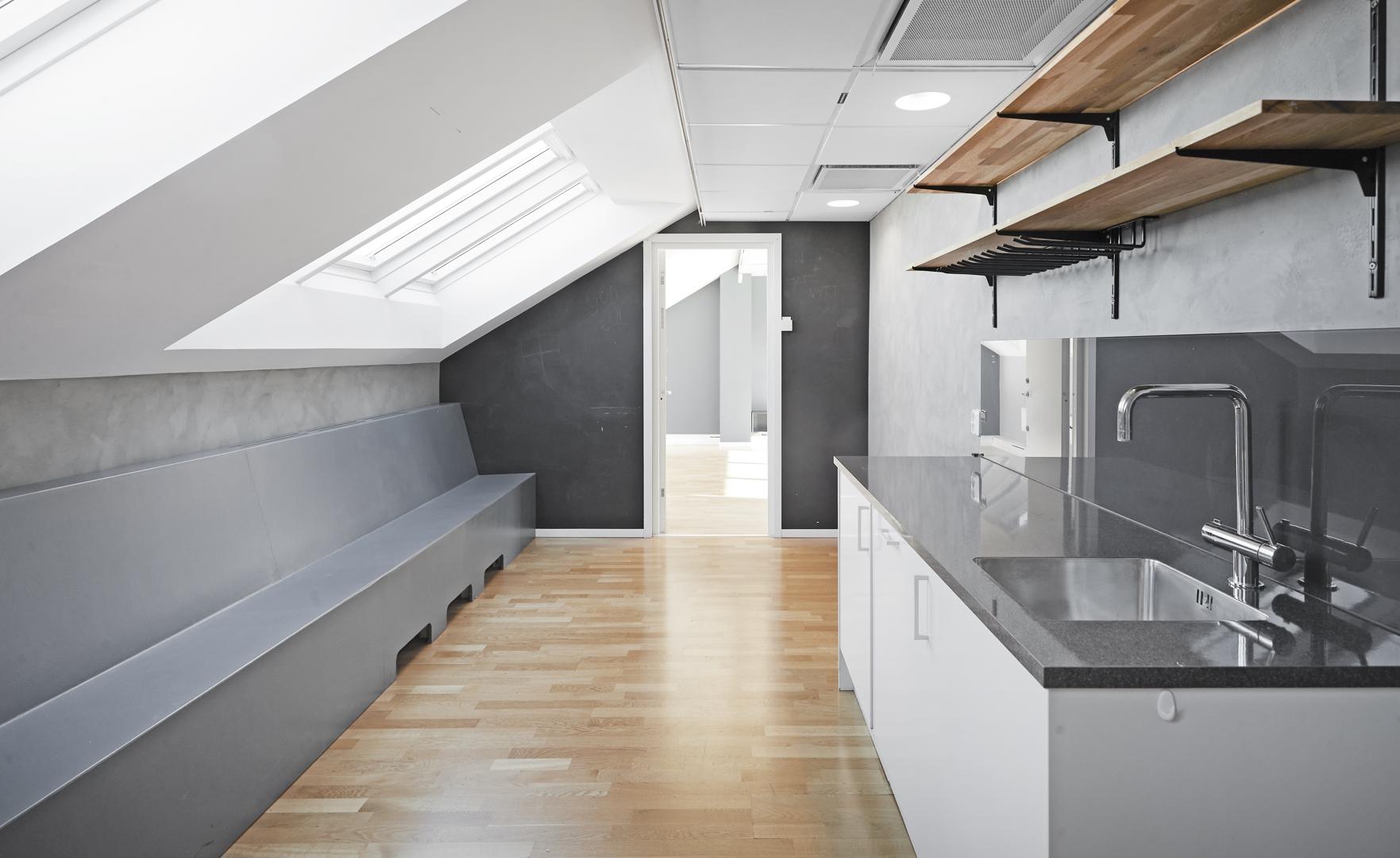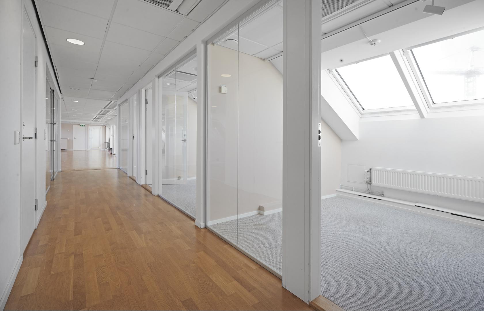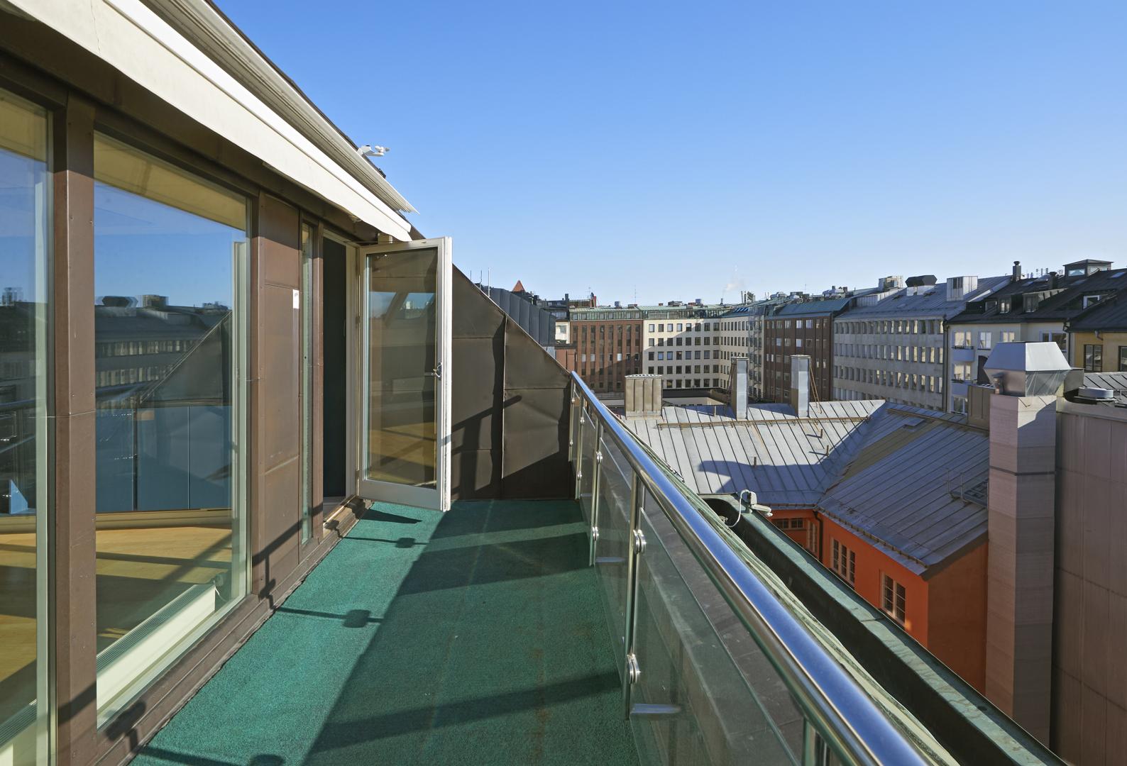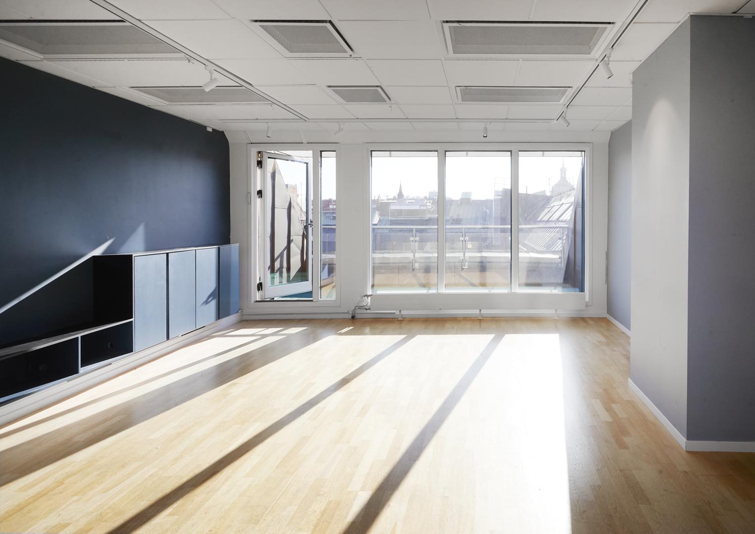 Centralet belägen kontorslokal högst upp i huset med terrass i söderläge mot innergården. Flertalet WC + dusch samt sedvanligt antal mötes och konferensrum i förhållande till storleken. Öppet kontorslandskap med intillliggande mötes och samtalsrum. Fullstort pentry samt separat kaffestation.