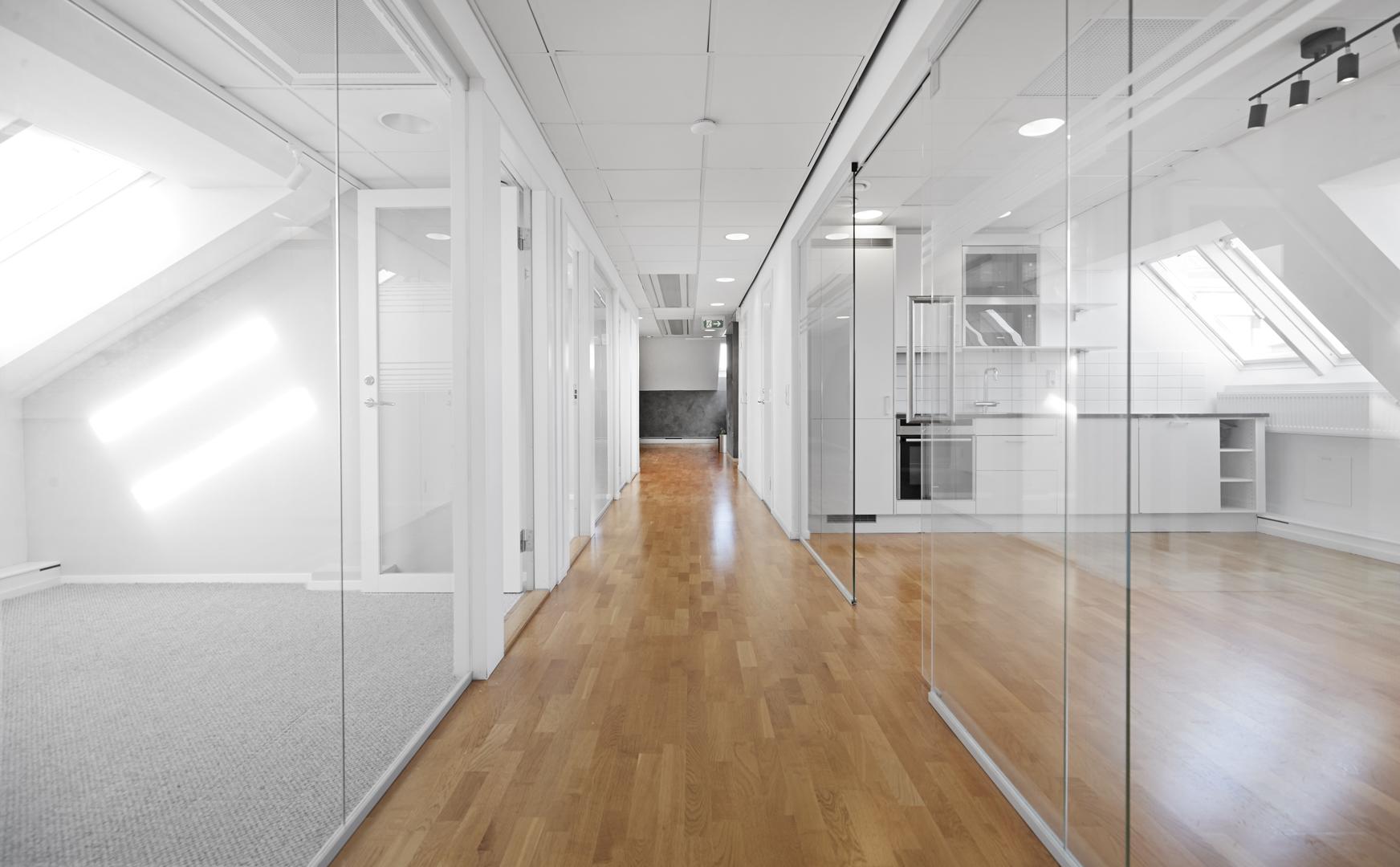 Öppen planlösning med flertalet samtal, mötes och konferensrum både för internt och externt bruk.