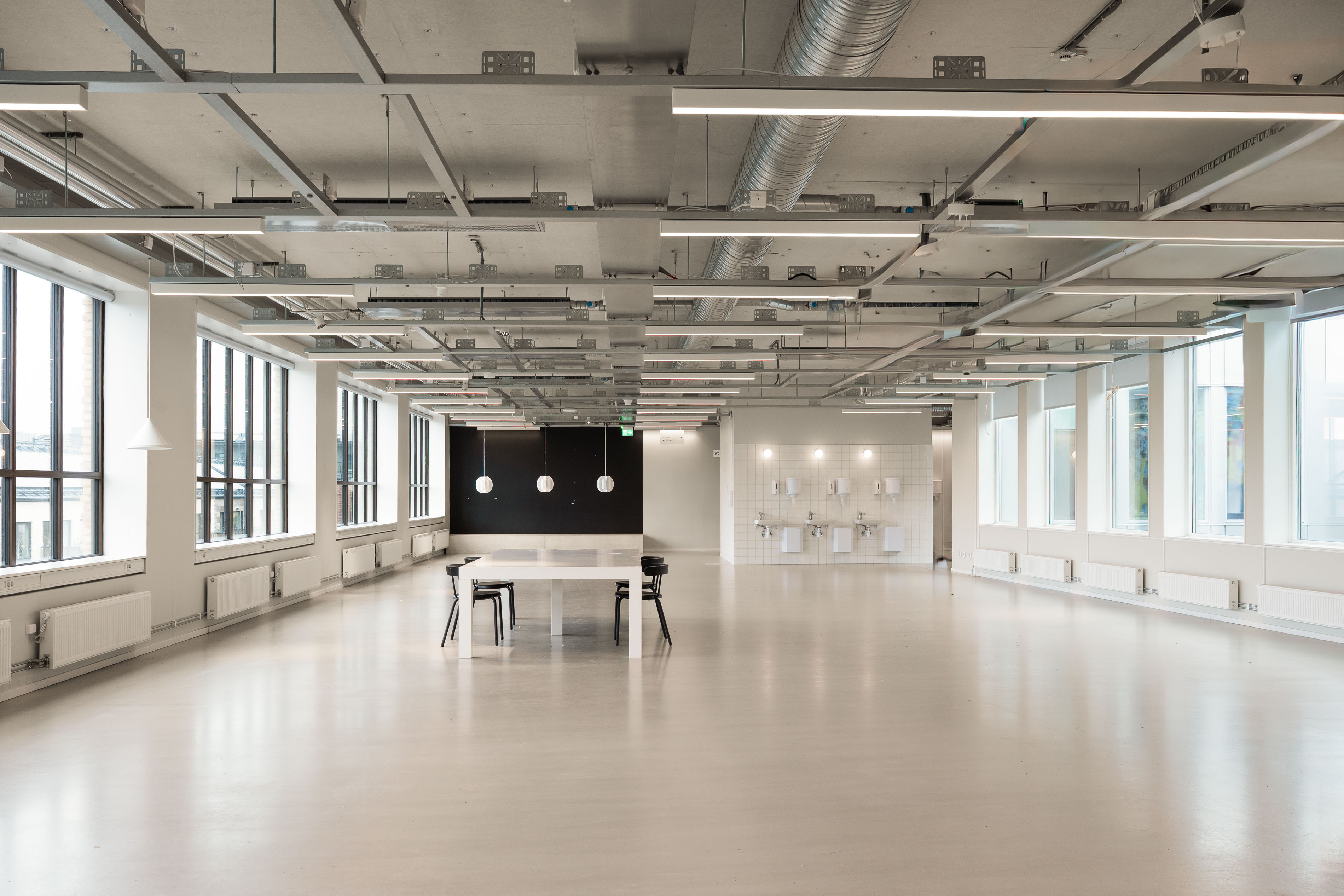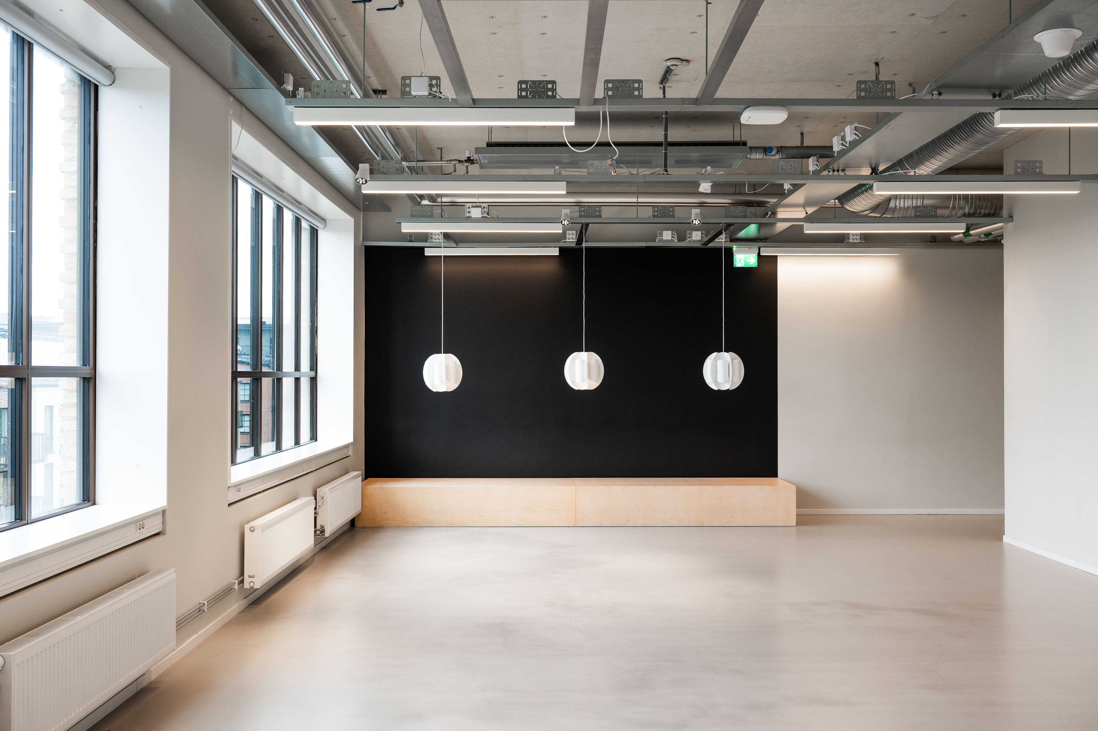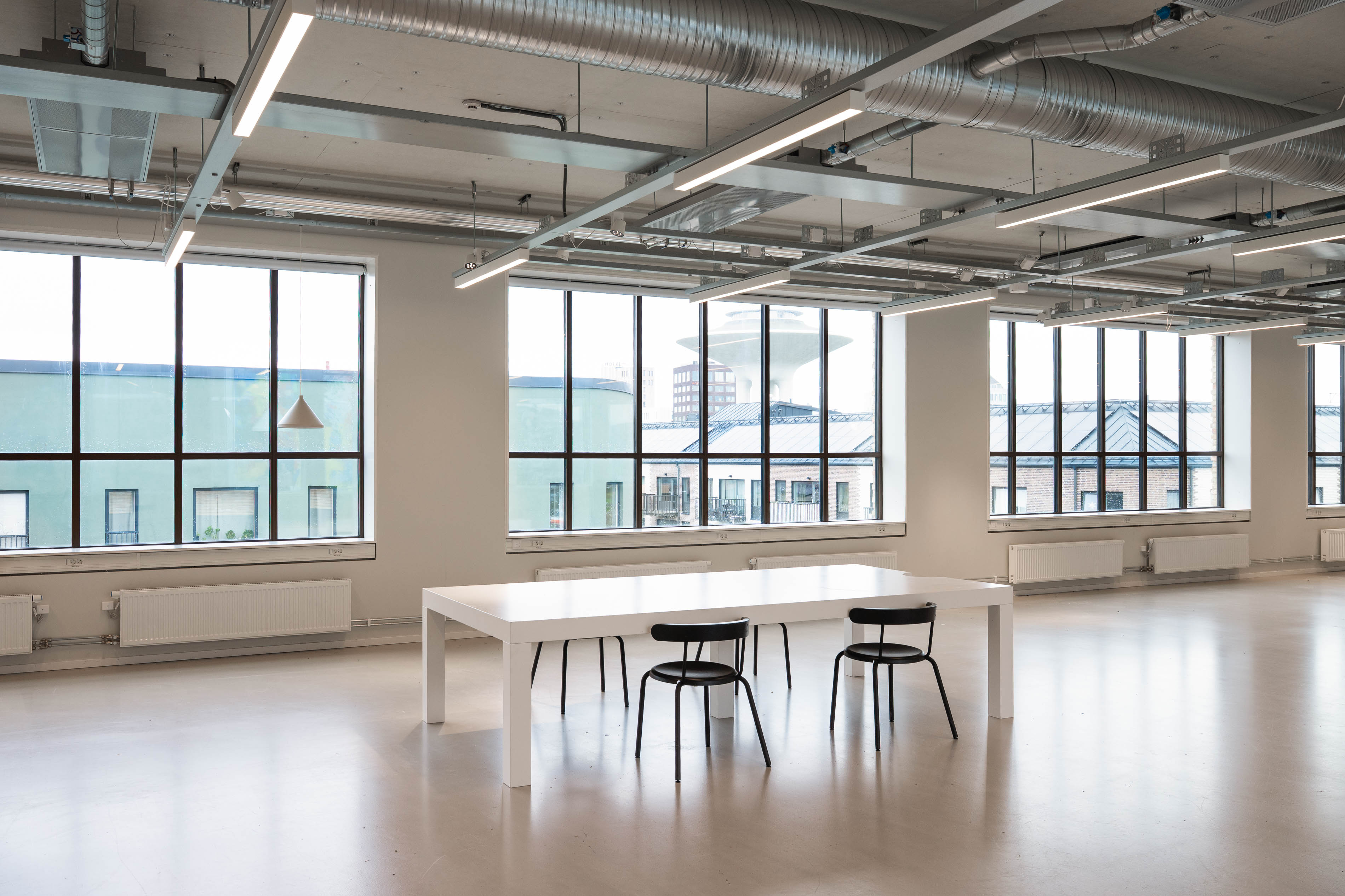 Bra takhöjd om ca 3,7M på samtliga våningsplan med härligt ljusinsläpp från fönster som ger en indistriell känsla.