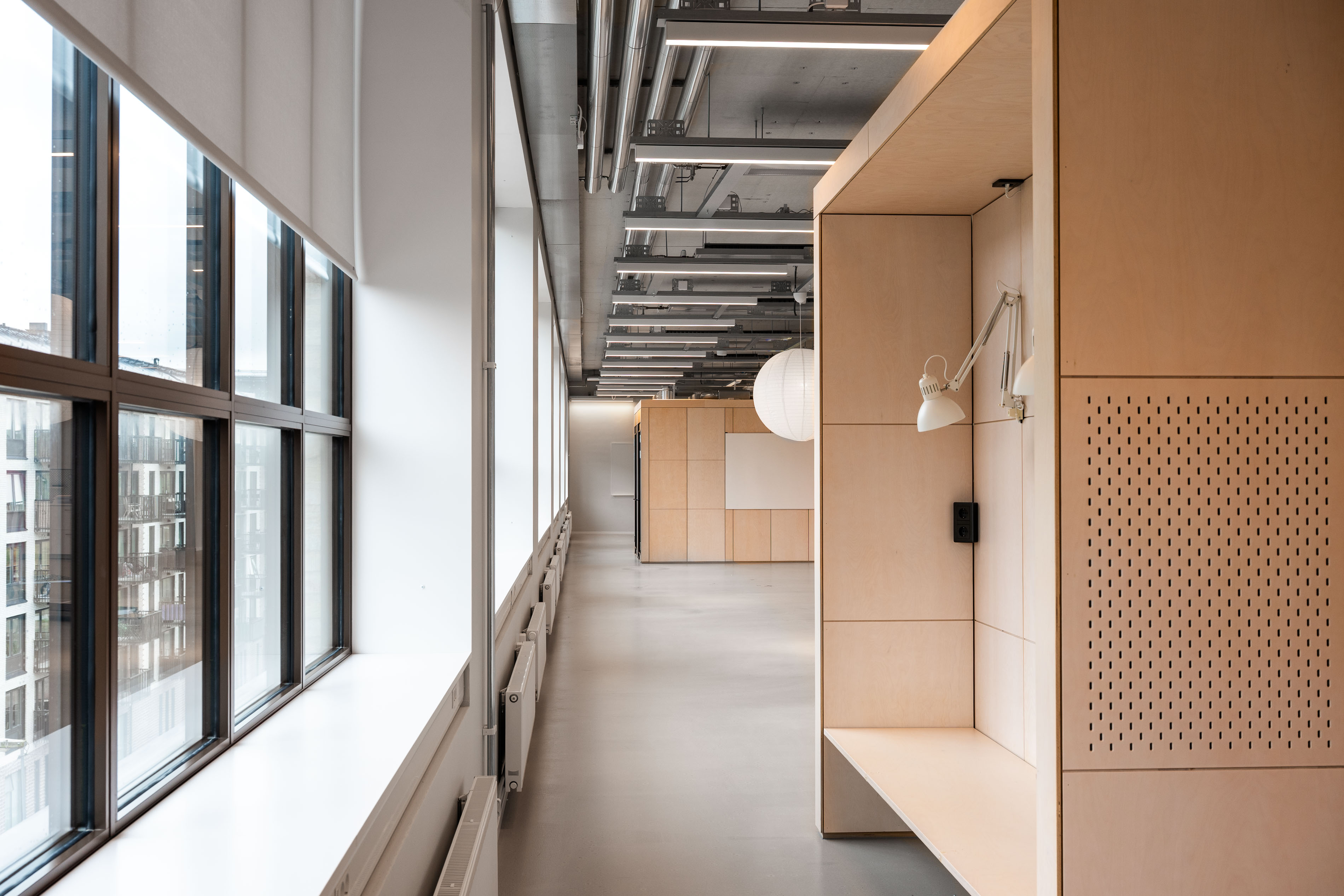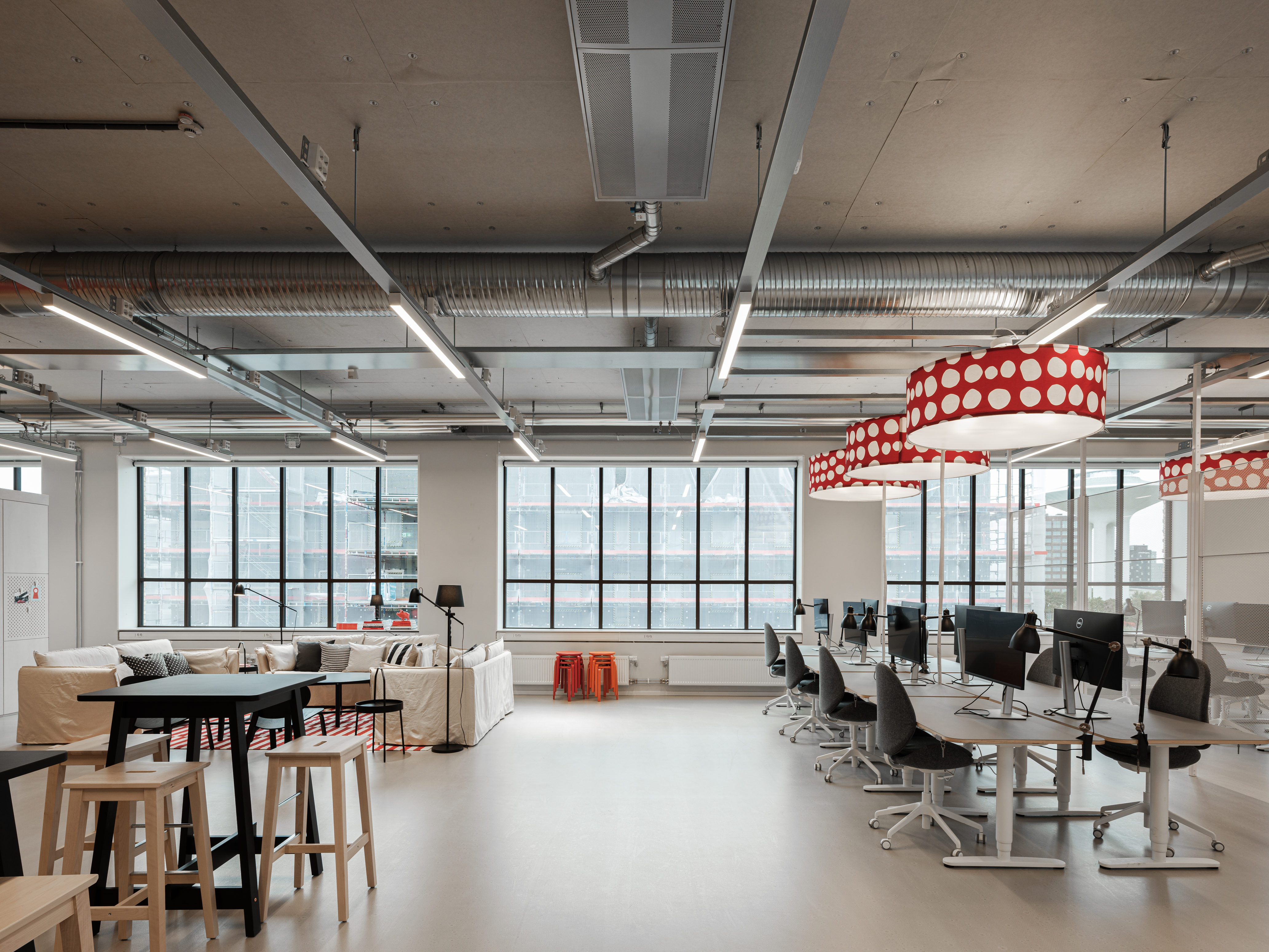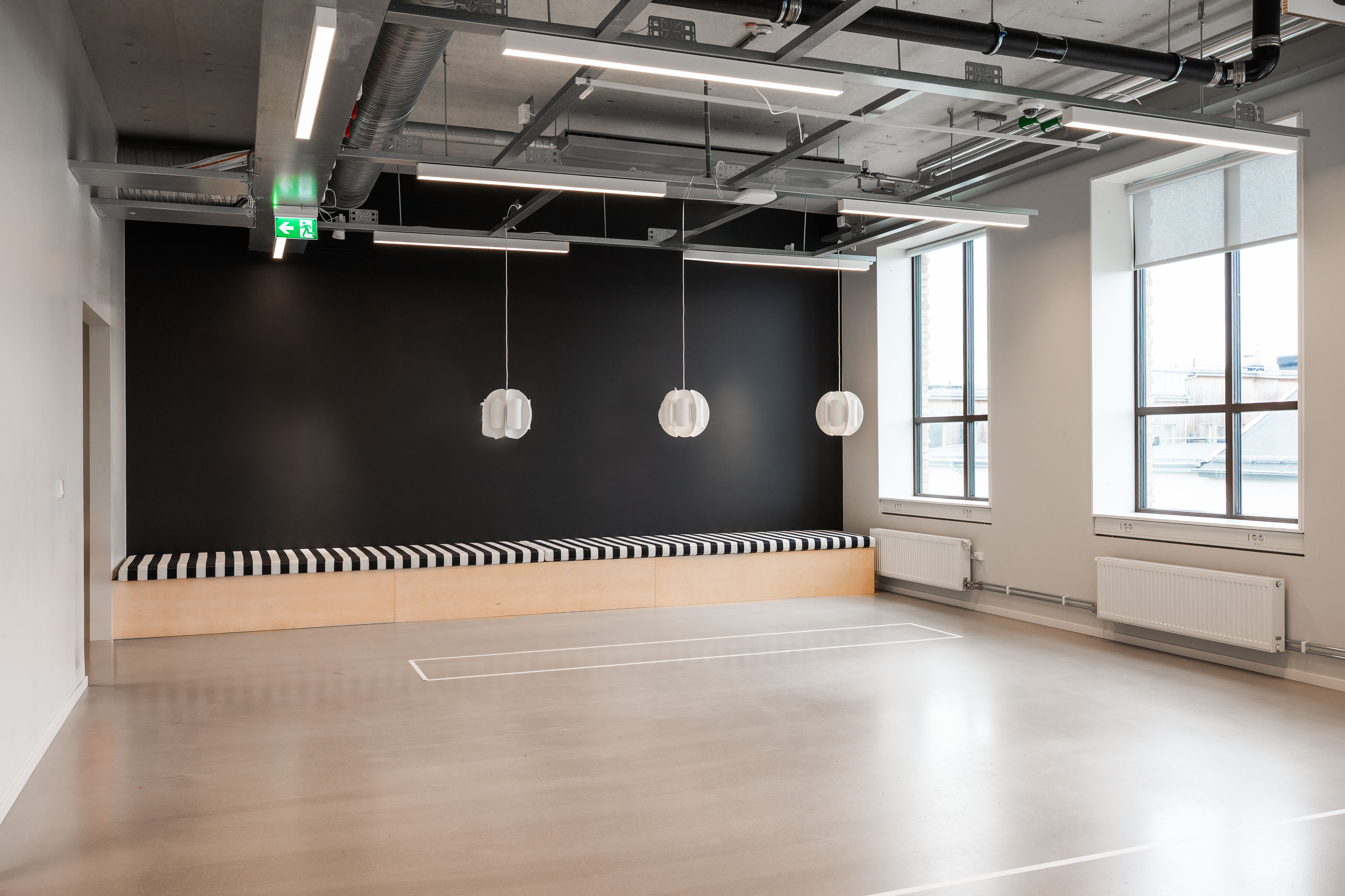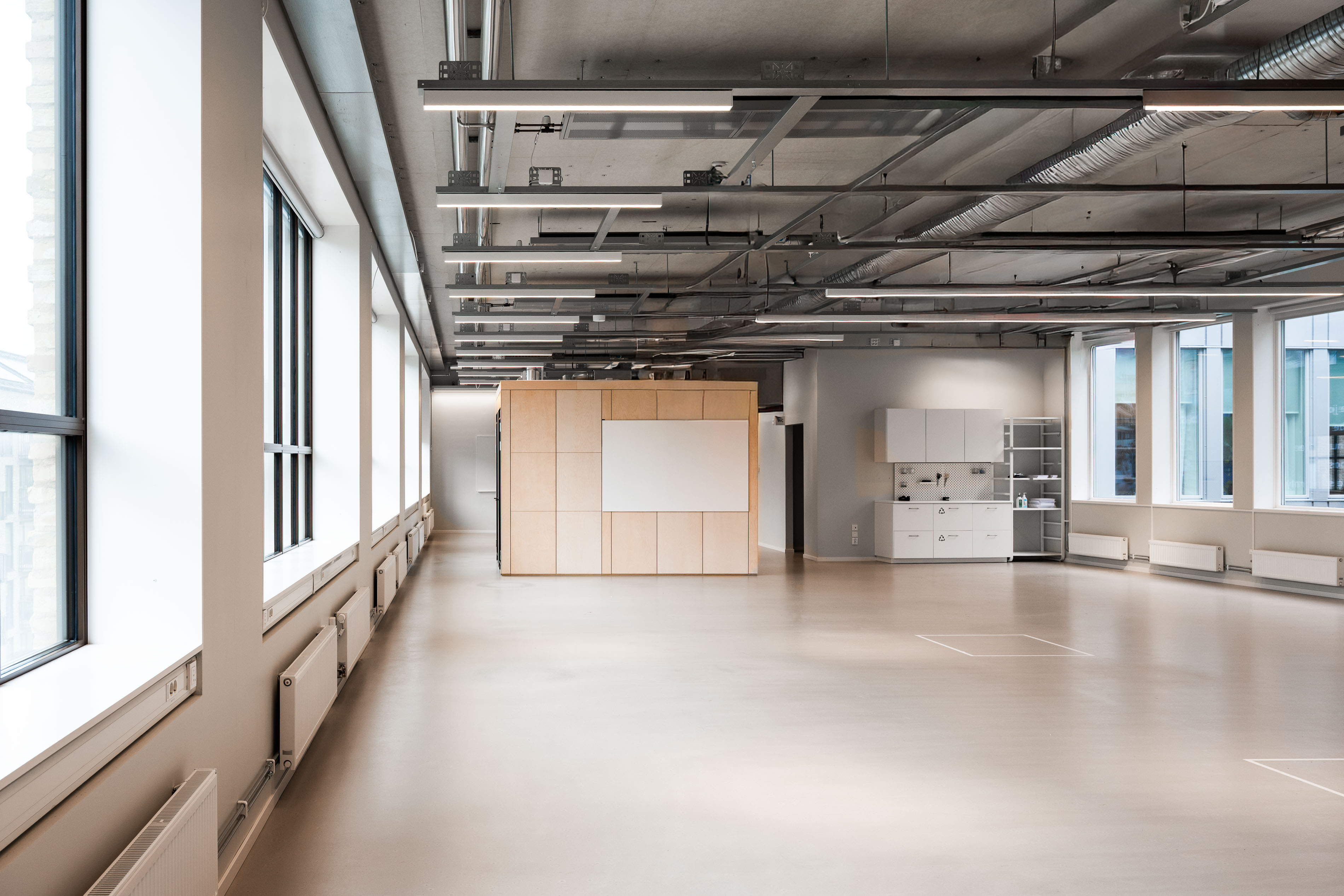 Bra takhöjd om ca 3,7M på samtliga våningsplan med härligt ljusinsläpp från fönster som ger en indistriell känsla.
