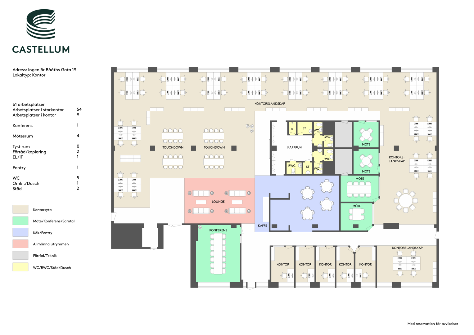 Lokalen erbjuder en modern planlösning med en bra mix av öppna ytor, fem kontorsrum samt tre mötes- och konferensrum – perfekt för en flexibel kontorsverksamhet.