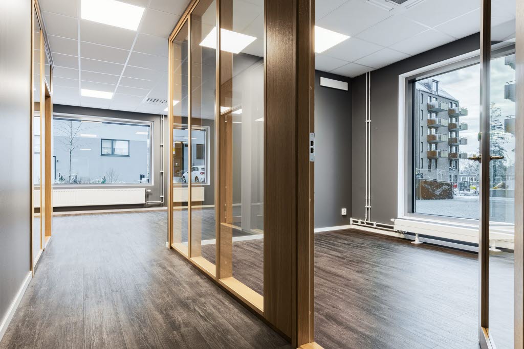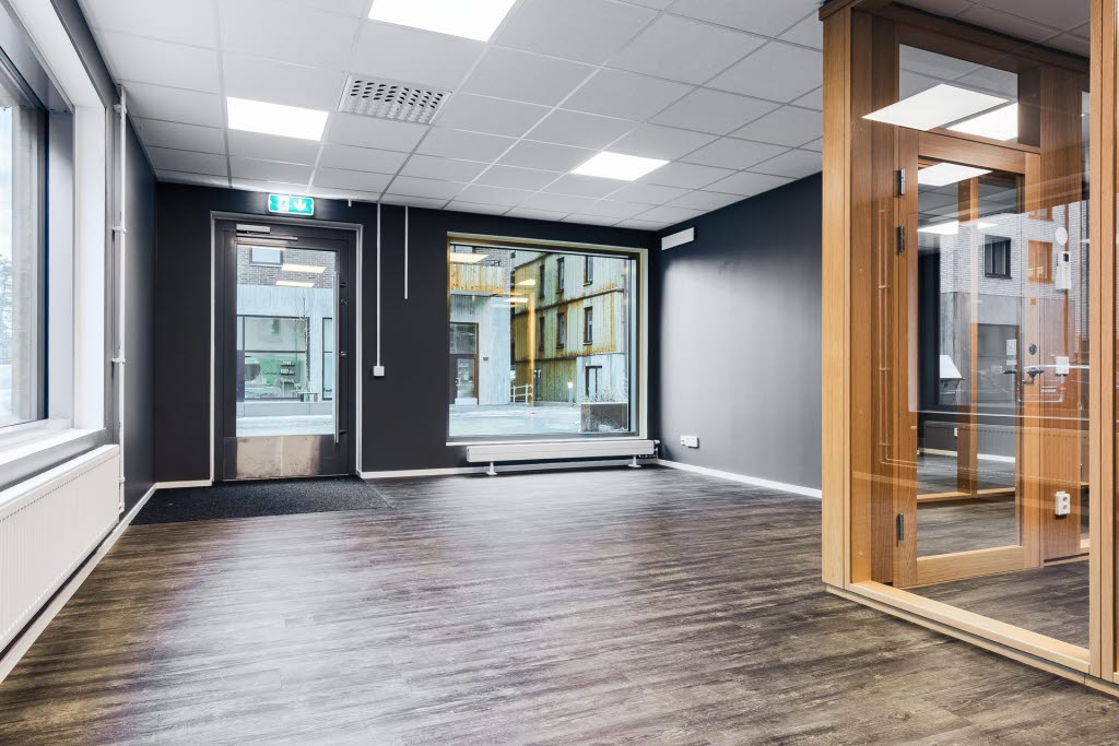 Nu finns möjligheten att hyra denna fräscha hörnlokal ett stenkast från Haninge Centrum.