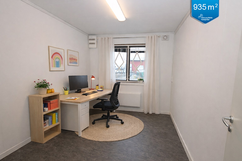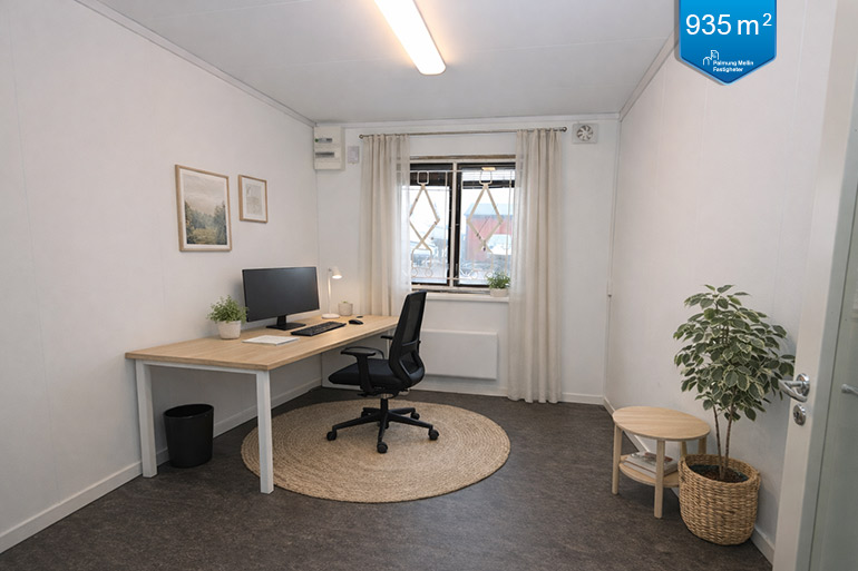 Utöver lager finns tvätthall/sluss, mötesrum samt en kontorsdel. Kontorsbyggnaden är ca 70 kvm och består av tre separata kontorsrum, ett mötesrum och har kök samt WC.