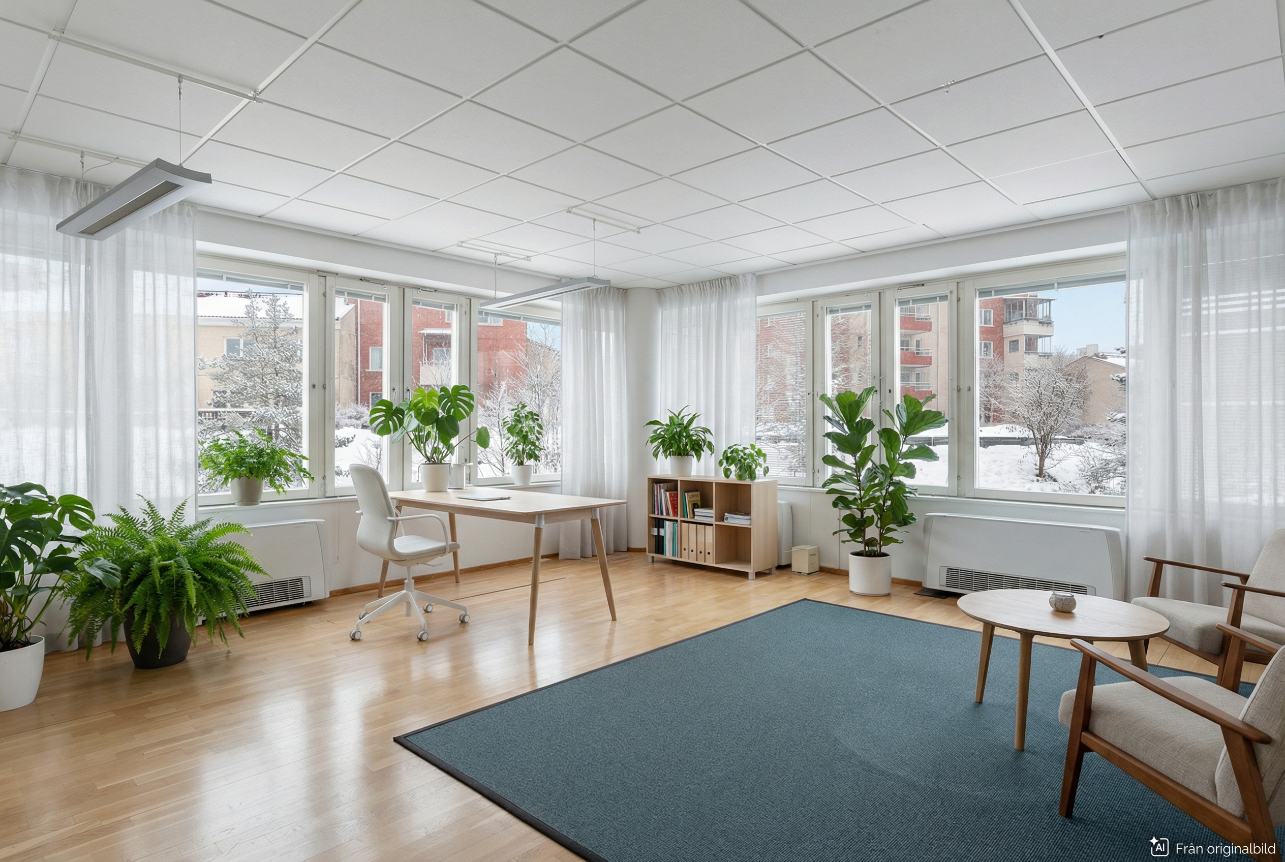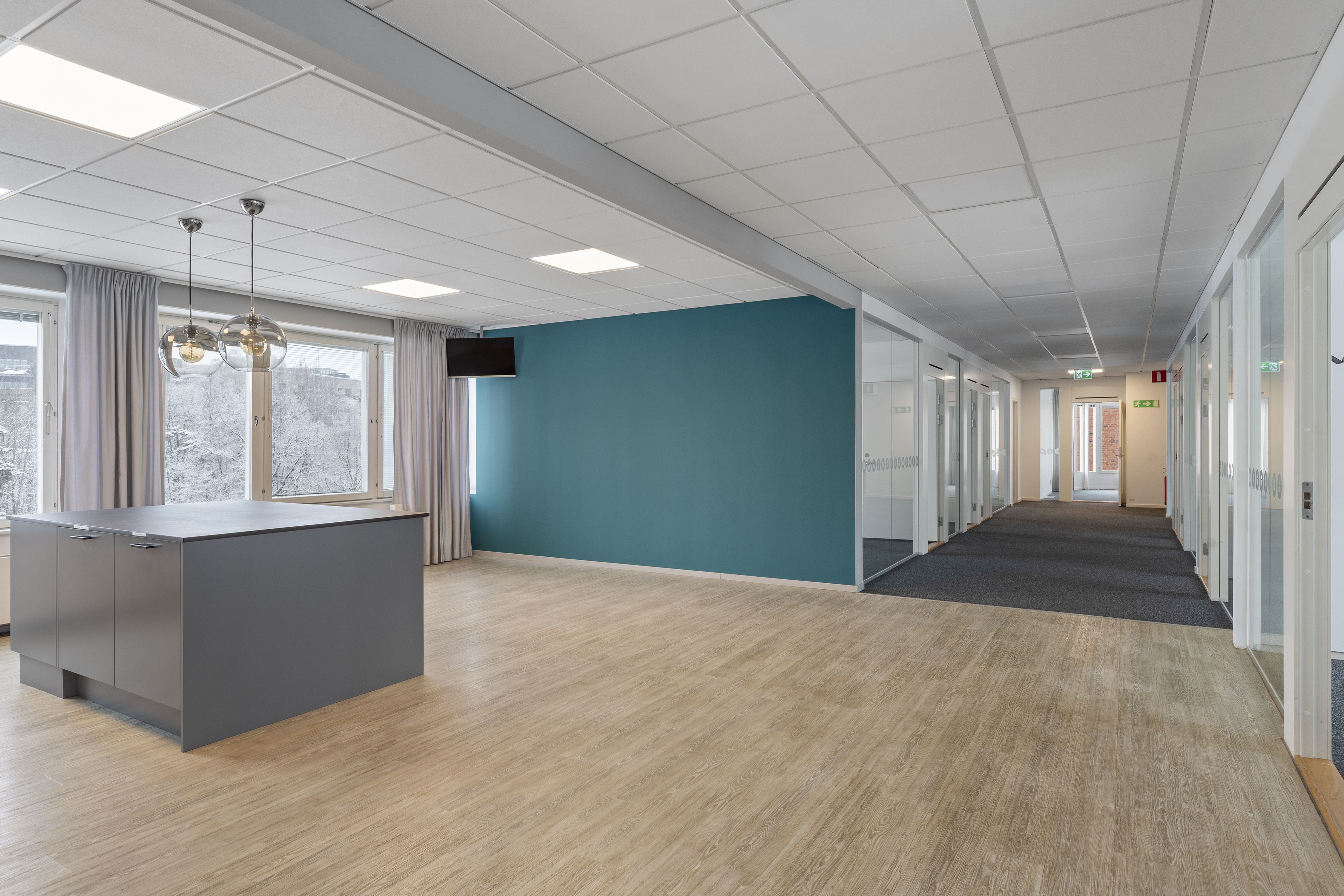 Här erbjuds en trivsam och rumsindelad kontorslokal för er som föredrar att arbeta i egna kontorsrum. När ni kliver in möts ni av en inbjudande reception- och loungeyta som ger ett professionellt och varmt första intryck för både medarbetare och besökare.