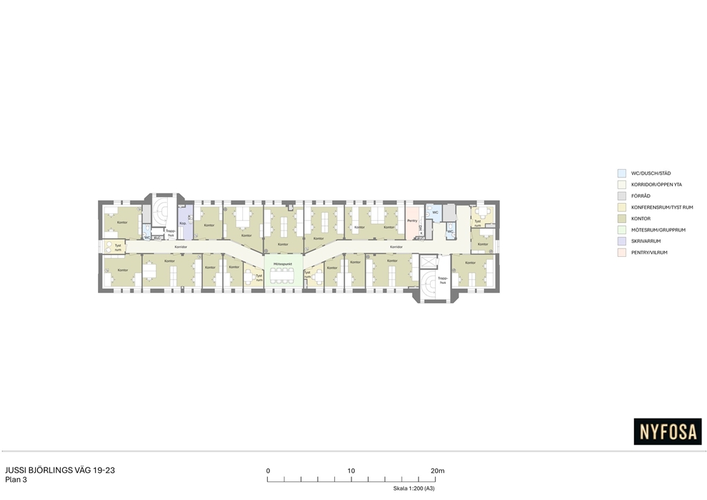 Lokalen har en flexibel planlösning som enkelt kan anpassas efter verksamhetens behov och strolek. Här finns möjlighet att skapa både öppna kontorslandskap och enskilda arbetsrum, liksom mötes- och konferensytor i varierande storlek. Lokalerna har generösa fönsterpartier som ger ett fint ljusinsläpp och skapar en trivsam arbetsmiljö. Tack vare planlösningens utformning kan ytorna effektivt nyttjas och skräddarsys för att passa allt från mindre företag till större organisationer.