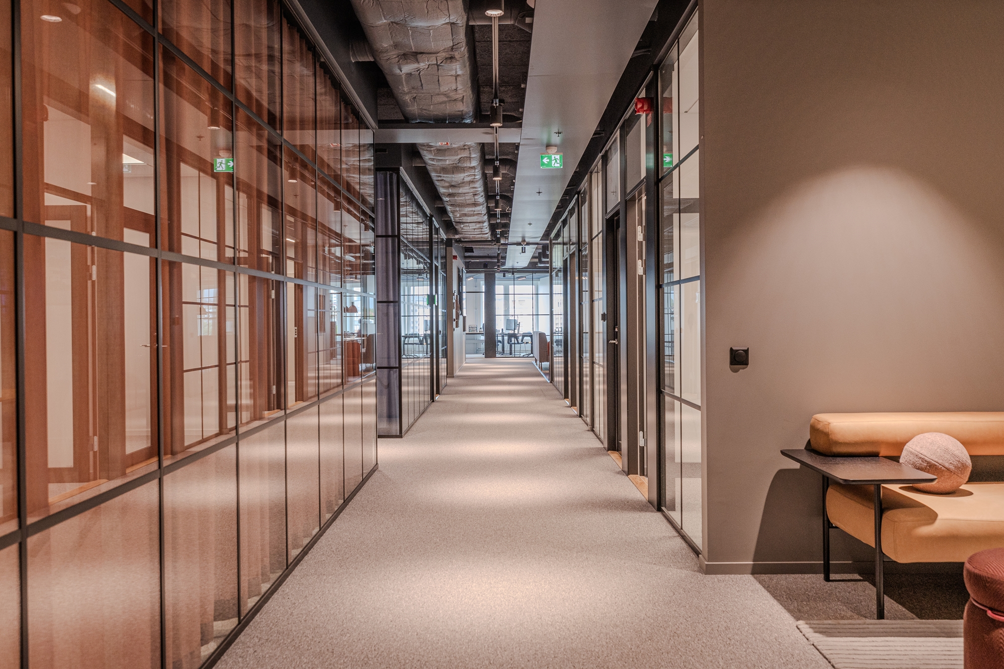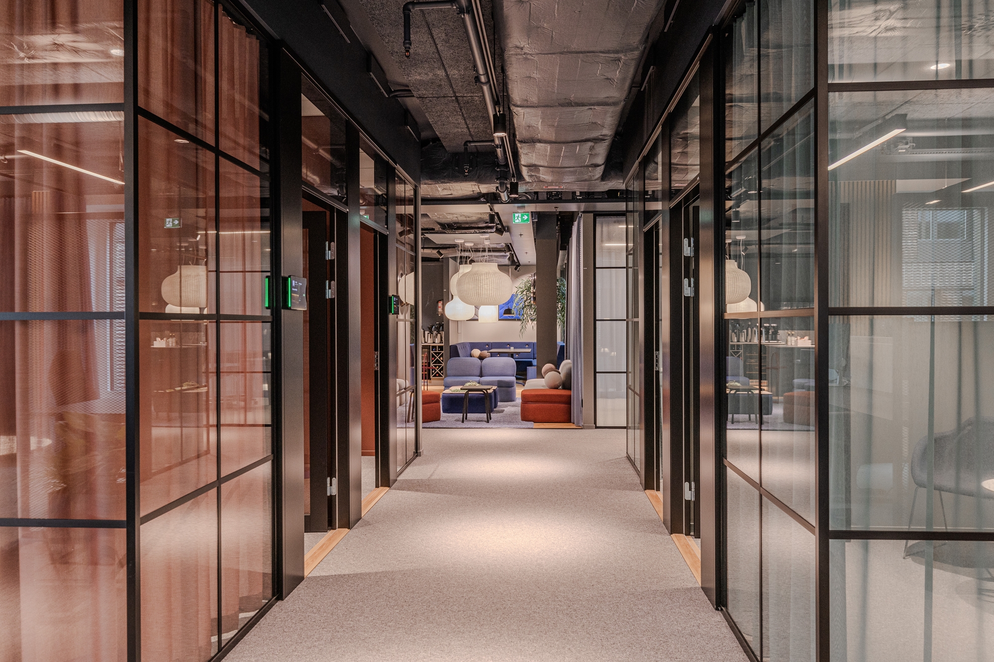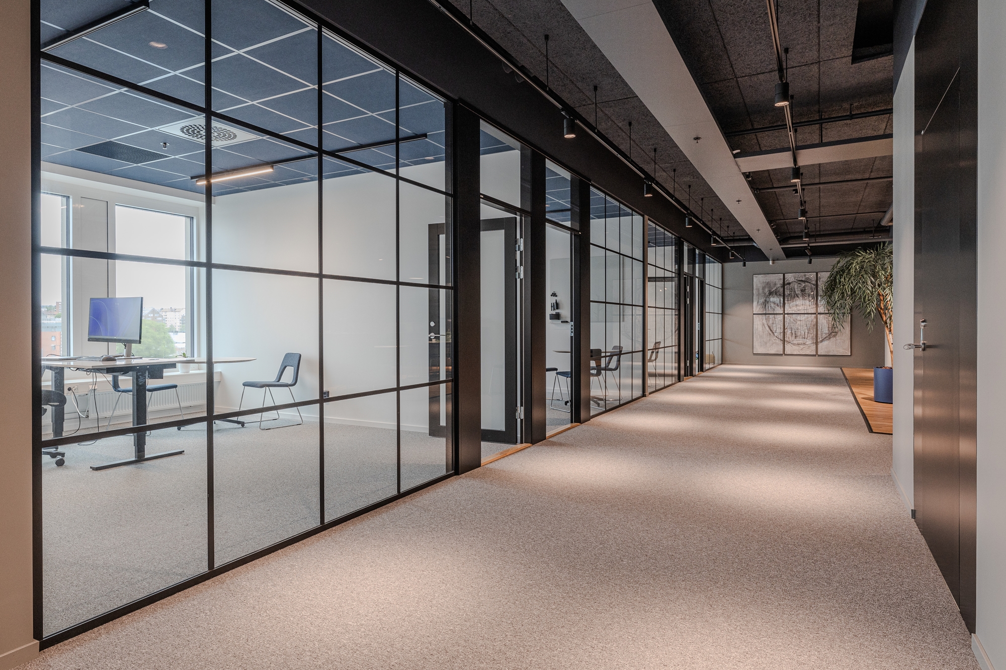 Mestadels öppen planlösning med en bra mix av mindre kontorsrum samt flertalet konferensrum.