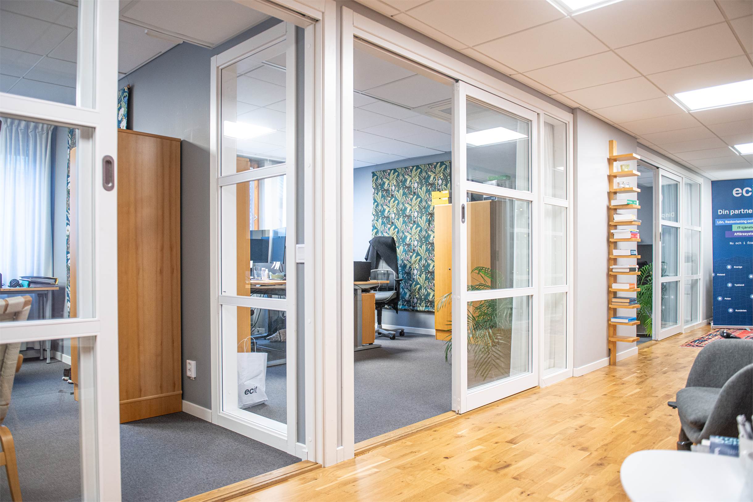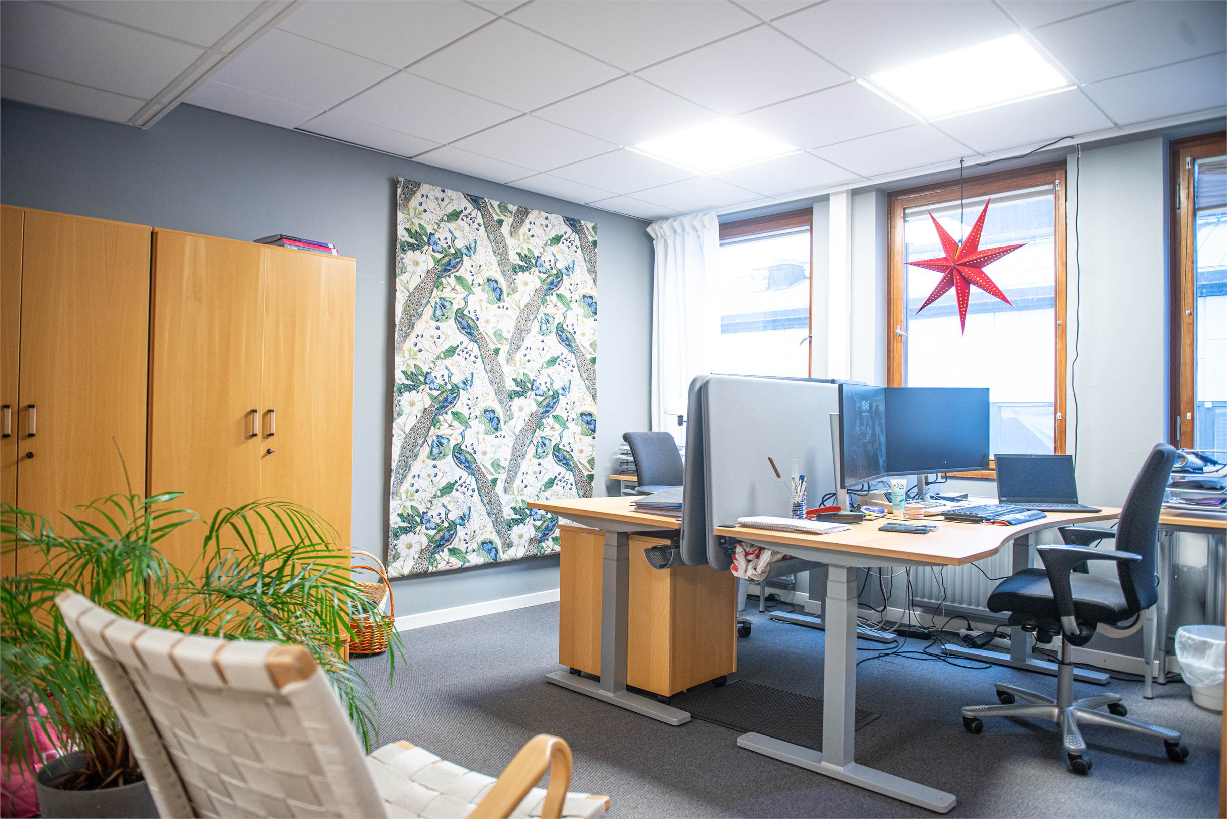 Kontor på 122 kvm i centrala Kalmar Uppdelade ytor med både arbetsplatser och mötesrum Centralt läge nära service och kommunikationer Ljusa lokaler med naturligt ljus