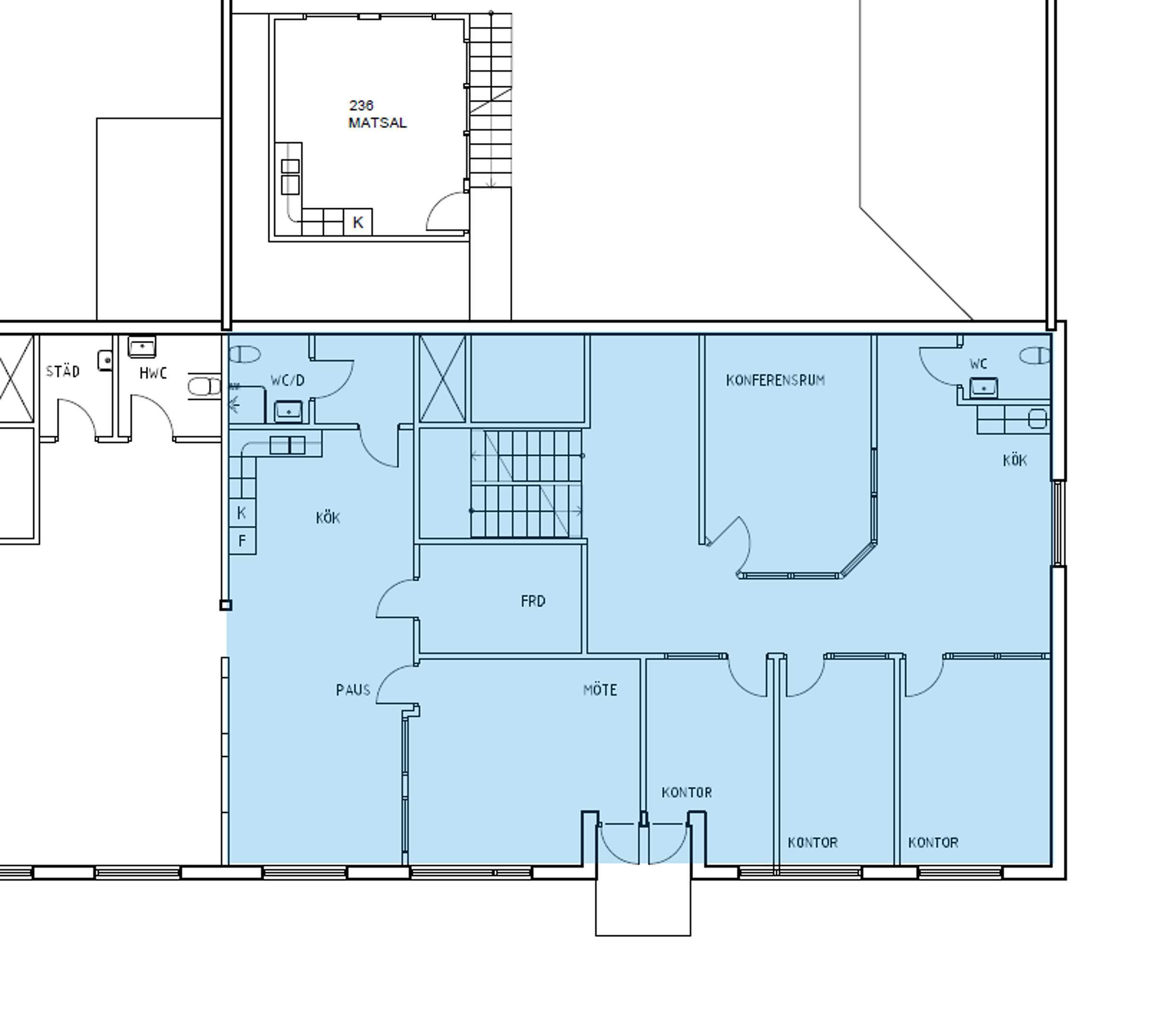 • Kontorsytor om ca 189 kvm fördelade på våning 1och 2