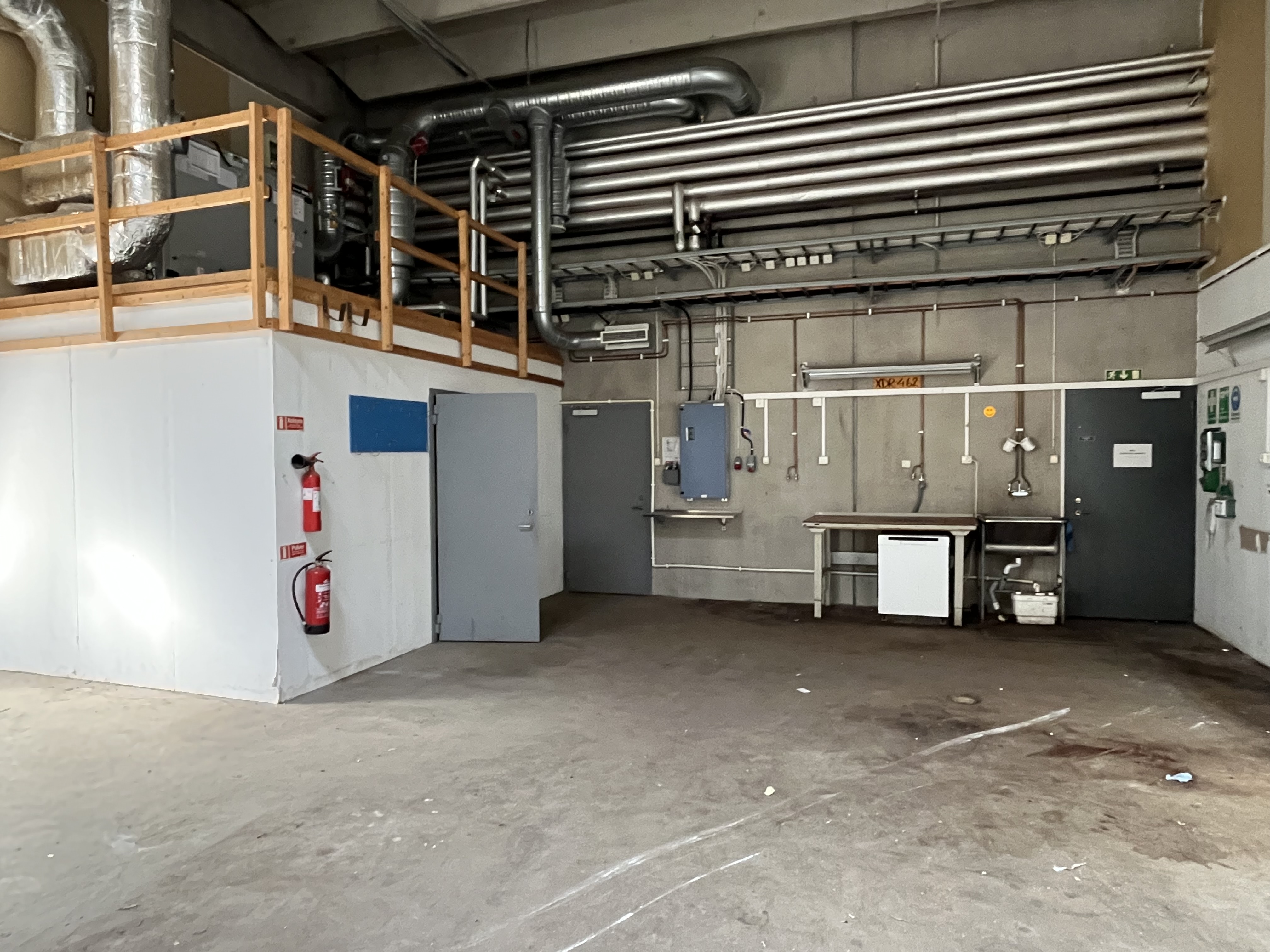 Lager: Lagerdelen är fördelat i två enheter. En större del om ca 632 kvm och en mindre om ca 154 kvm. Det större lagret har dubbla markportar för enkel in/utleverans och den mindre har en markport. Omklädningsrum med dusch.