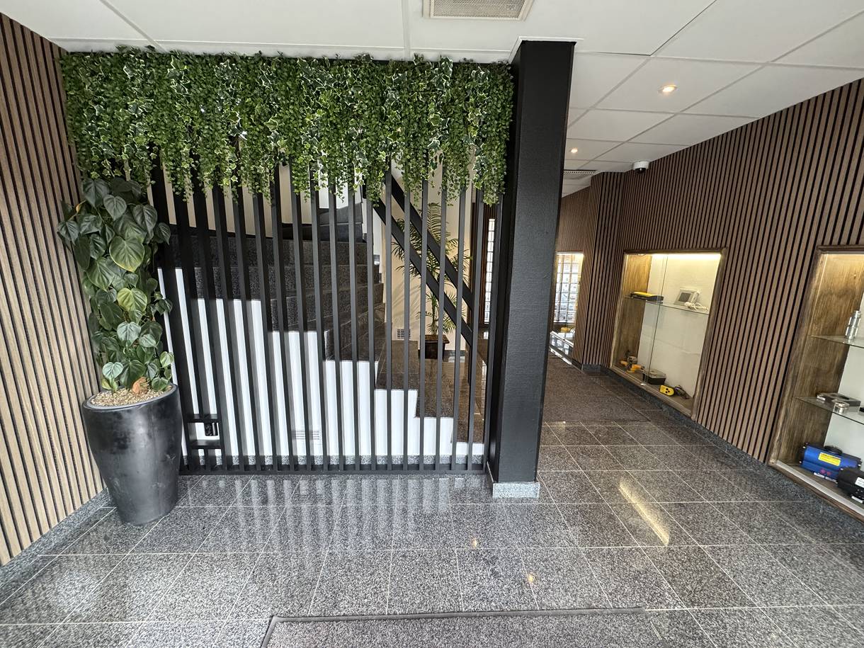 Lokalen nås via hiss/trapphus från huvudentré i marmor med välkomnande växtvägg.