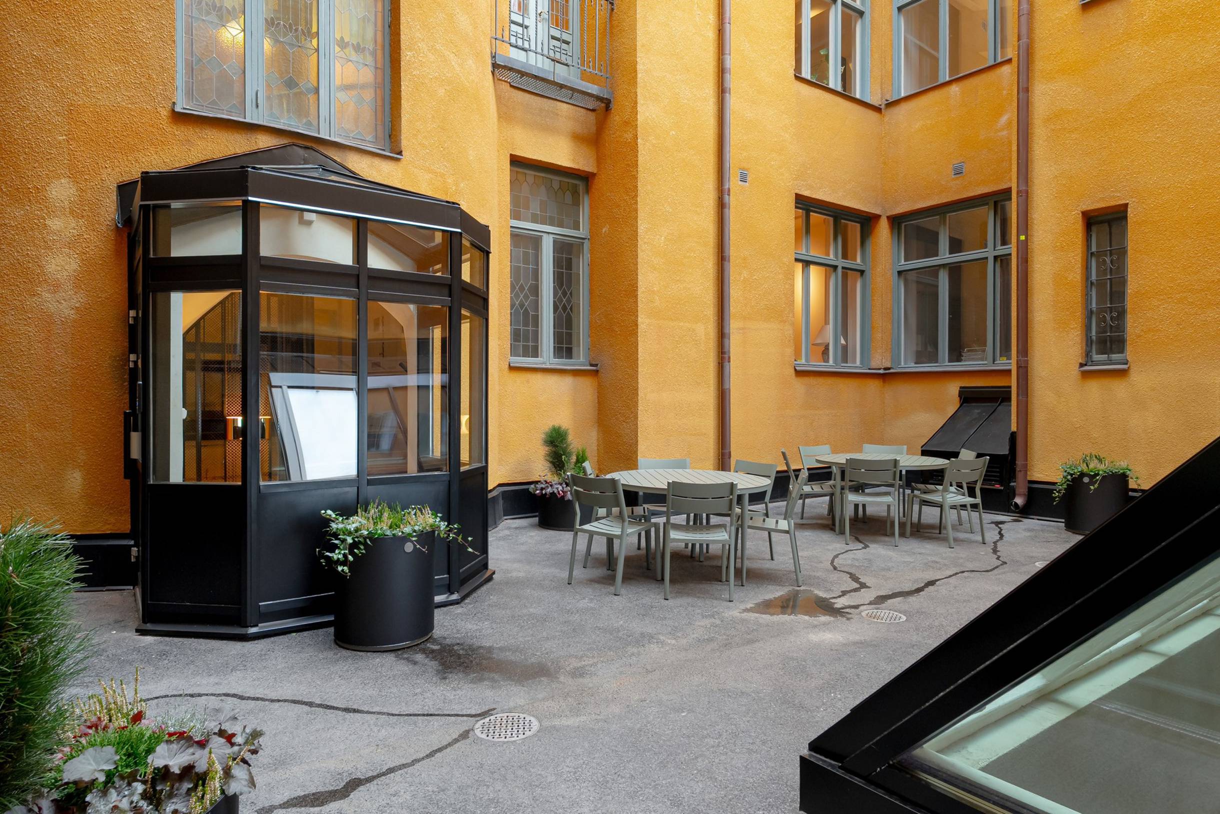 Fastigheten erbjuder dessutom en trivsam innergård, perfekt för en paus i solen, lunch utomhus eller trevliga AW-tillfällen under sommarhalvåret.