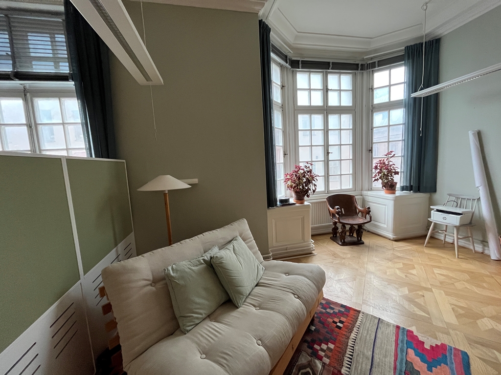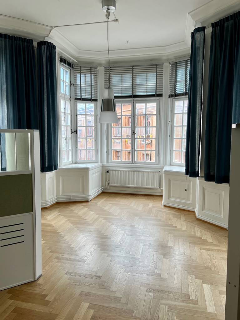 VI kan nu erbjuda en kontorslokal om 164 kvm i en vacker äldre byggnad med högt i tak, stora fönster och ett fint hörnläge som ger rikligt med dagsljus och en luftig känsla. Lokalen ligger en våning upp och nås via ett trapphus med tillgång till hiss.