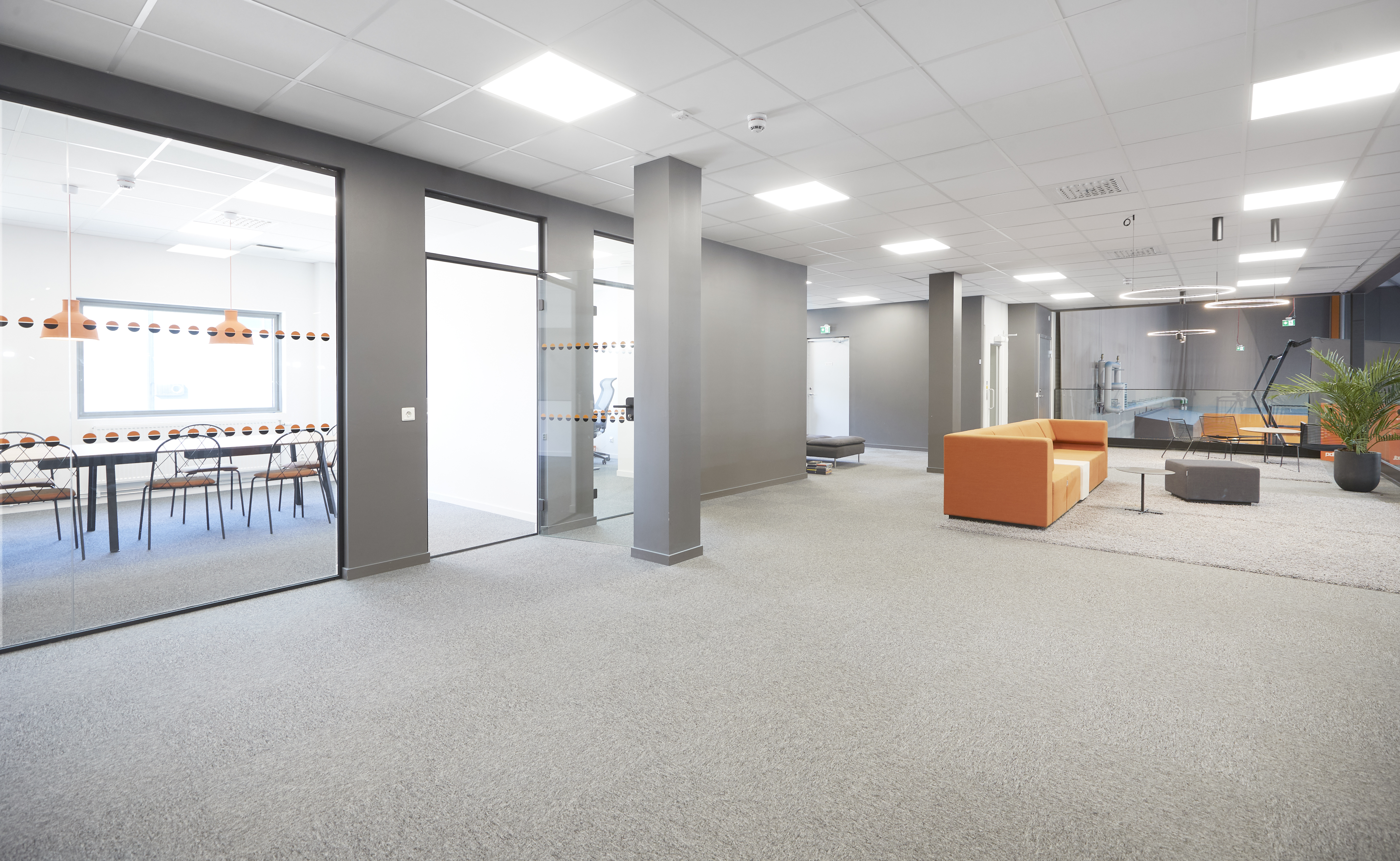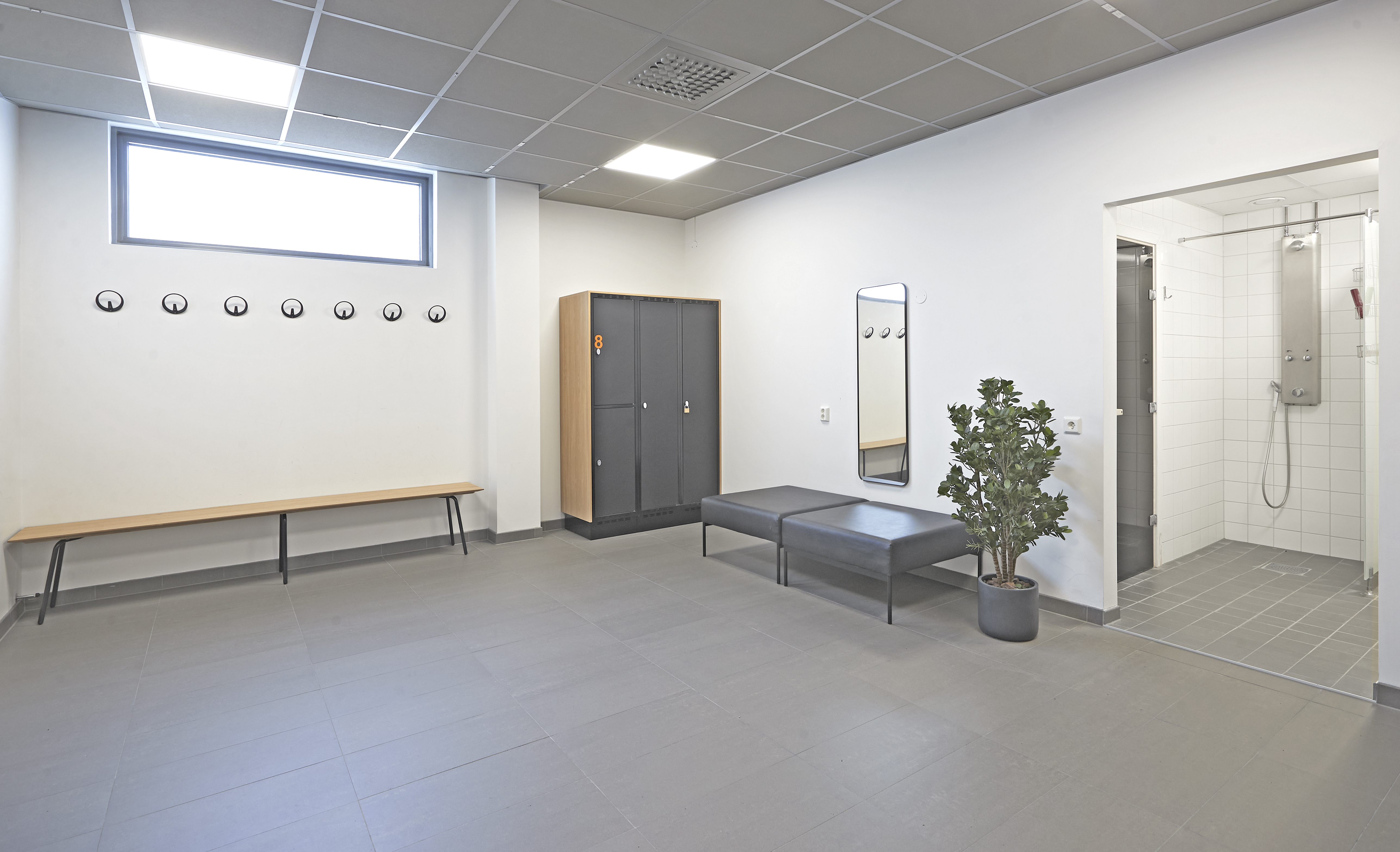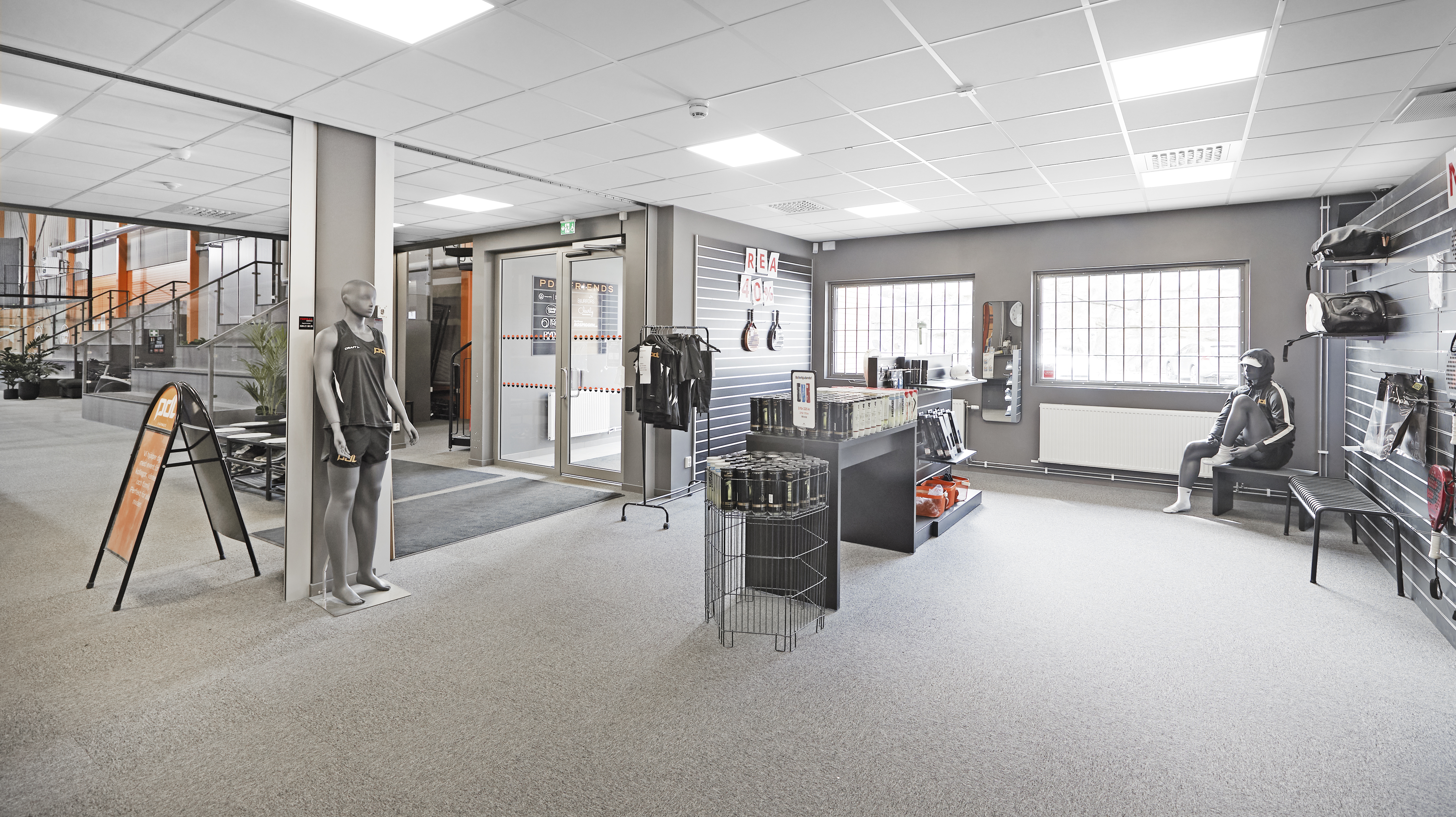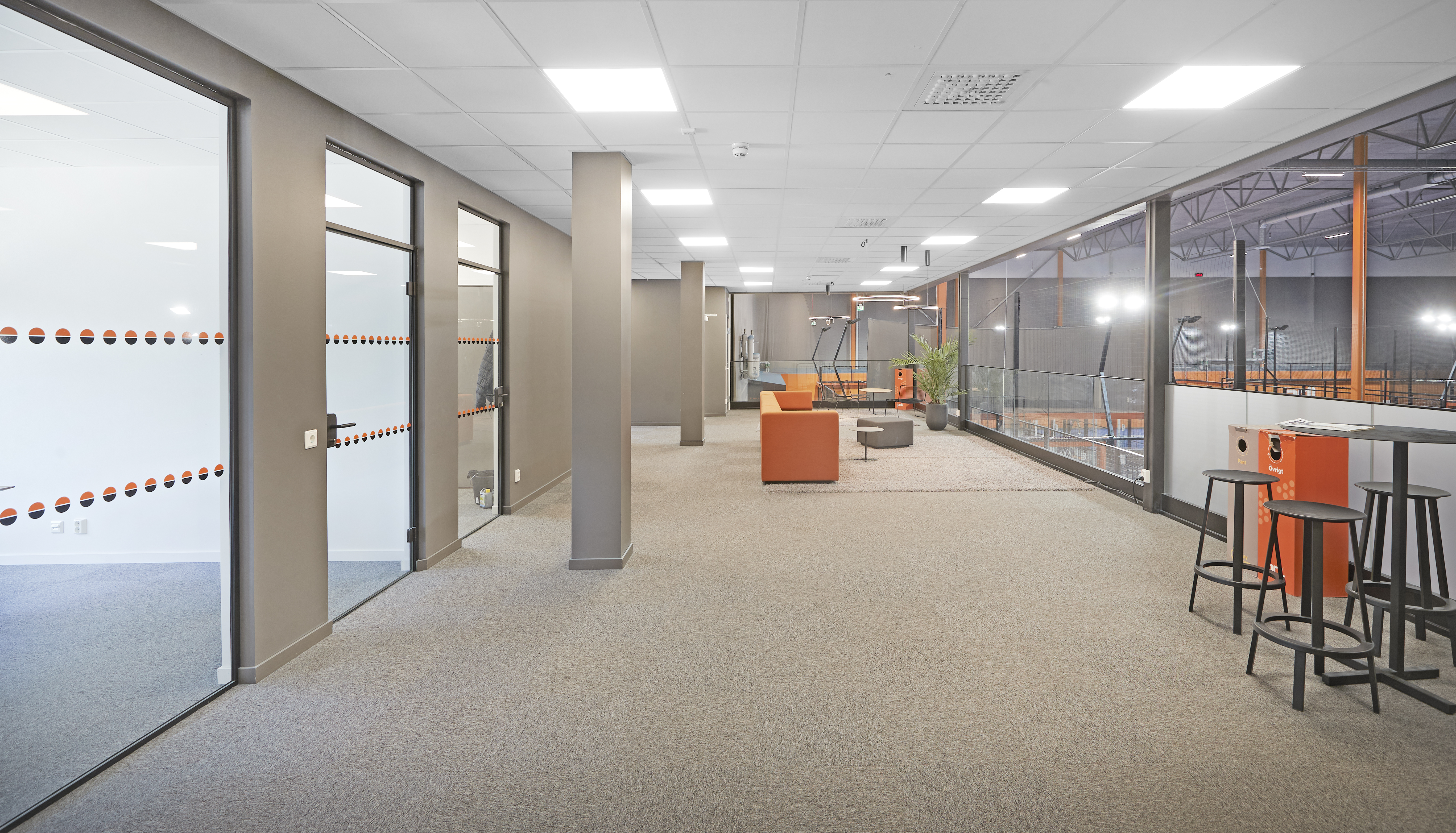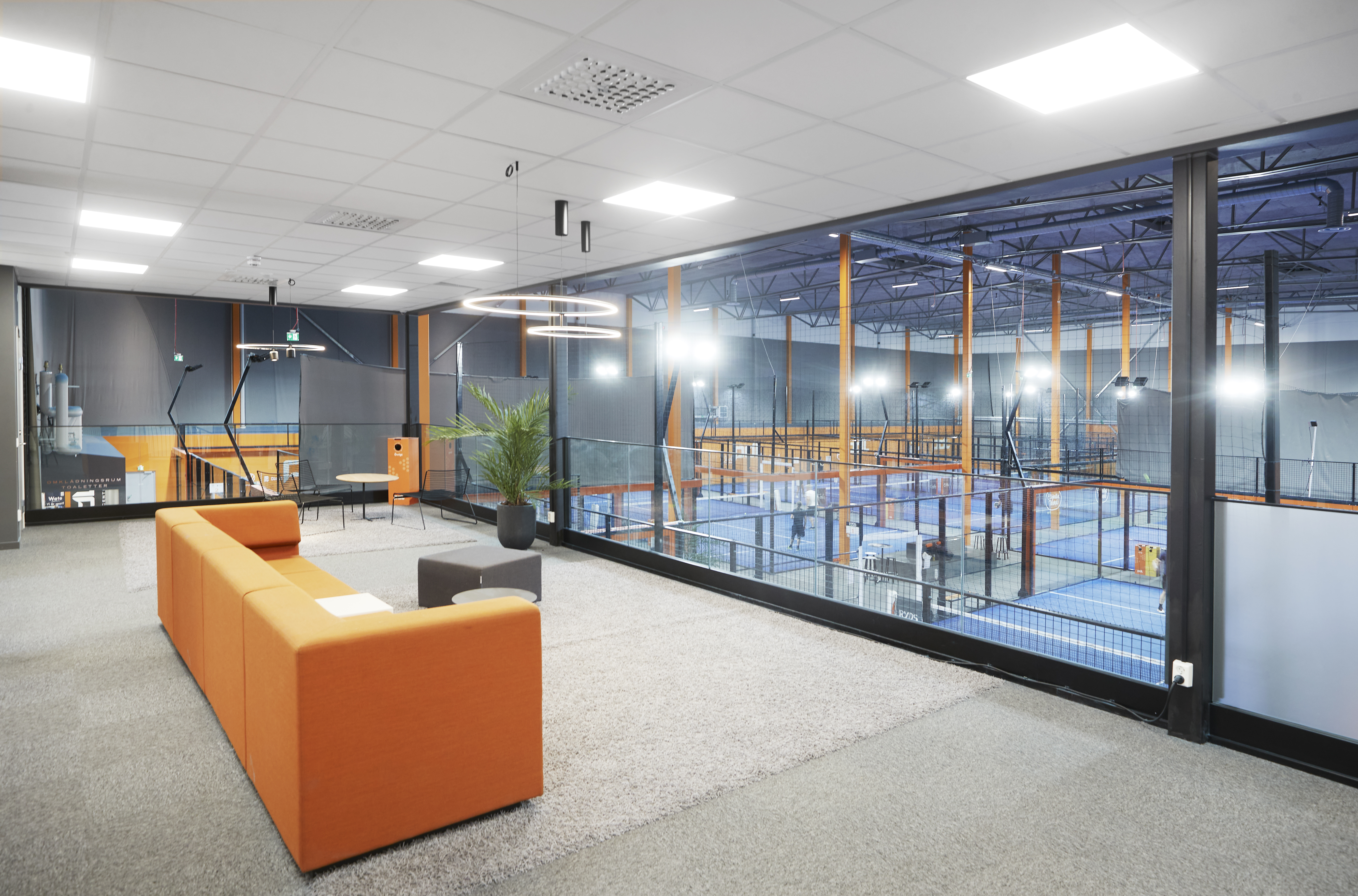 Ny lokal med en stor öppen yta i markplan samt en mindre entresoll. Den stora ytan passar bra för er som behöver gott om utrymme. Takhöjden är från 10,5 12 meter i taknock. På markplan finn en entré samt en större port. Anpassningar kan diskuteras efter era behov. I markplan finns idag två omklädningsrum, för herr respektive dam. Dessa har två toaletter vardera. Utanför dessa omklädningsrum finns en större RWC. På markplan finns även två förvaringsrum och ett kök. På entresollplanet finns konferensrum, kontor, wc samt öppen yta.
