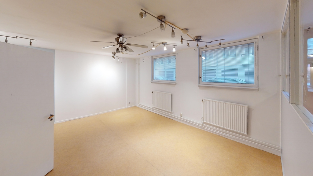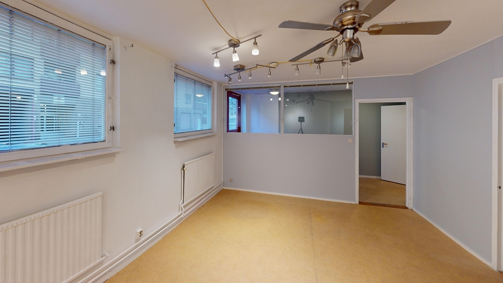 Här finns en mindre lokal som vi hyr ut och som lämpar sig väl för salongsverksamhet. Lokalen ligger ett par trappsteg ner från marknivå och består av en liten hall, wc, ett mindre pentry samt en större öppen yta anpassad för salong. Den senaste verksamheten som bedrevs i lokalen var frisersalong.