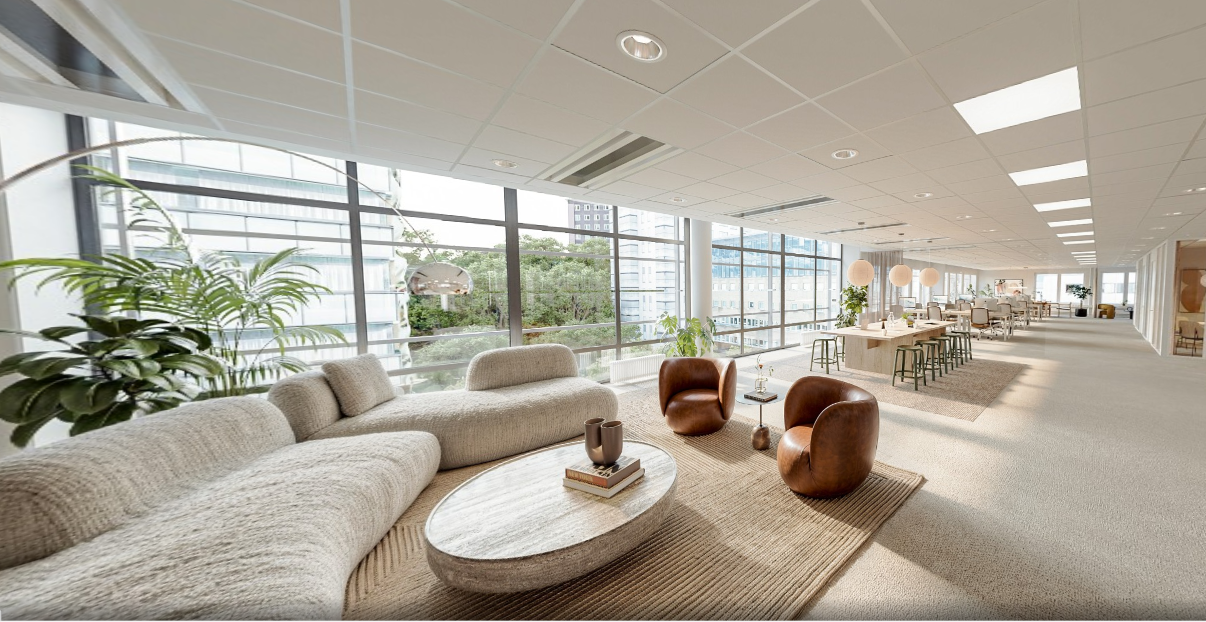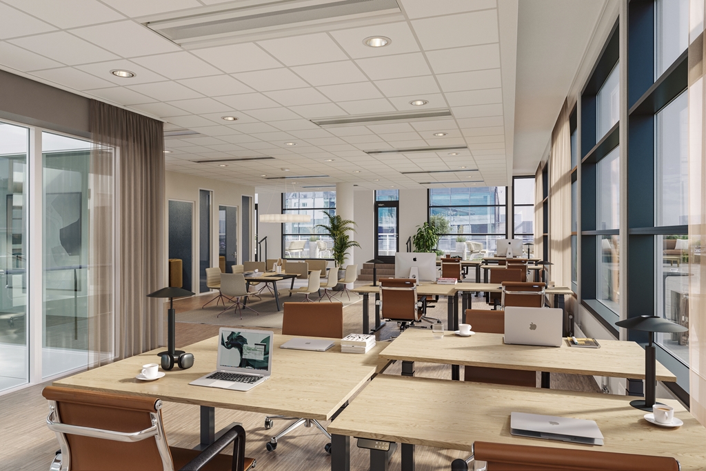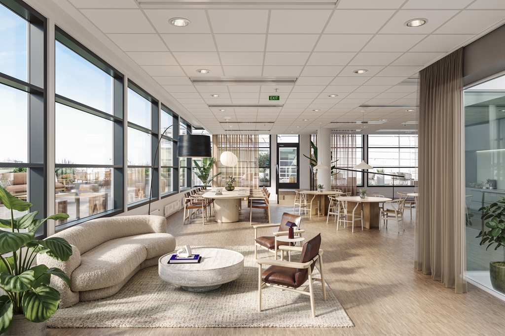 Ett ljust och modernt kontor i ett expansivt framtidsområde