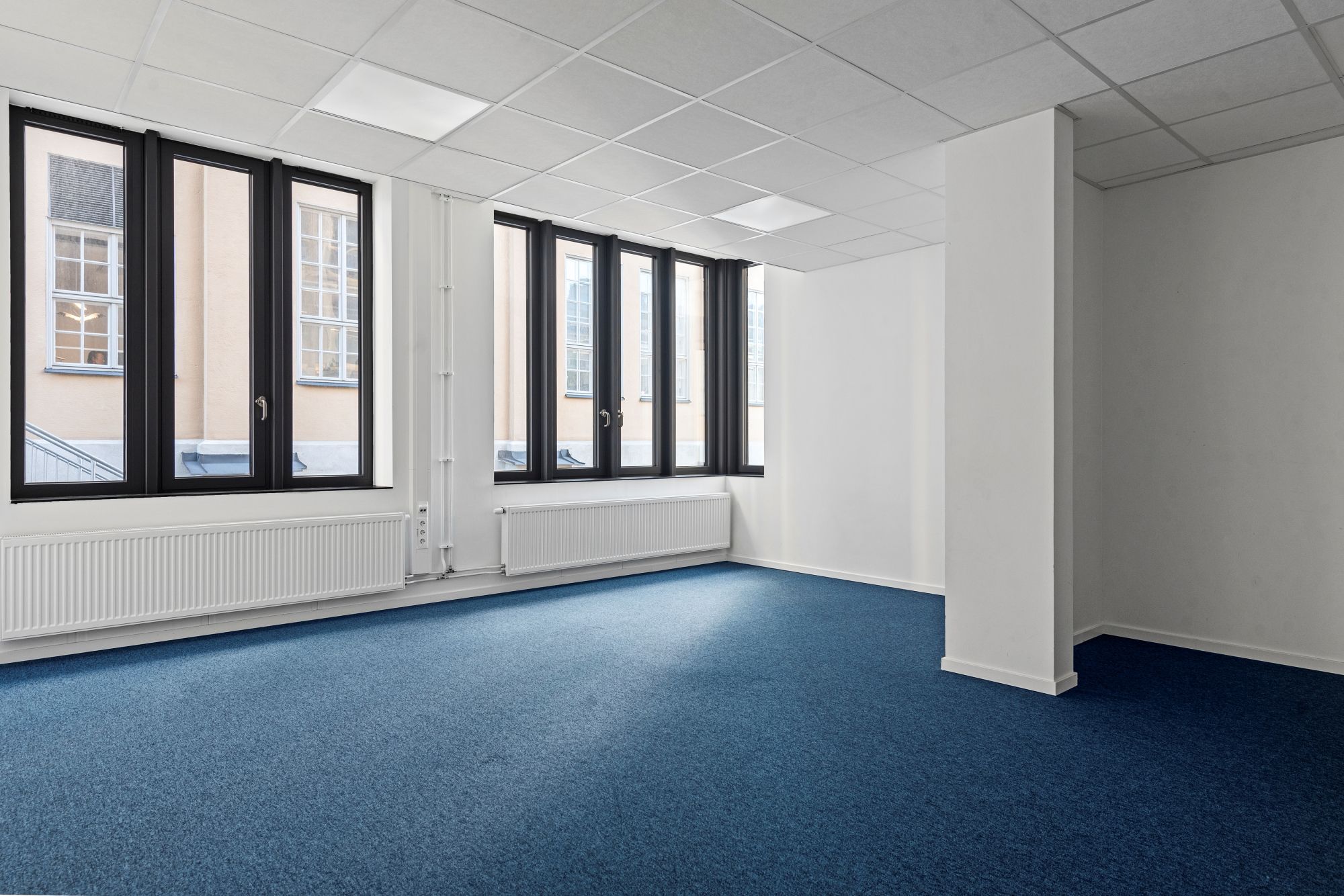 - Stora ljusa fönster mot gatan