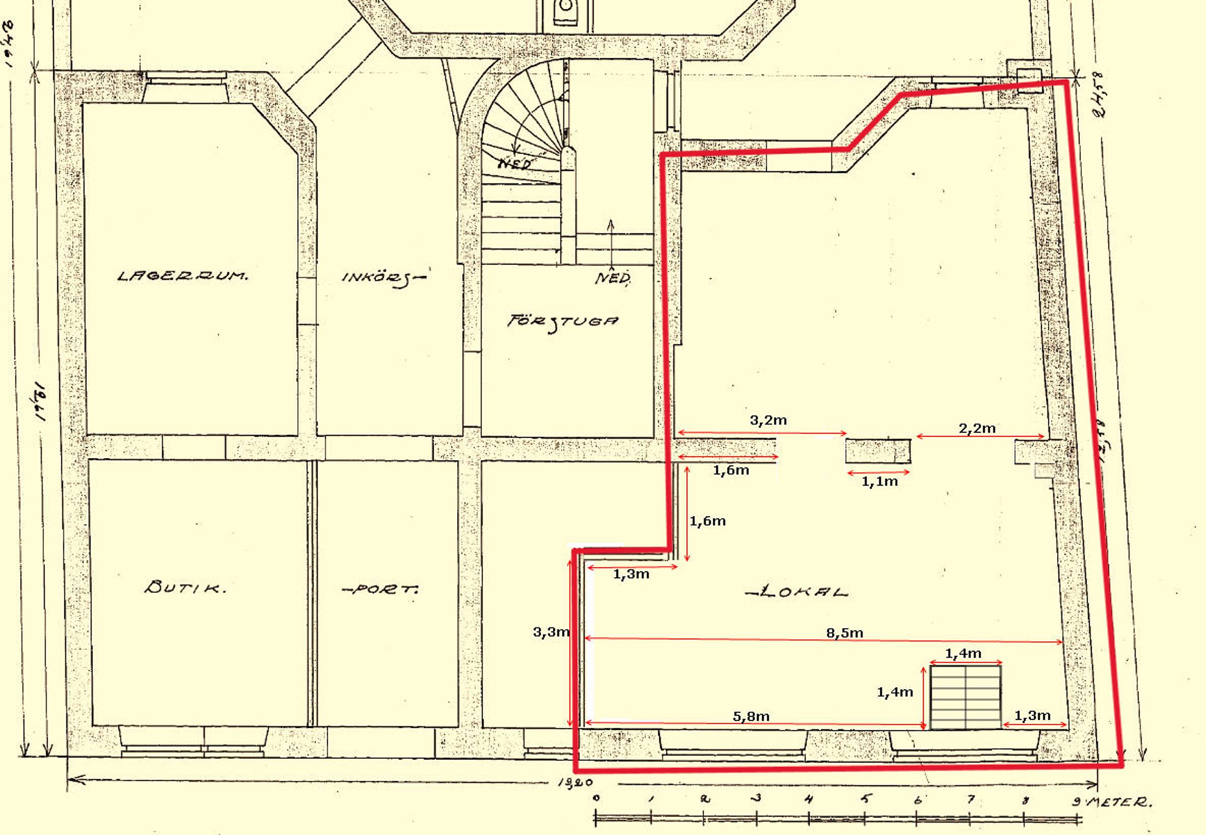 Den generösa ytan rymmer både showroom, arbetsplatser och sociala ytor, vilket gör lokalen idealisk för företag som vill kombinera försäljning med kontor eller studio. De bevarade detaljerna från byggåret 1910 ger lokalen en unik karaktär och en inspirerande atmosfär.