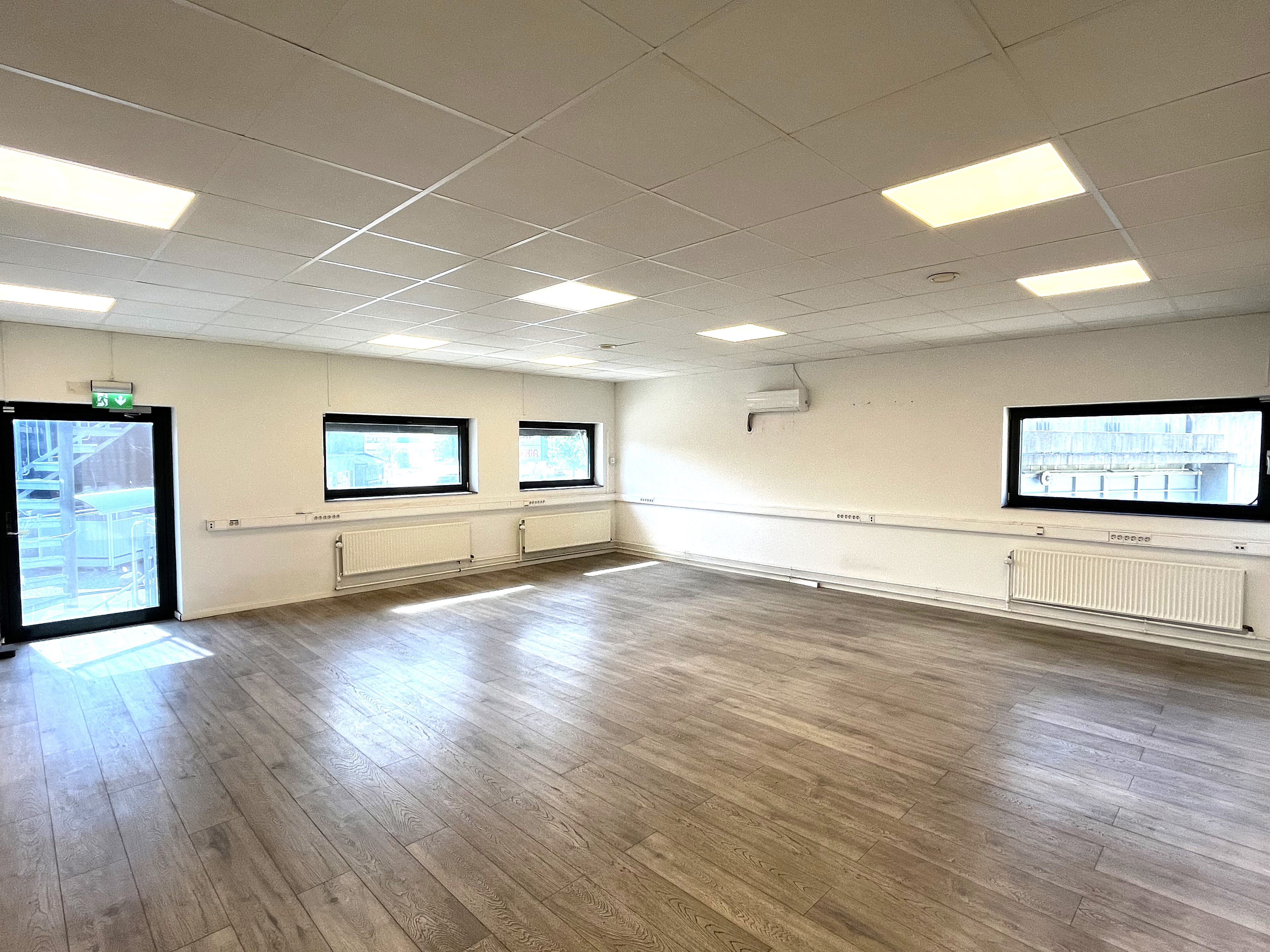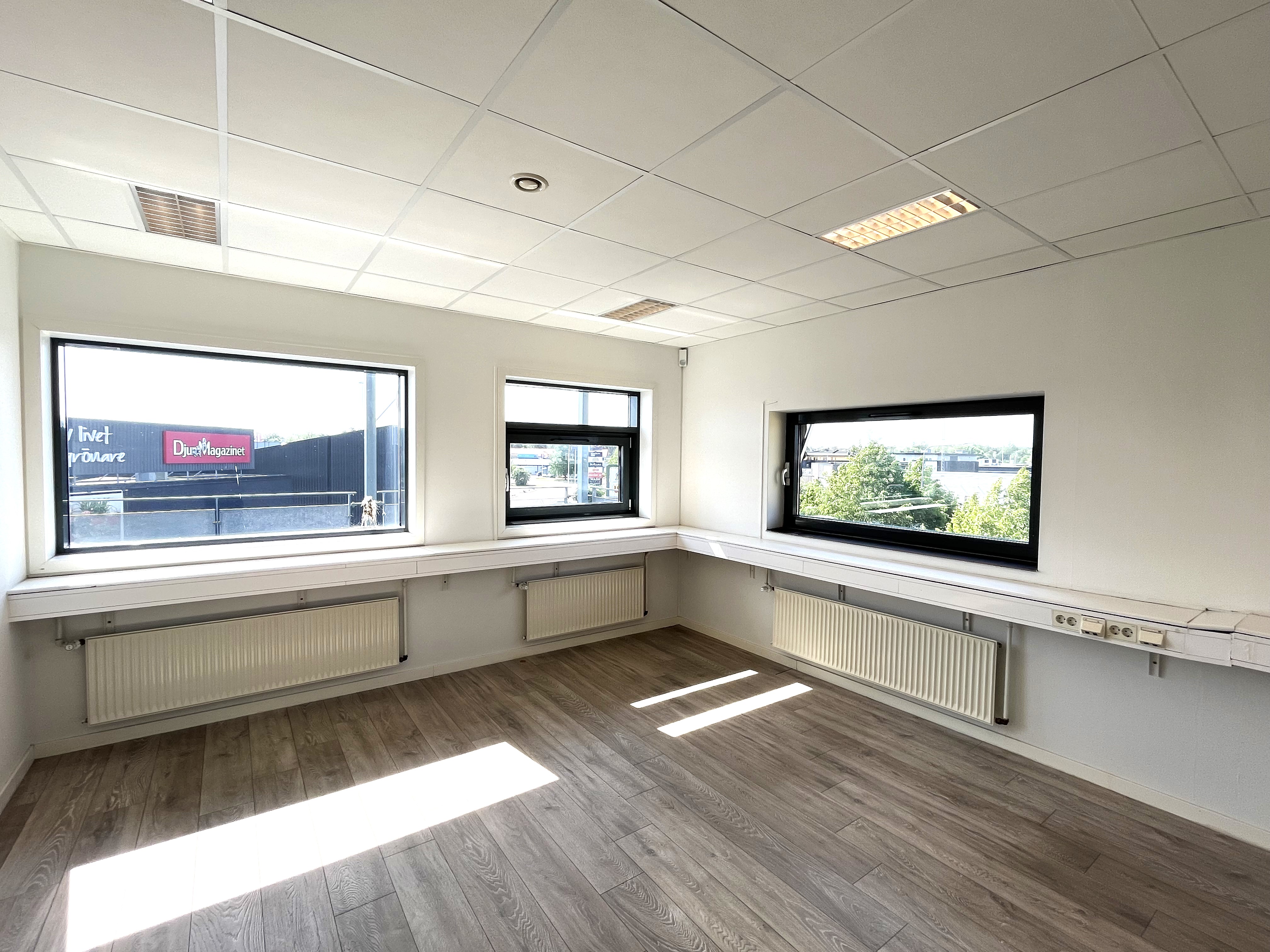 Fastigheten erbjuder en generös takhöjd om ca 6M med bra ljusinsläpp.