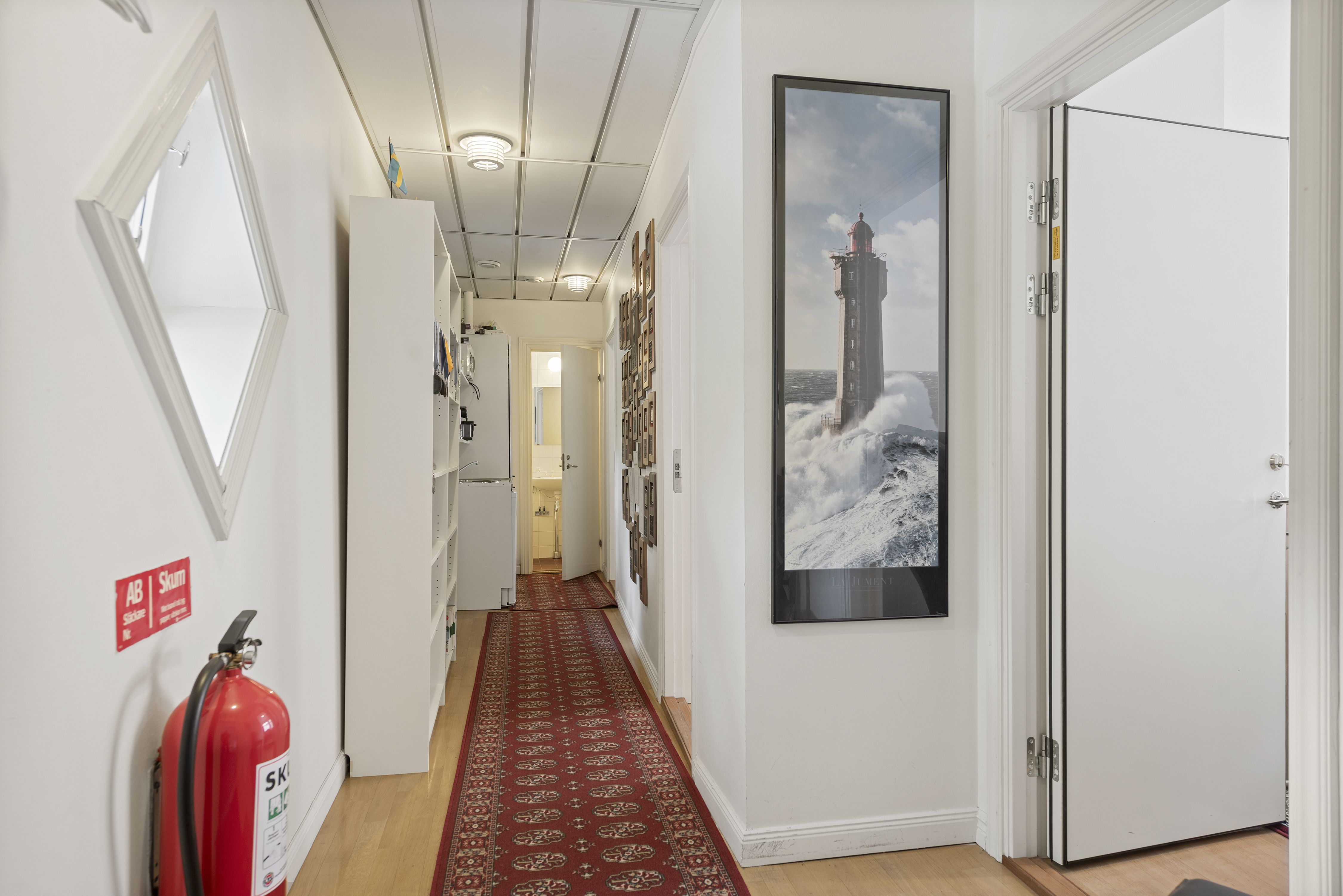 Kontor med tre arbetsrum, hall med plats för ytterkläder samt platseffektivt pentry.