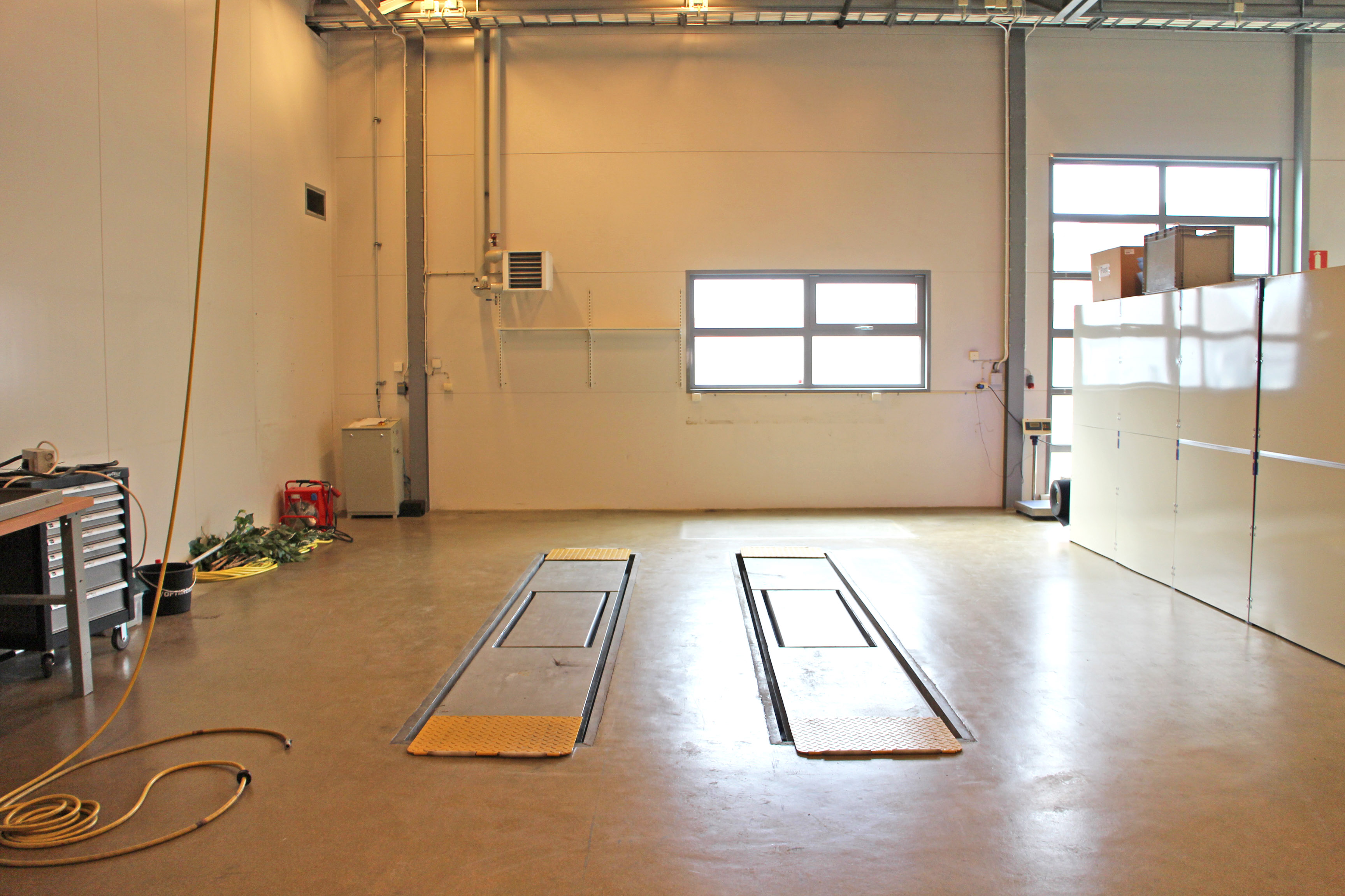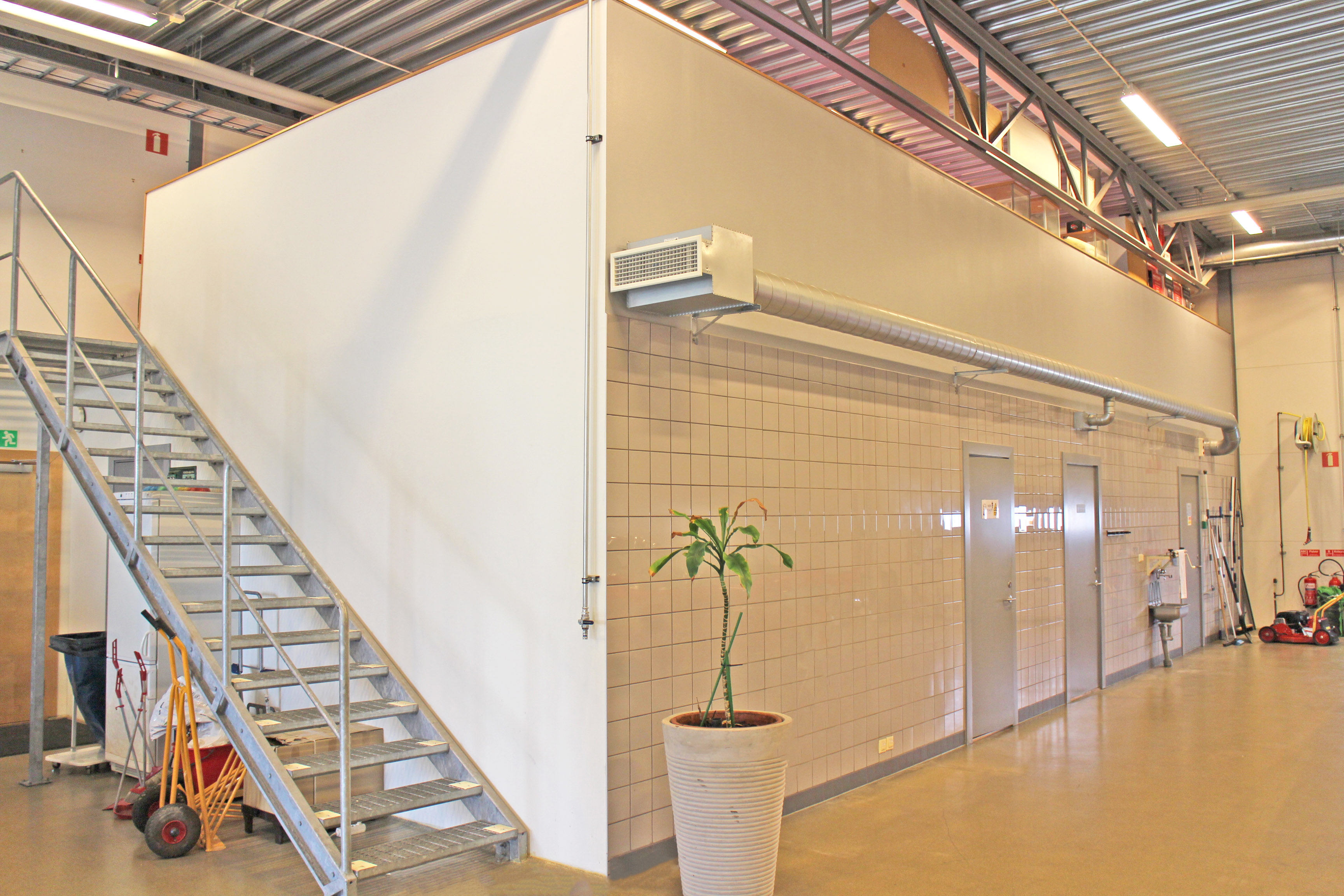 Byggnaden är väl anpassad för effektiv logistik med två markportar – en till lagerdelen och en till verkstadsdelen – vilket underlättar in- och utlastning samt daglig drift.