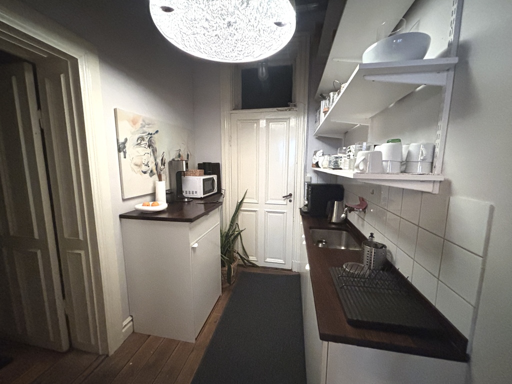 Lokalen består av två sammanlänkade lokaler med egna entreér, 2 väldigt fräscha toaletter, ett mindre pentry samt två stora rum mot gatan och två mindre rum med fönster mot innergården. Högt i tak.