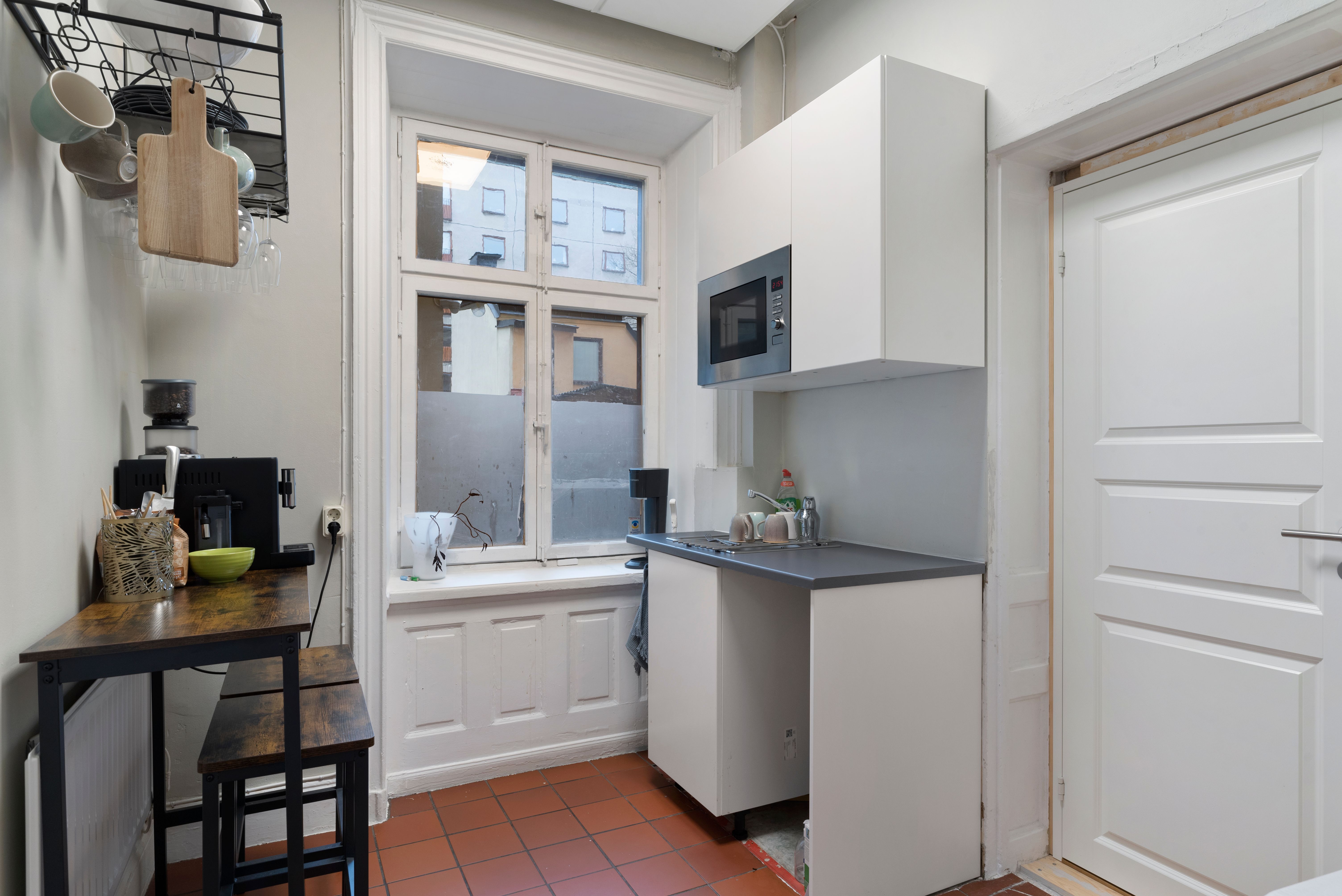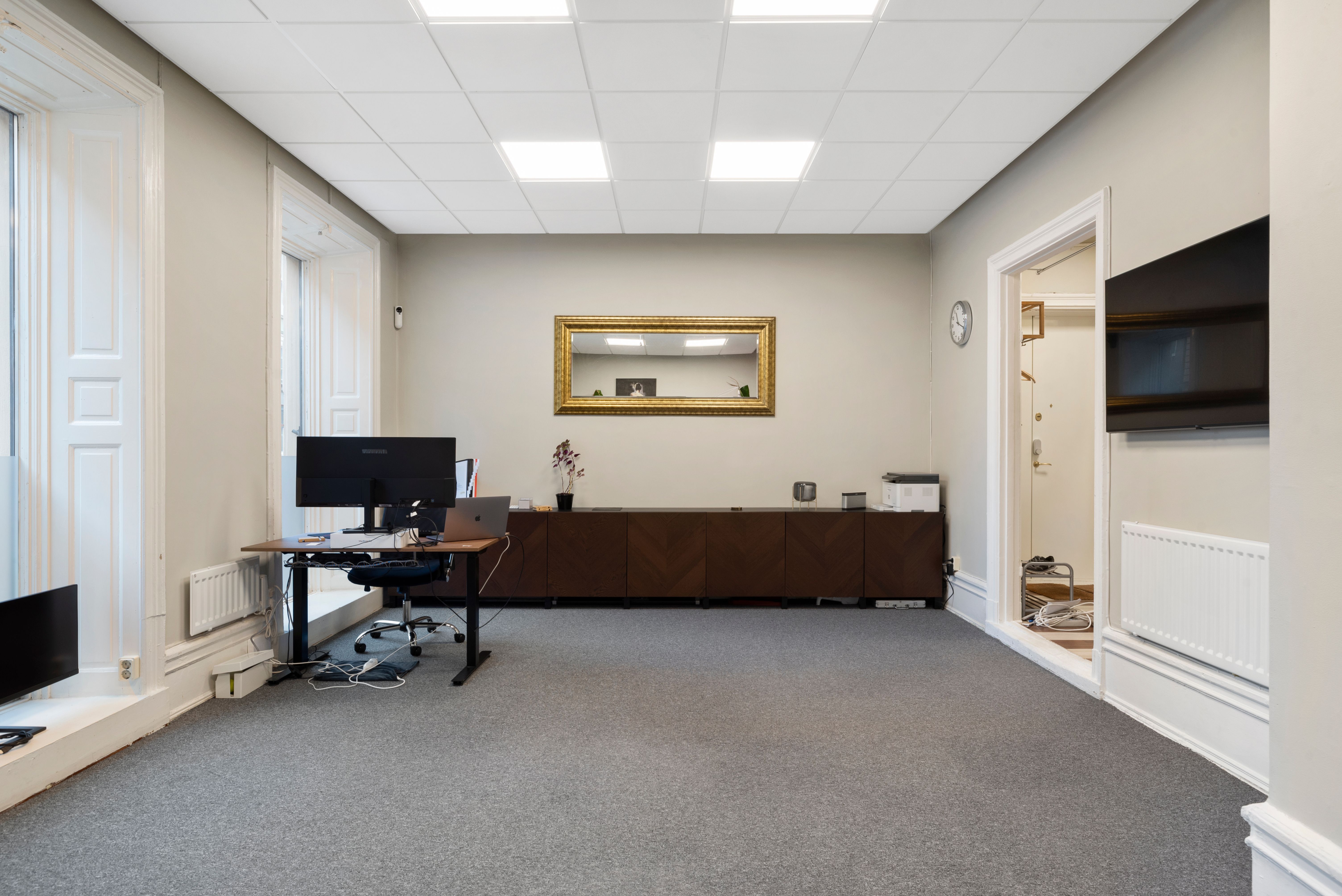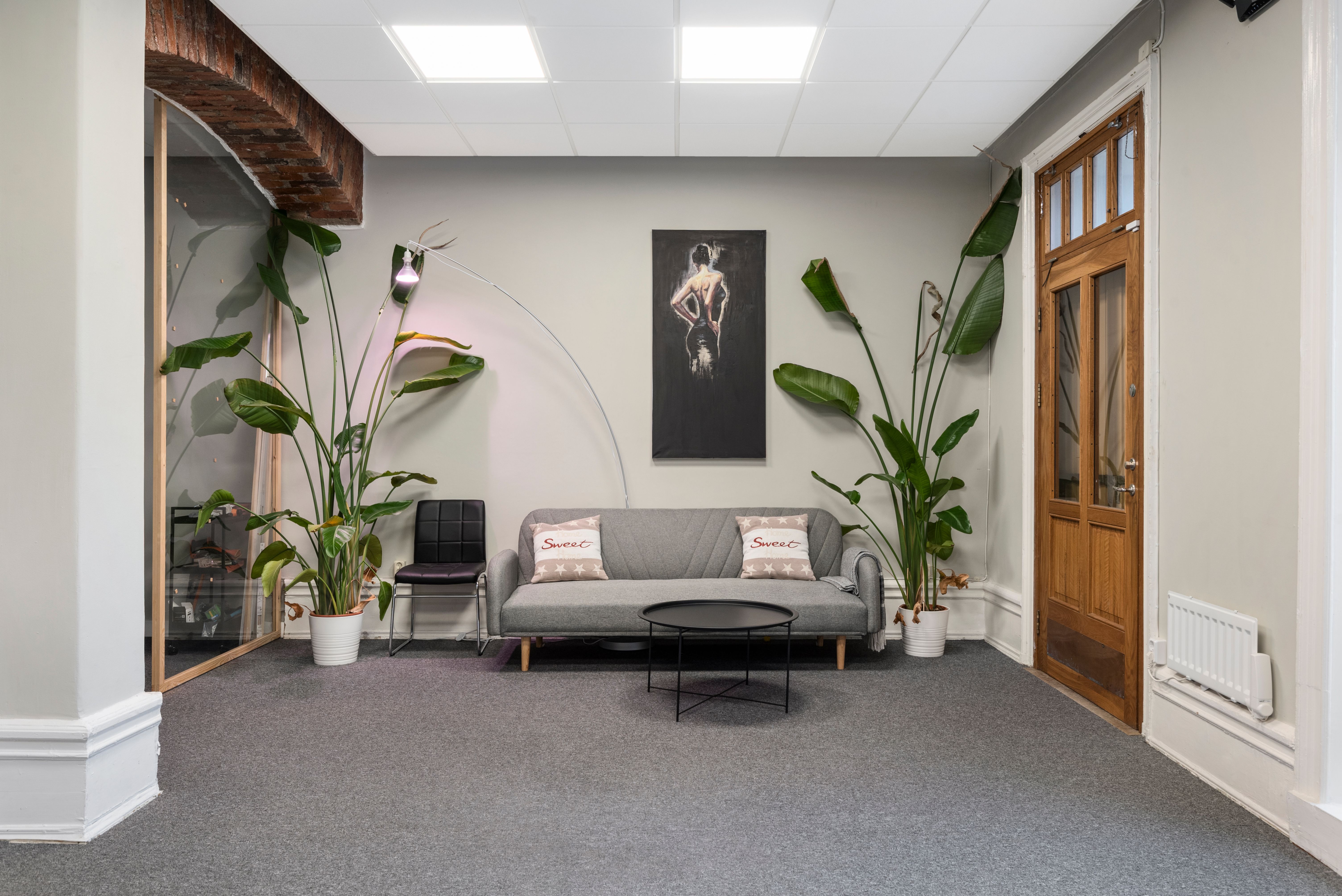 Med högt i tak och härligt ljusinsläpp erbjuder lokalen ett större rum samt två mindre, perfekt för mötesrum eller kontor. Dessutom finns ett litet pentry och wc, vilket gör det enkelt att skapa en trevlig arbetsmiljö.