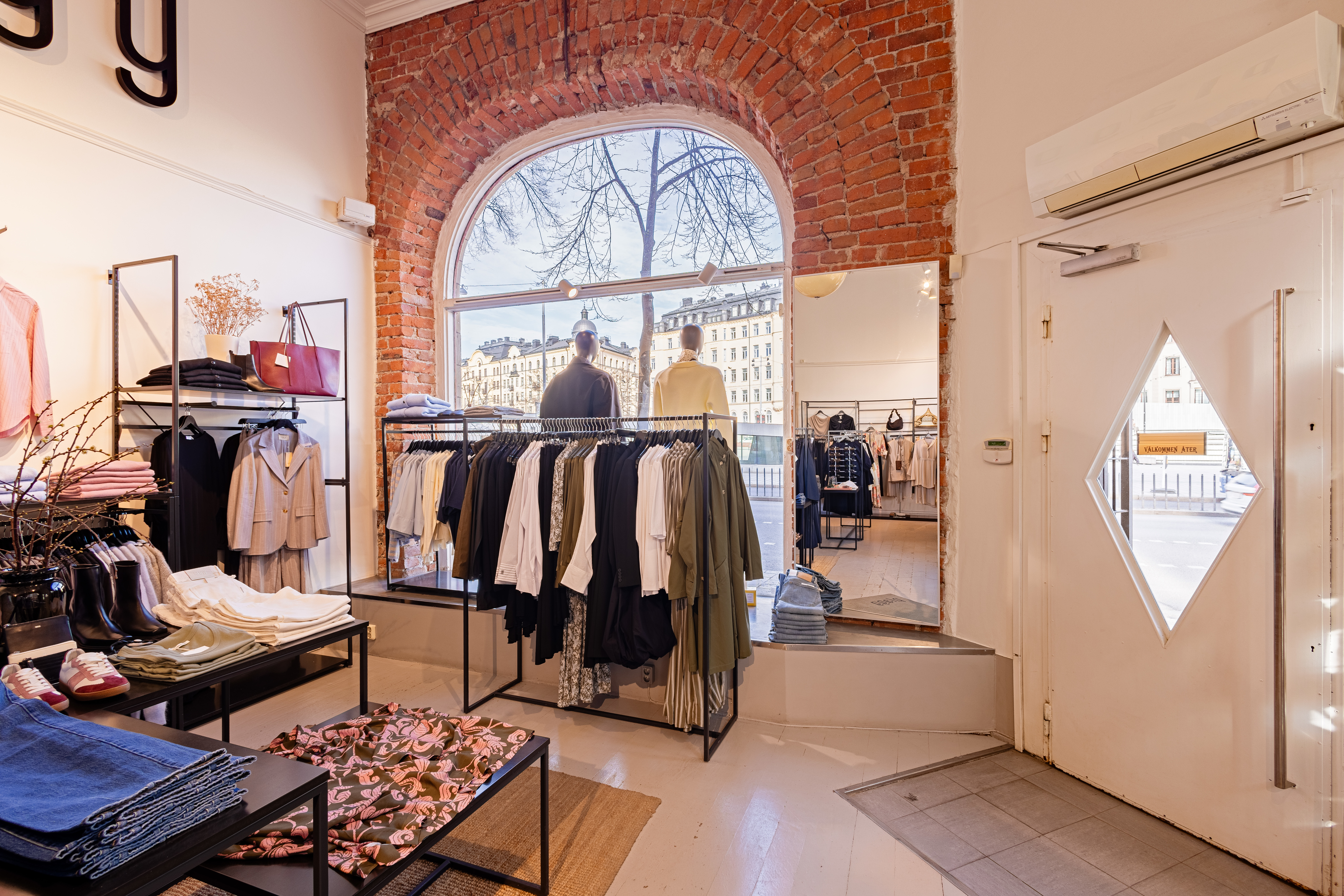 Butiken har en fantastisk takhöjd på ca 4-5 meter och ett flertal stora välvda butiksfönster som ger en mycket bra exponering mot korsningen. Butiksytan är ca 55 kvm samt ett tillhörande lager om 30 kvm i nedre plan. EJ Cafe, Mat, Salong.