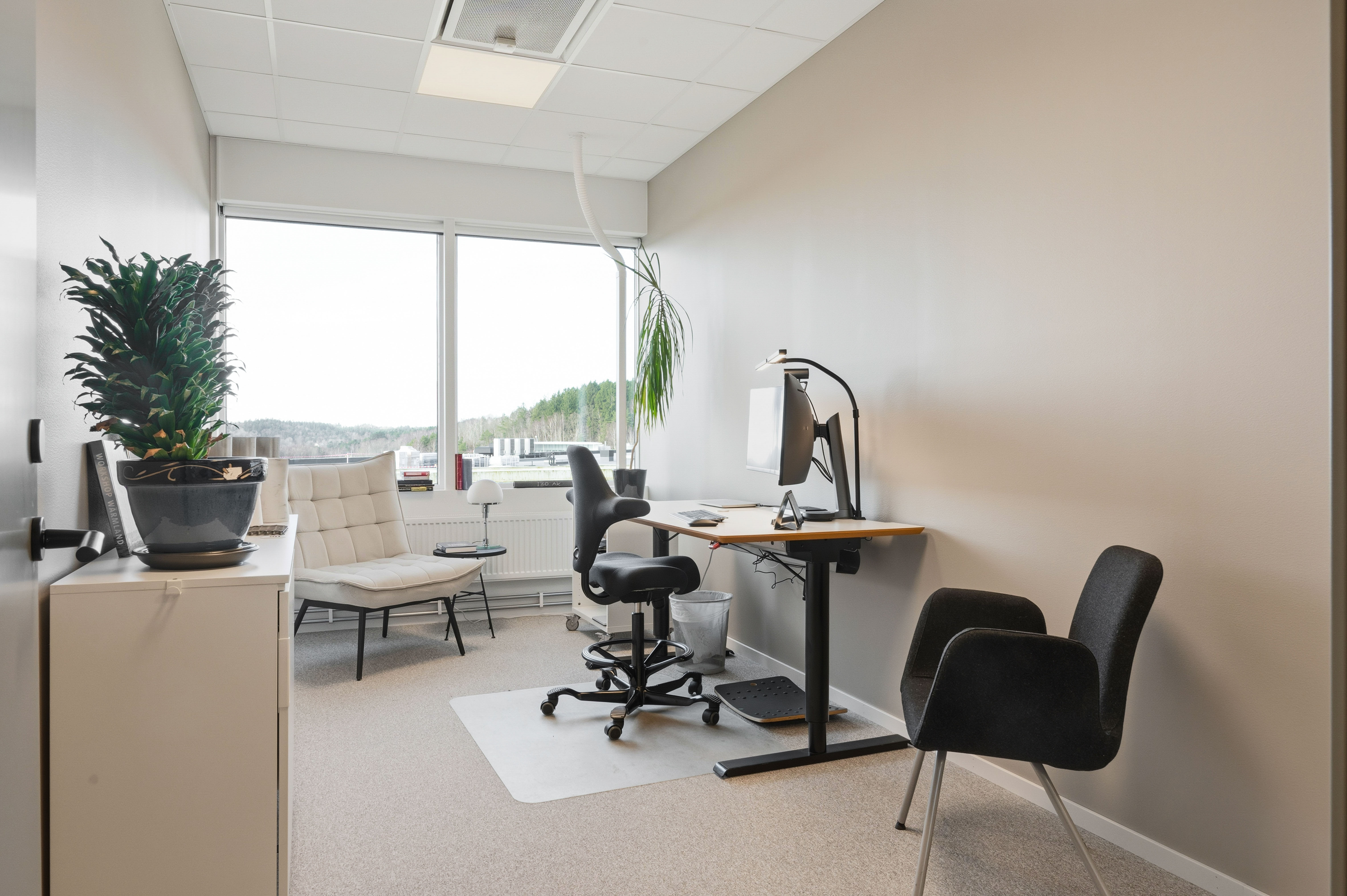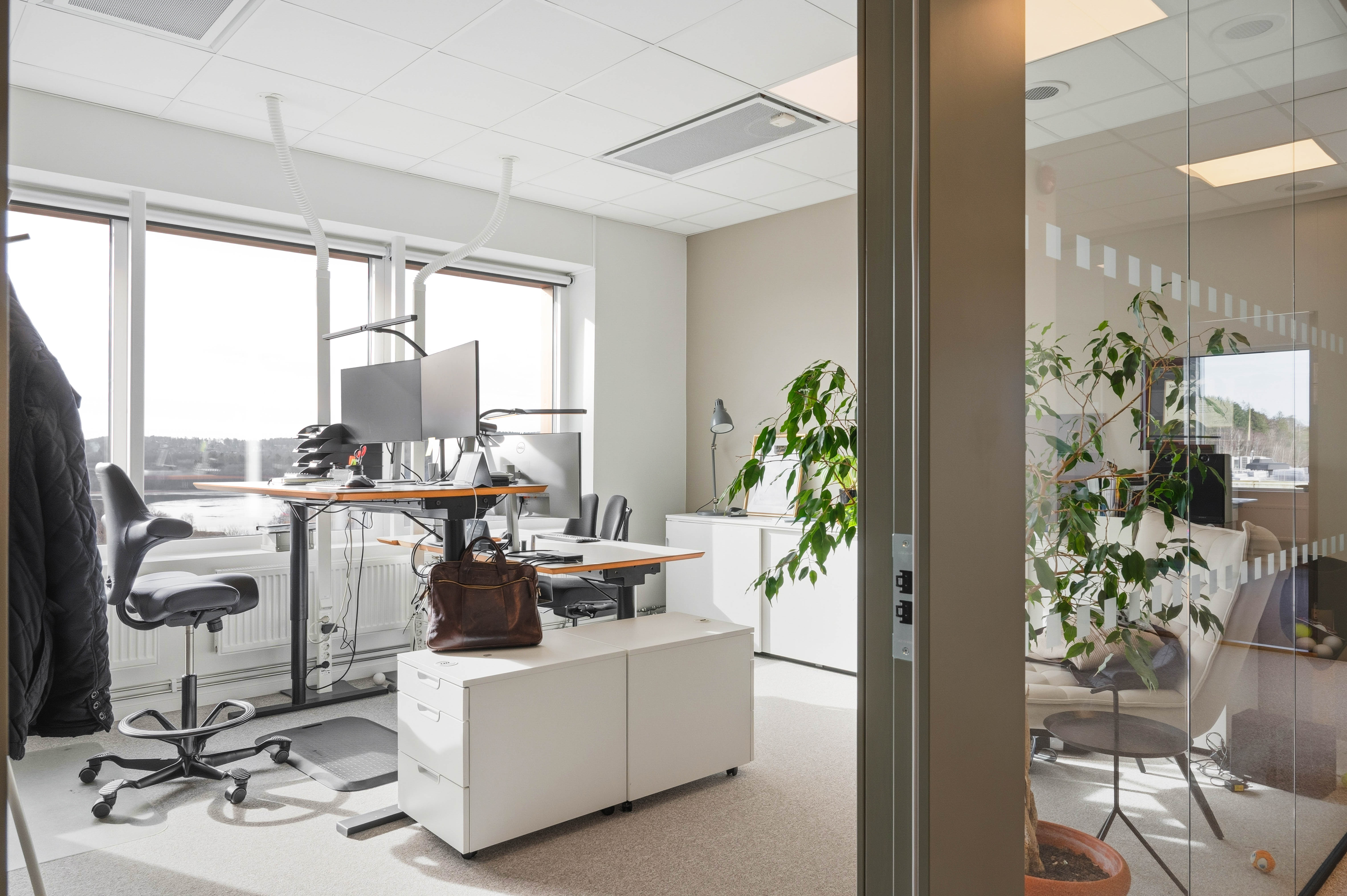 Lokalen erbjuder tre separata kontorsrum med plats för 1–2 personer per rum samt ett öppet landskap med arbetsplatser för upp till 6 personer. Perfekt för det mindre bolaget eller teamet som söker en flexibel och kvalitativ kontorslösning. Möjlighet att hyra från 1 arbetsplats och uppåt.
