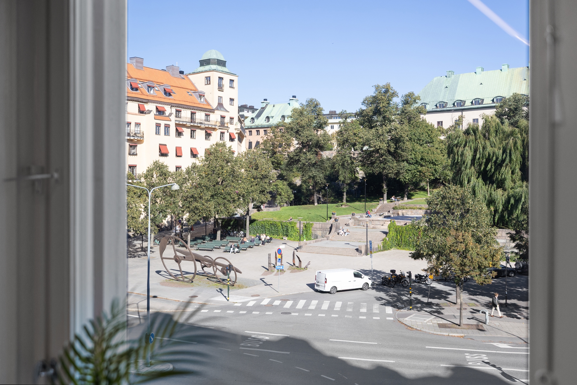 -Tre rum i olika storlekar varav två av dessa vetter mot Regeringsgatan och med utsikt mot Birger Jarlsgatan