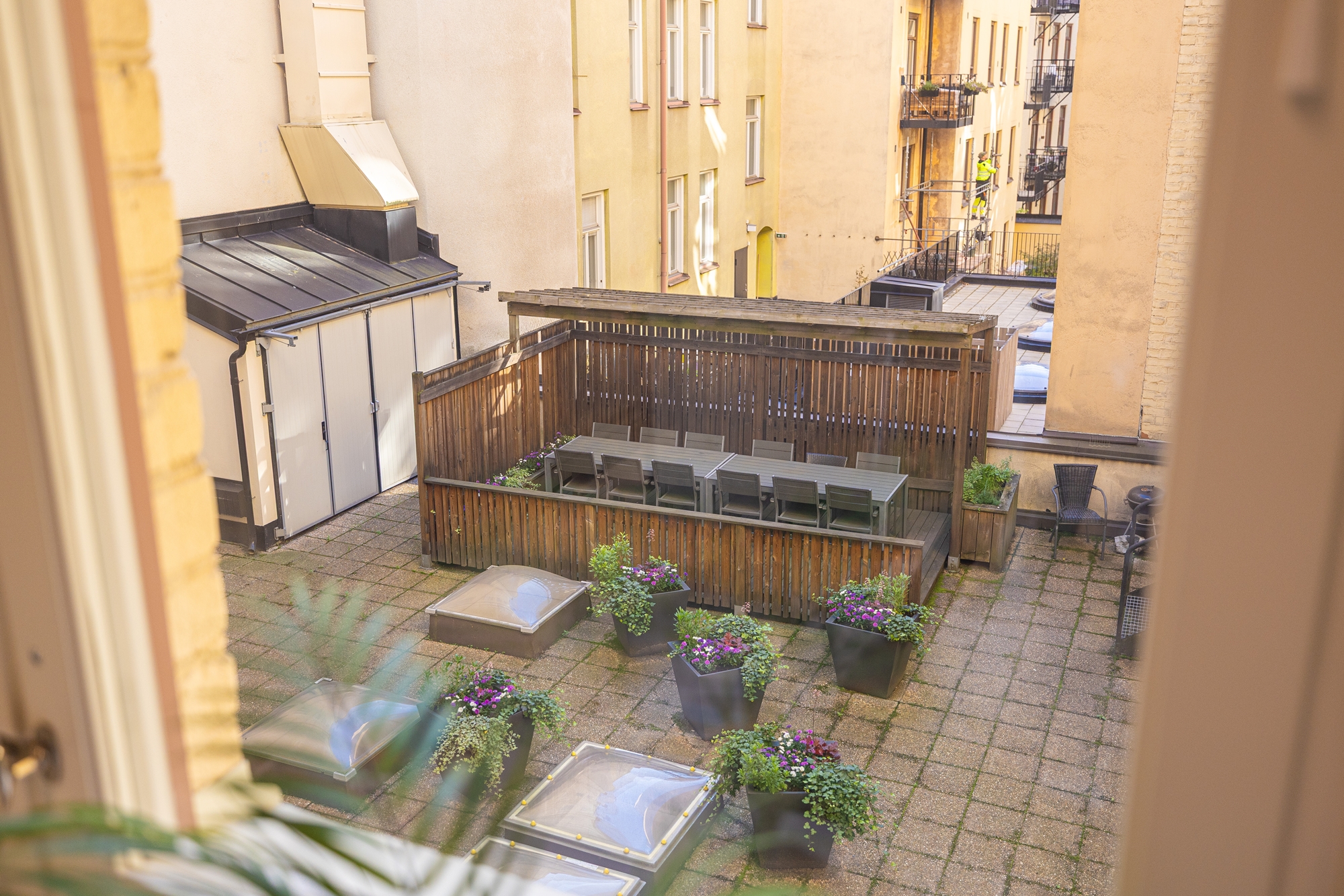 -Trevlig innergård som kan nyttjas av hyresgäst