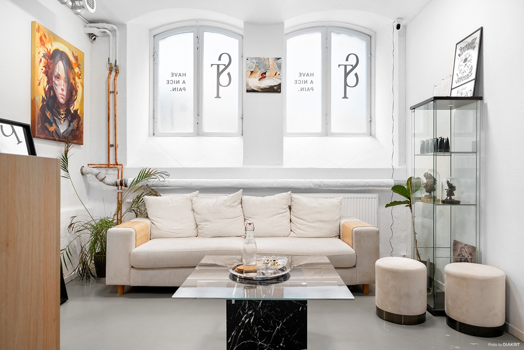 Lokalen består av flera rum med olika funktioner, vilket gör den idealisk för en rad verksamheter. Två separata wc varav den ena med dusch. När du kliver in möts du av en välkomnande loungedel som passar både som reception/väntrum för besökare eller social yta, Här finns också ett nytt pentry utrustat med diskmaskin. Ett rymligt studiorum med högt i tak och fönster mot en lugn innegård. Dessutom finns ytterligare ett större rum att anpassa efter ert behov.