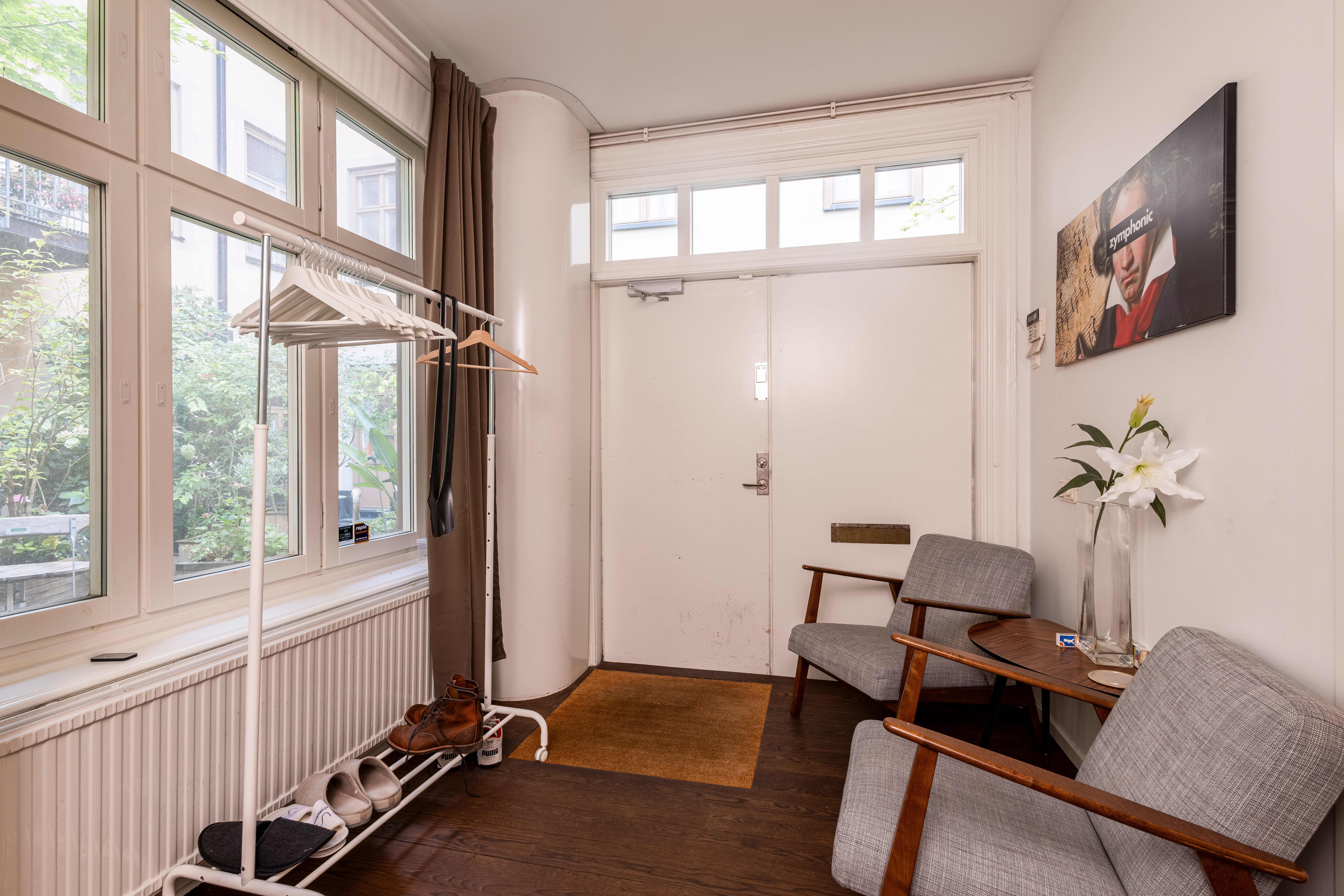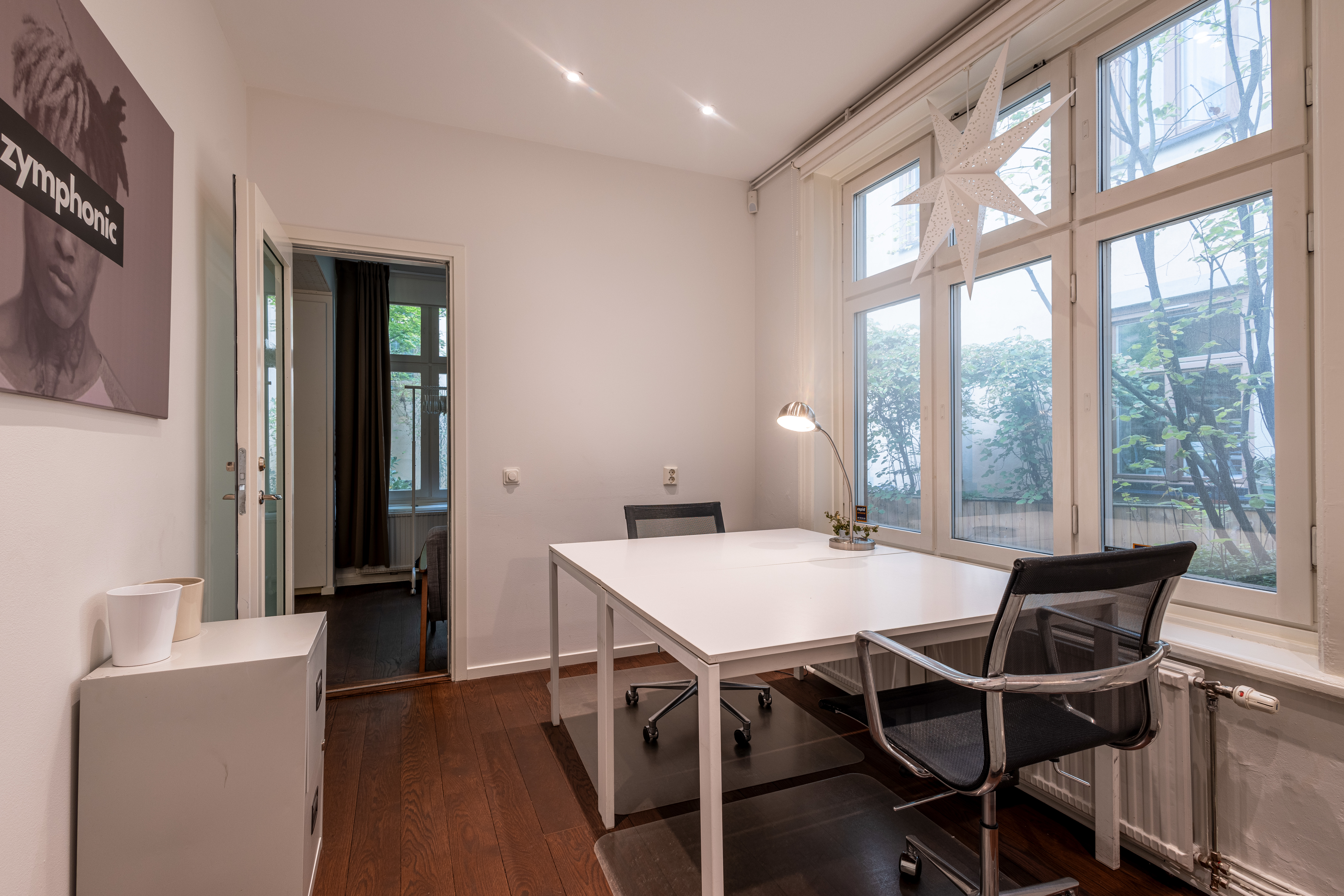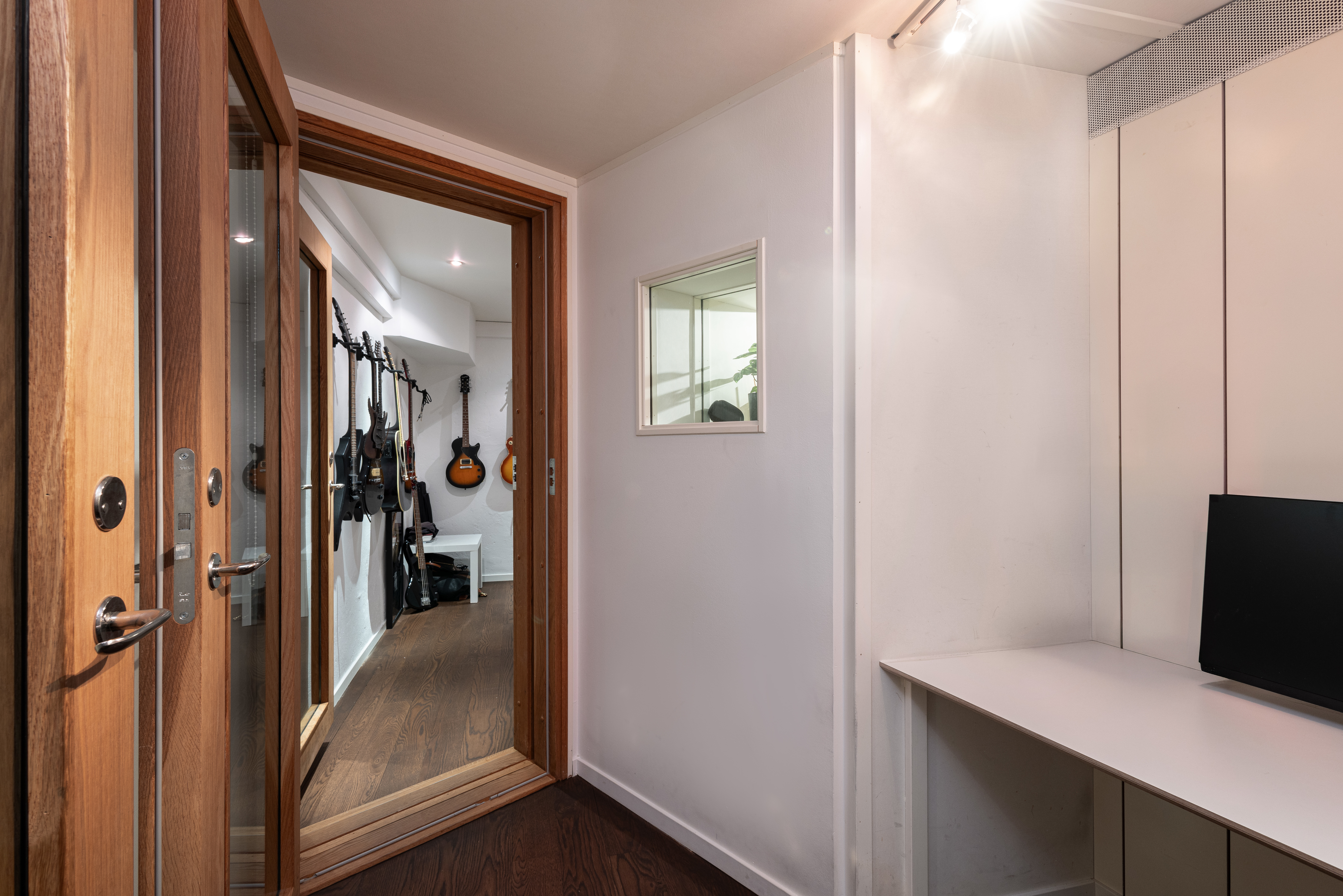 Lokalen är belägen i ett eget gårdshus med egen entré. Gårdshuset nås via fastighetens huvudentré från Sibyllegatan. Väl inne i lokalen möter en foajé upp med plats för ytterkläder och "touchdown". På detta plan finns även två stycken rum som kan fungera som mötesrum eller arbetsrum. En rymlig trappa leder ned till källarvåningen. Här huserar två stycken studios och mindre rum. Studiorummen är utrustade med A/C. På detta plan finns även ett pentry.