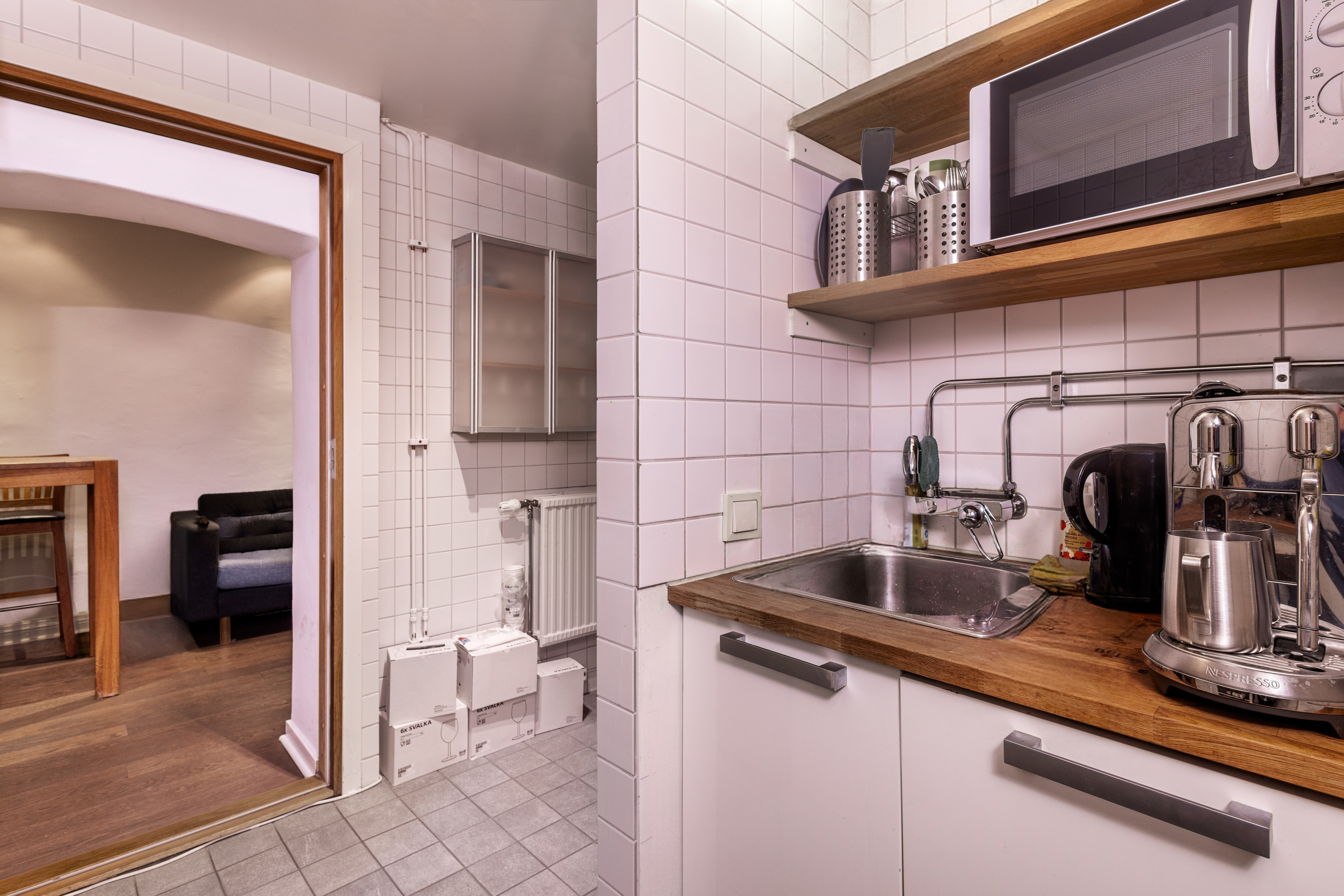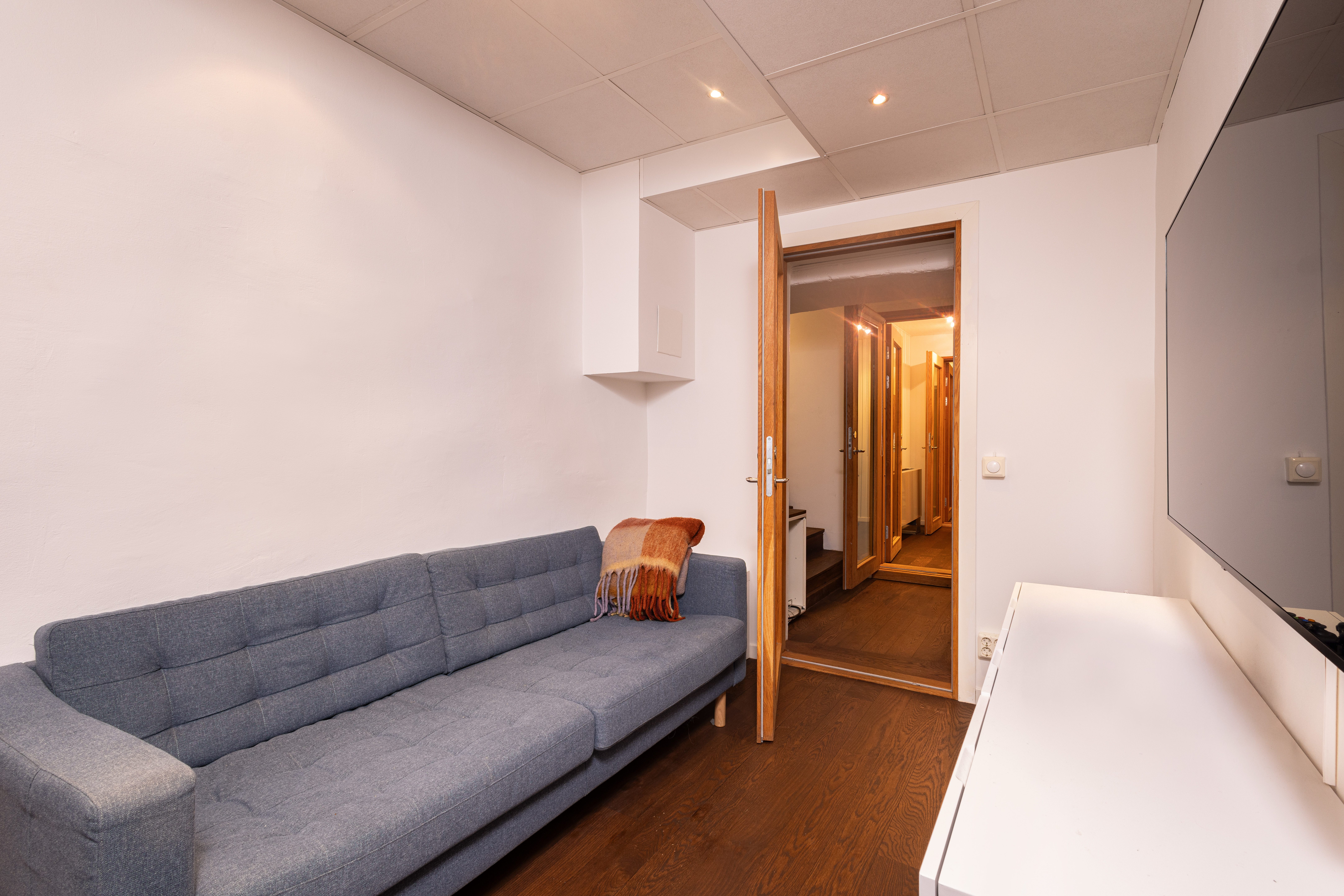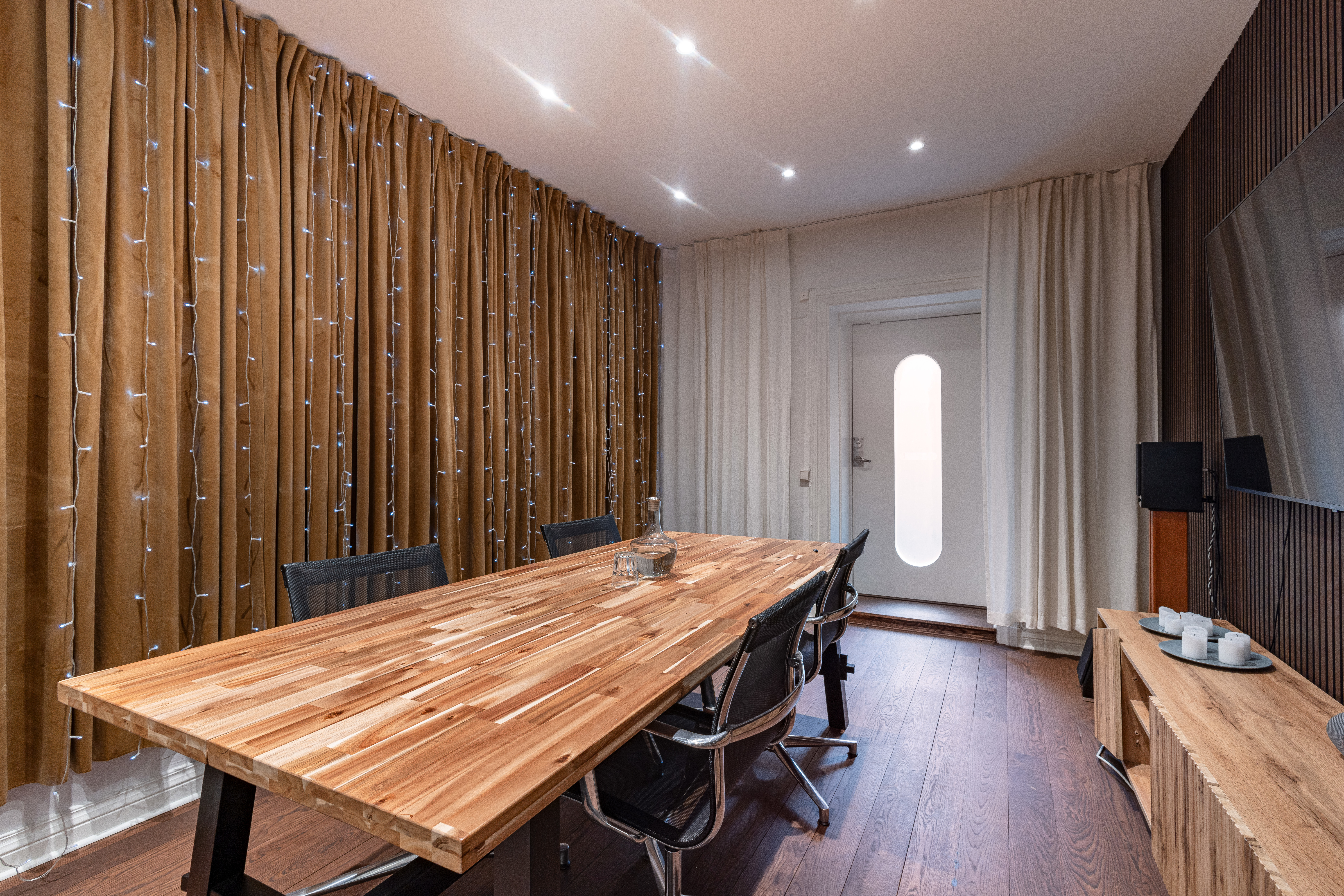Lokalen är belägen i ett eget gårdshus med egen entré. Gårdshuset nås via fastighetens huvudentré från Sibyllegatan. Väl inne i lokalen möter en foajé upp med plats för ytterkläder och "touchdown". På detta plan finns även två stycken rum som kan fungera som mötesrum eller arbetsrum. En rymlig trappa leder ned till källarvåningen. Här huserar två stycken studios och mindre rum. Studiorummen är utrustade med A/C. På detta plan finns även ett pentry.