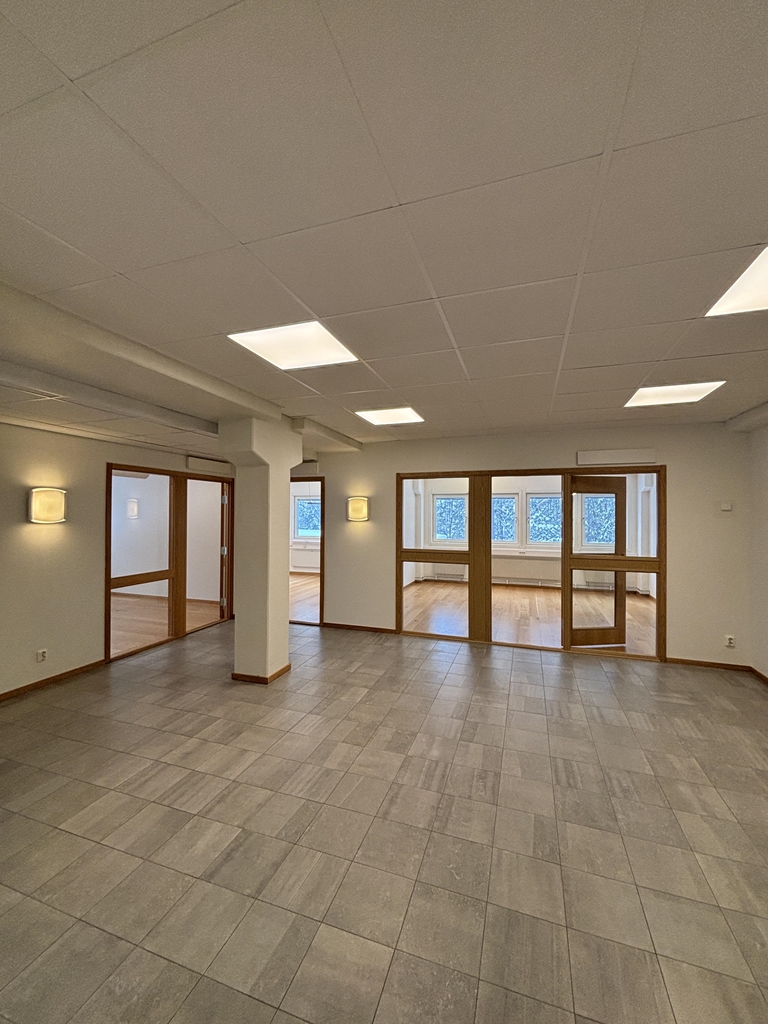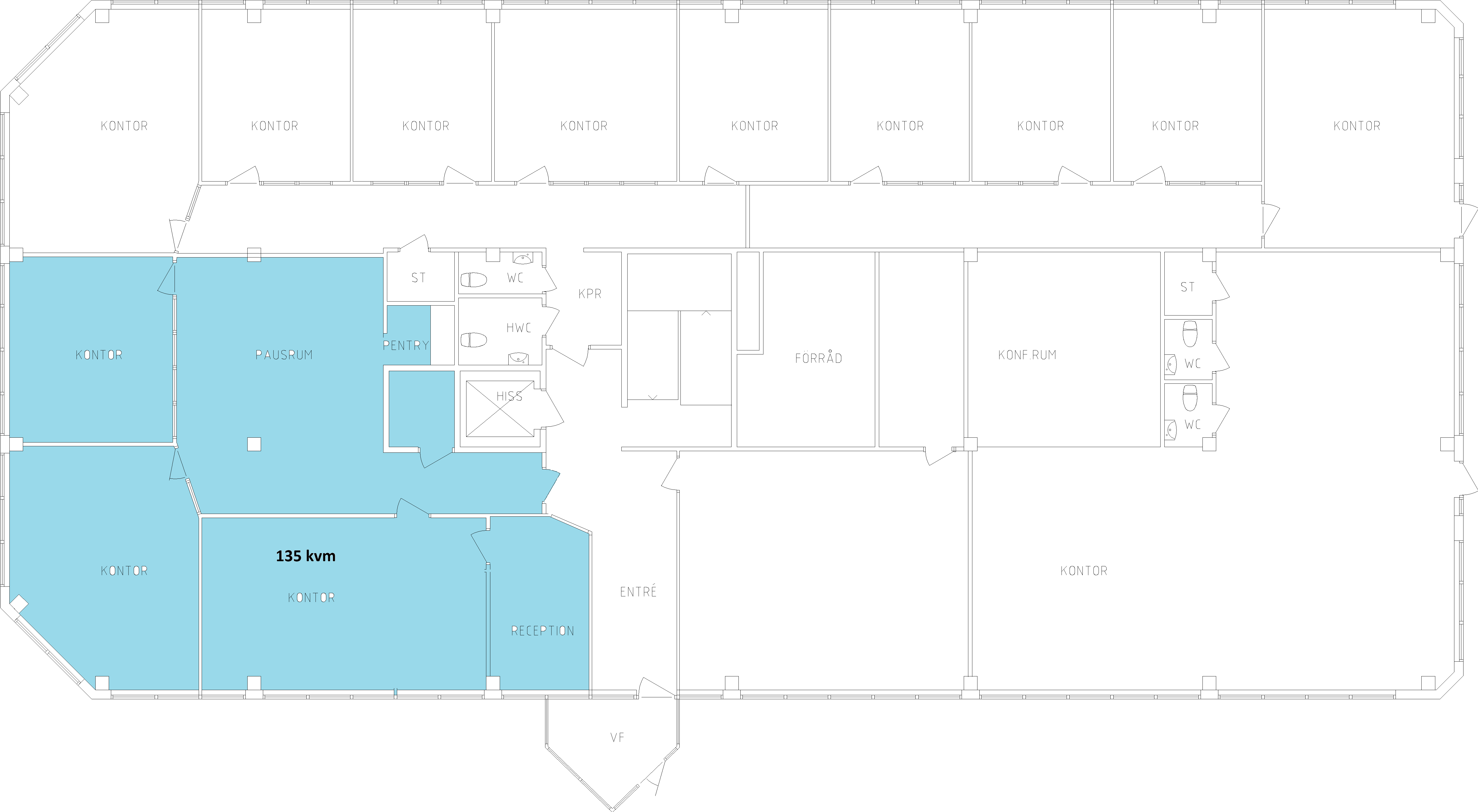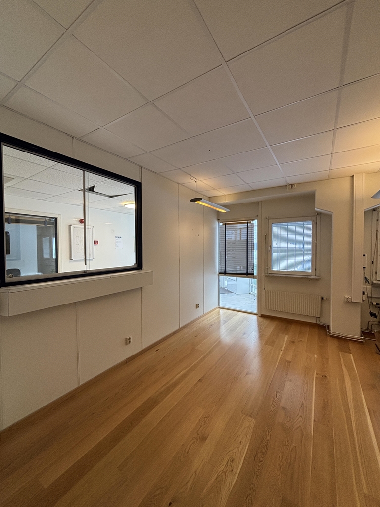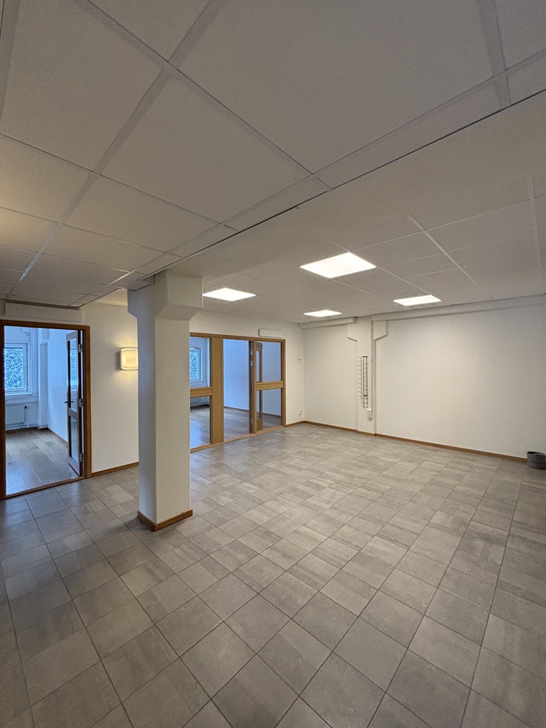 Direkt till vänster om huvudentrén finner vi denna lokal om 135 kvm med en egen reception. Lokalen har separata kontorsrum samt konferensrum som även kan användas som förråd elller mindre lagerdelar. I övrigt finns yta för gemensamma luncher, pentry samt wc med dusch. En lokal som är perfekt för företag i behov av ett fåtal arbetsplatser men plats för gemensamma lunchraster! Till lokalen finns även förråd om ca 20 kvm.