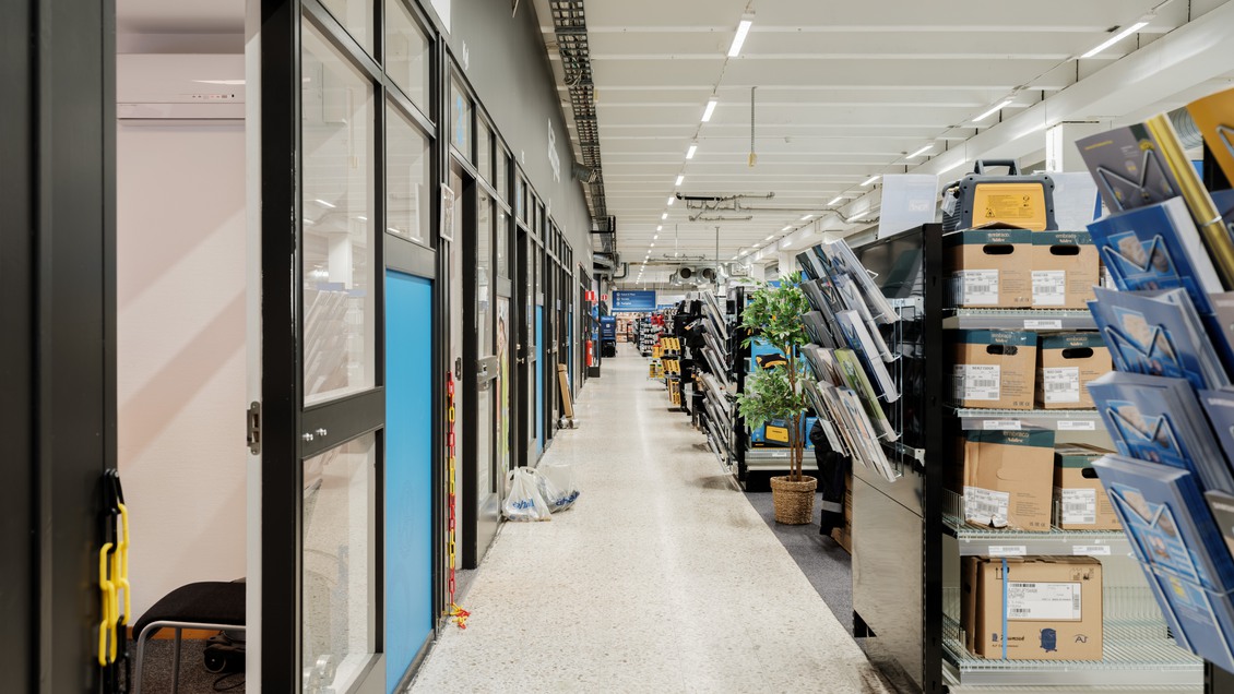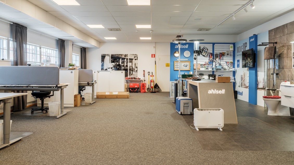 Utöver butik och lager finns generösa kontorsytor som ger plats för administration, möten och personalutrymmen. Det gör det möjligt att samla hela verksamheten under ett tak.