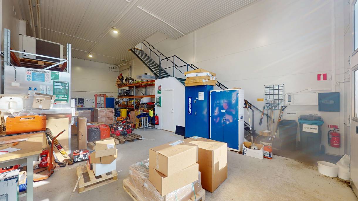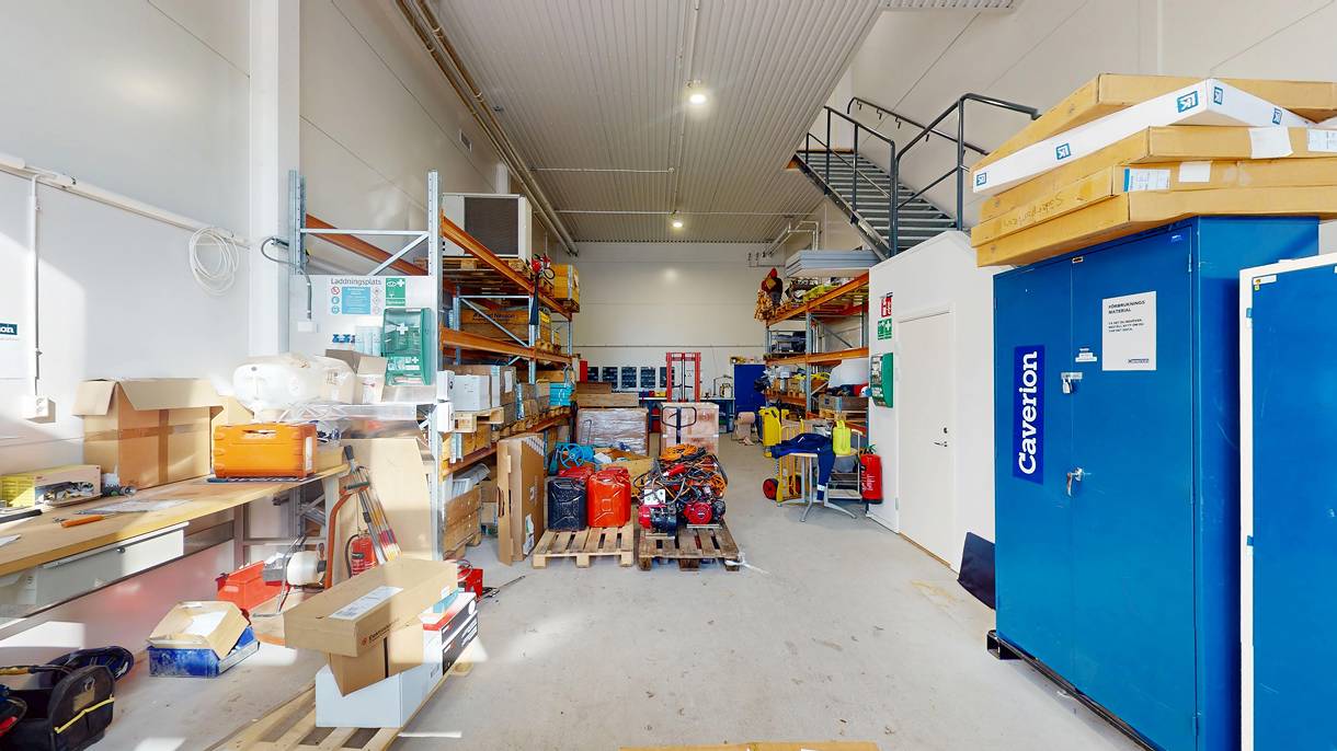 - Effektiv lageryta: 103 kvm med hela 5,5 meters takhöjd, perfekt för förvaring och logistik.