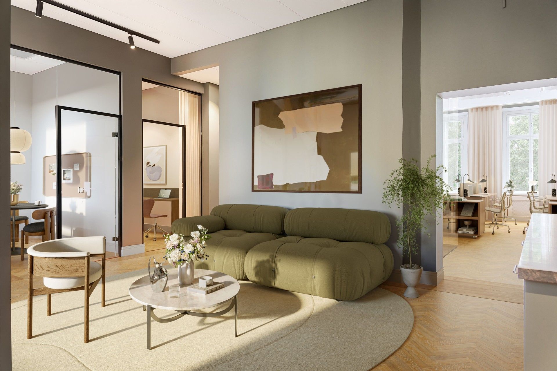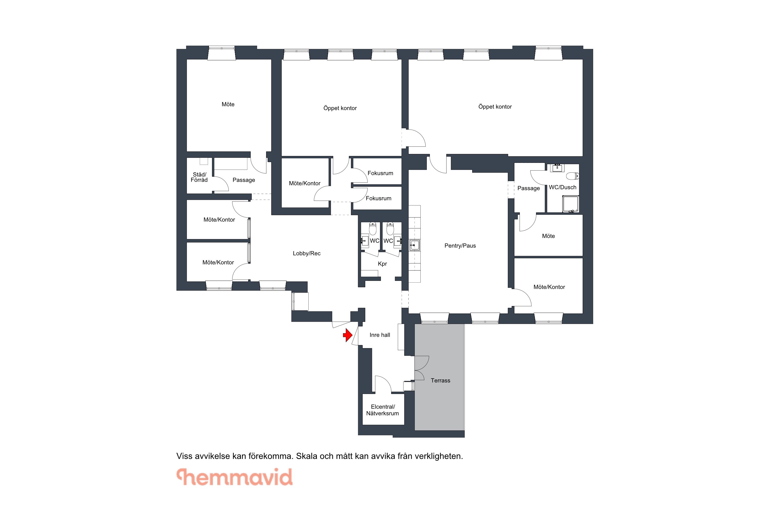 Funktionell planlösning: Optimalt flöde med både öppna ytor och privata kontor.