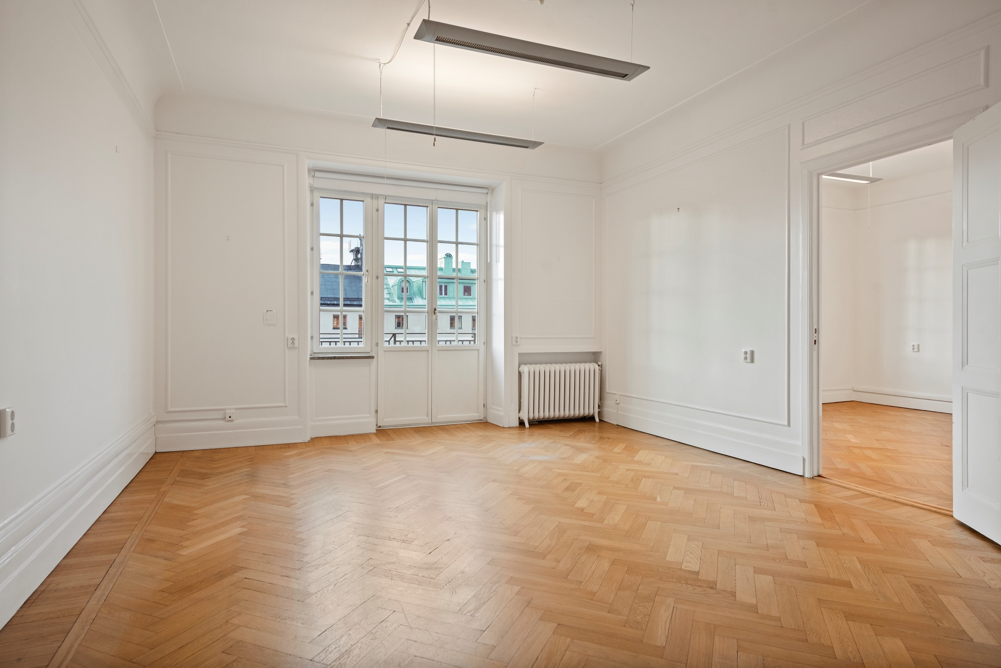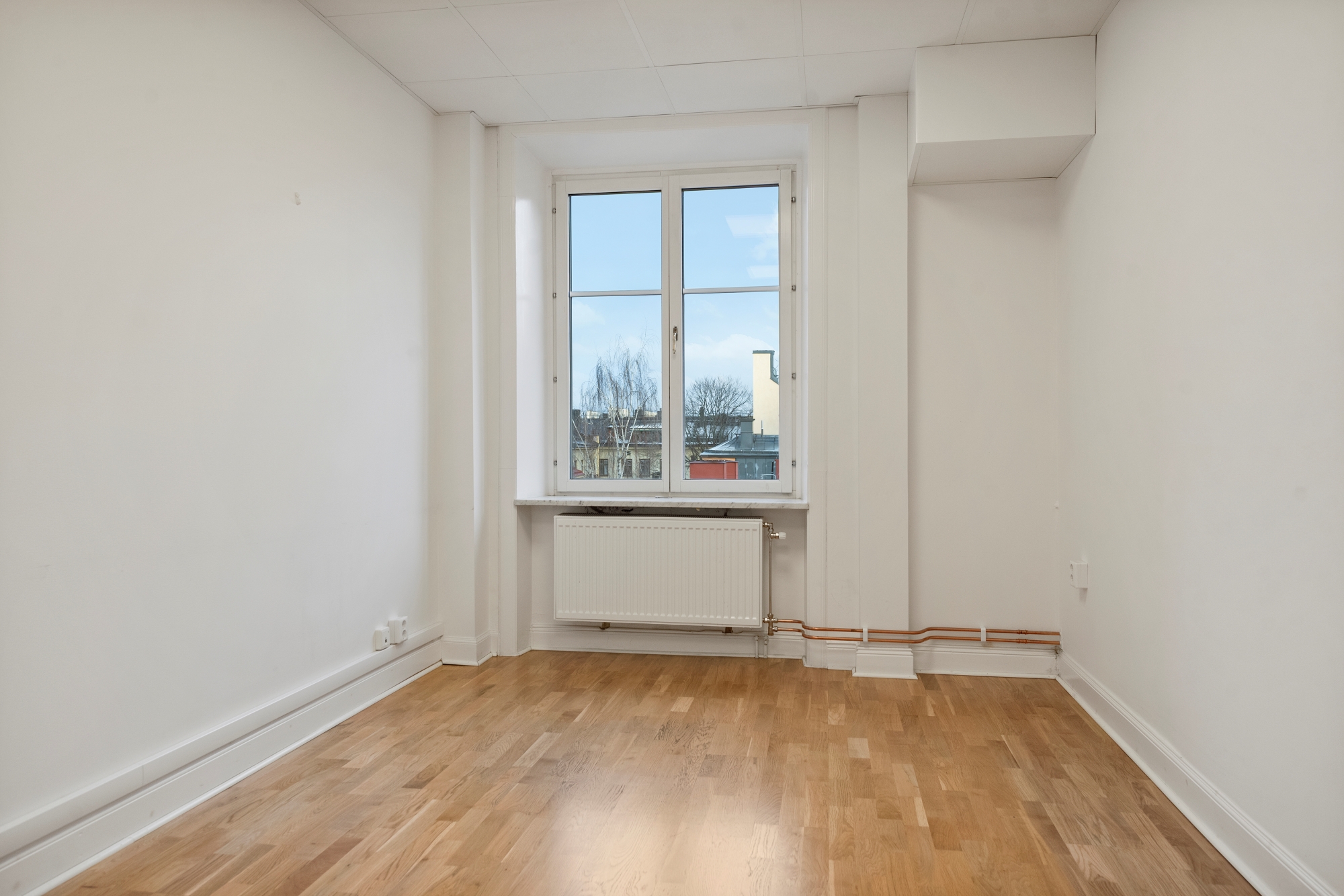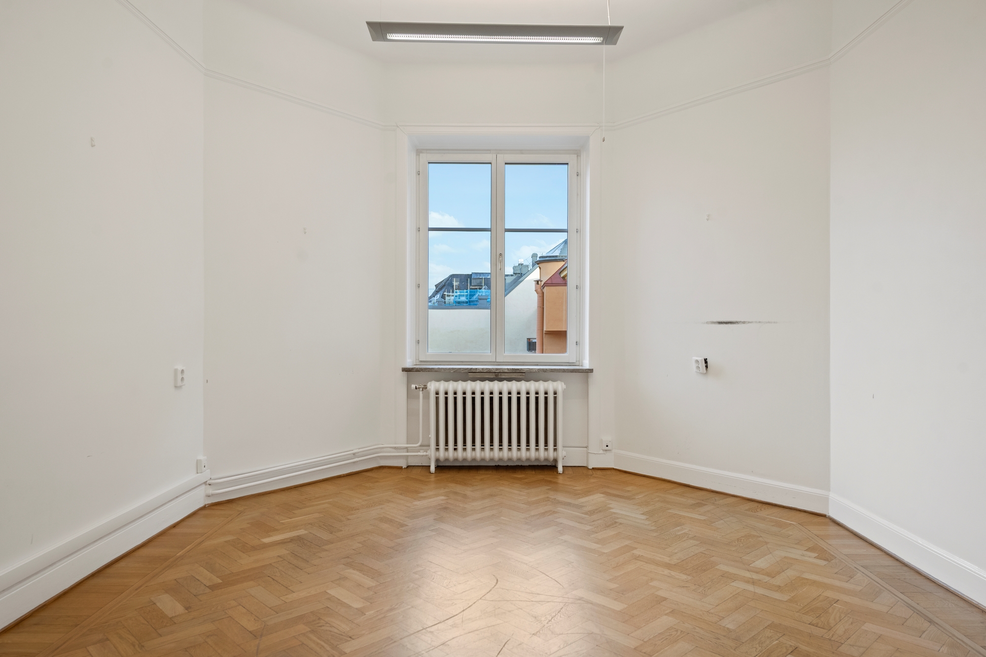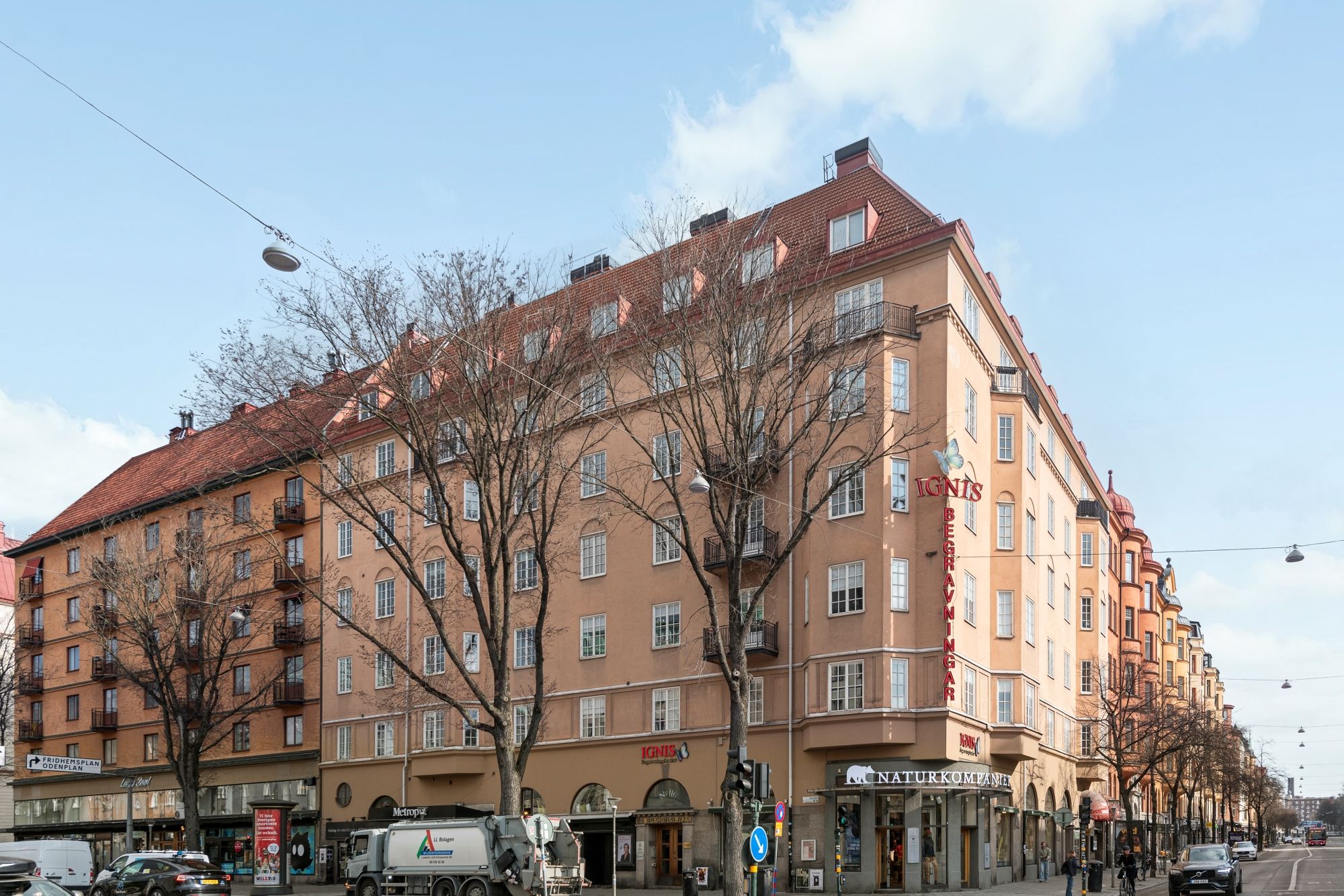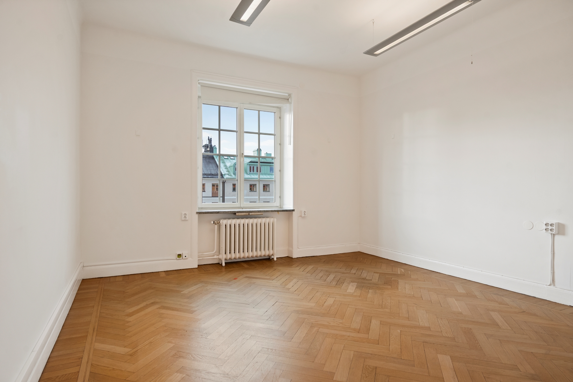 I korsningen Sveavägen/Odengatan ligger denna lokal som har en härlig utsikt över Sveavägen och fastighetens innergård.