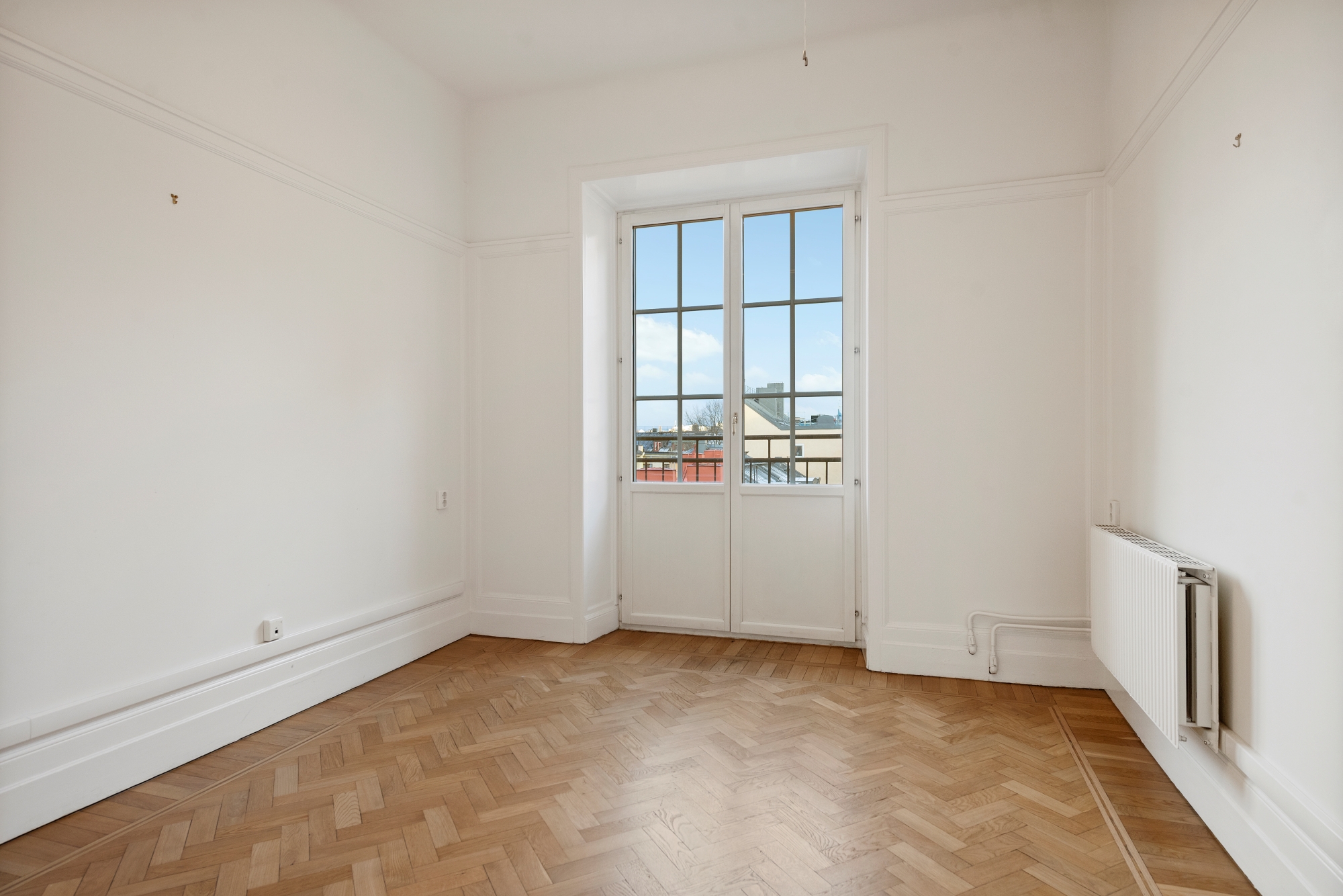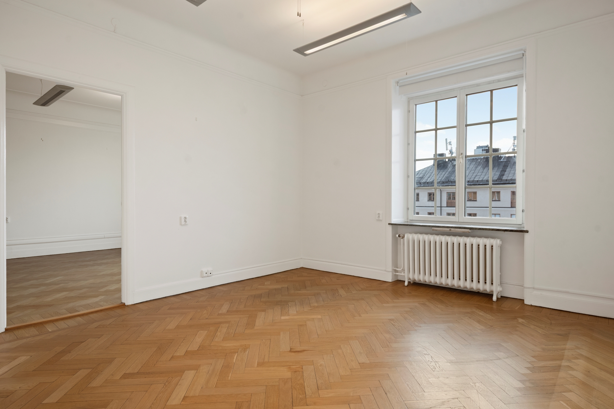 En genomgående väldigt trevlig sekelskiftesfastighet med 3 större rum mot Sveavägen samt pentry och ytterligare 4 rum mot innergården.