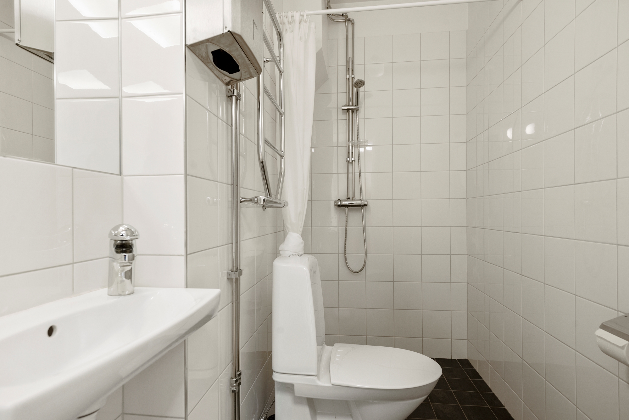 Genomgående bra skick med större del fint fiskbensparkett, högt i tak samt 2 WC, varav en med dusch.