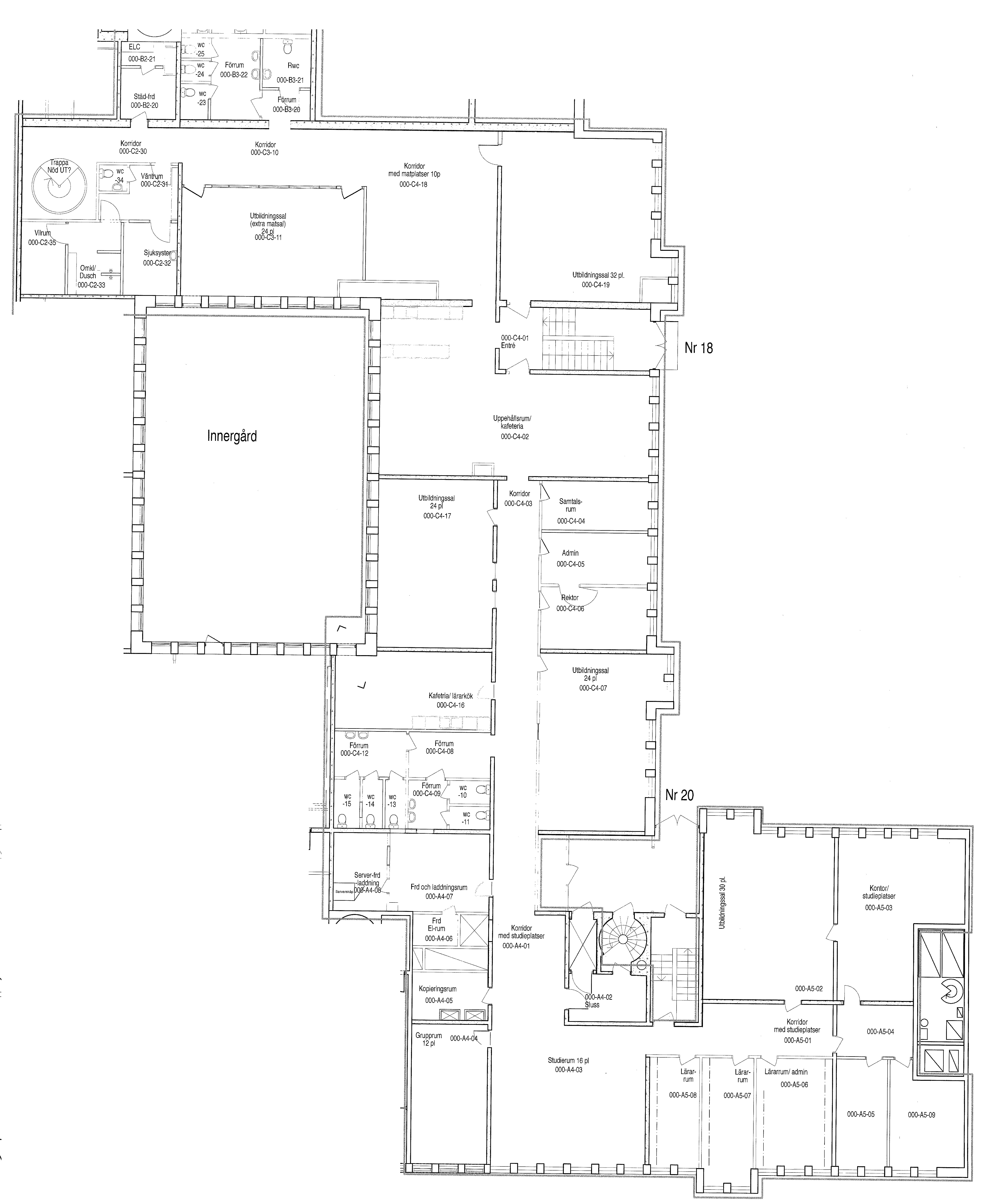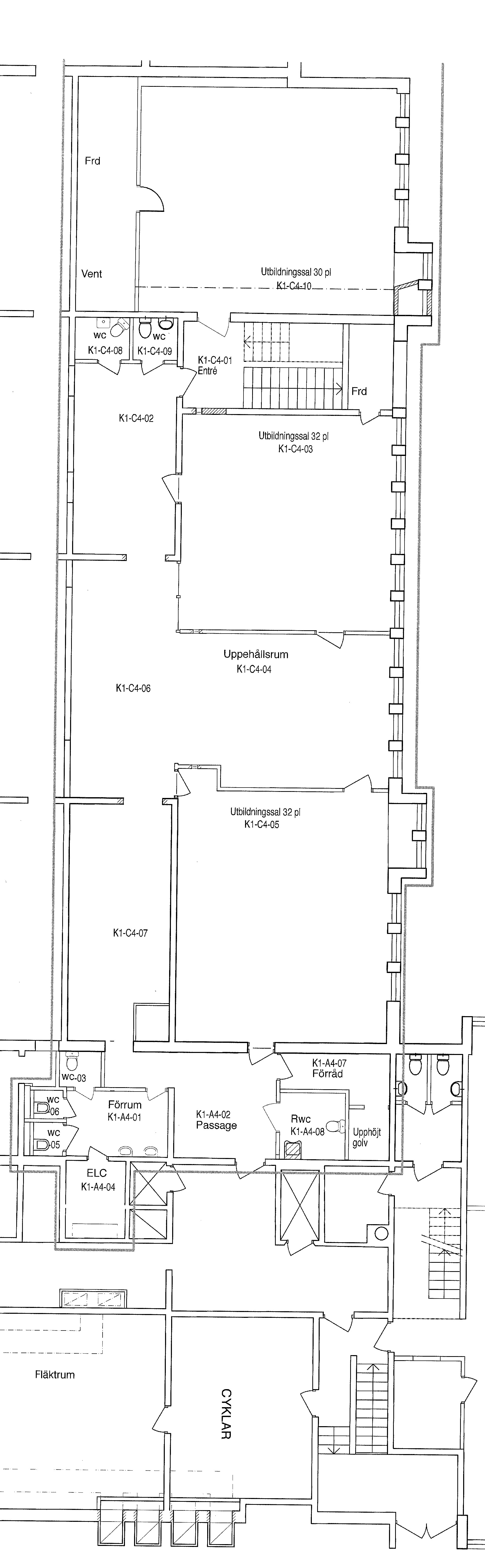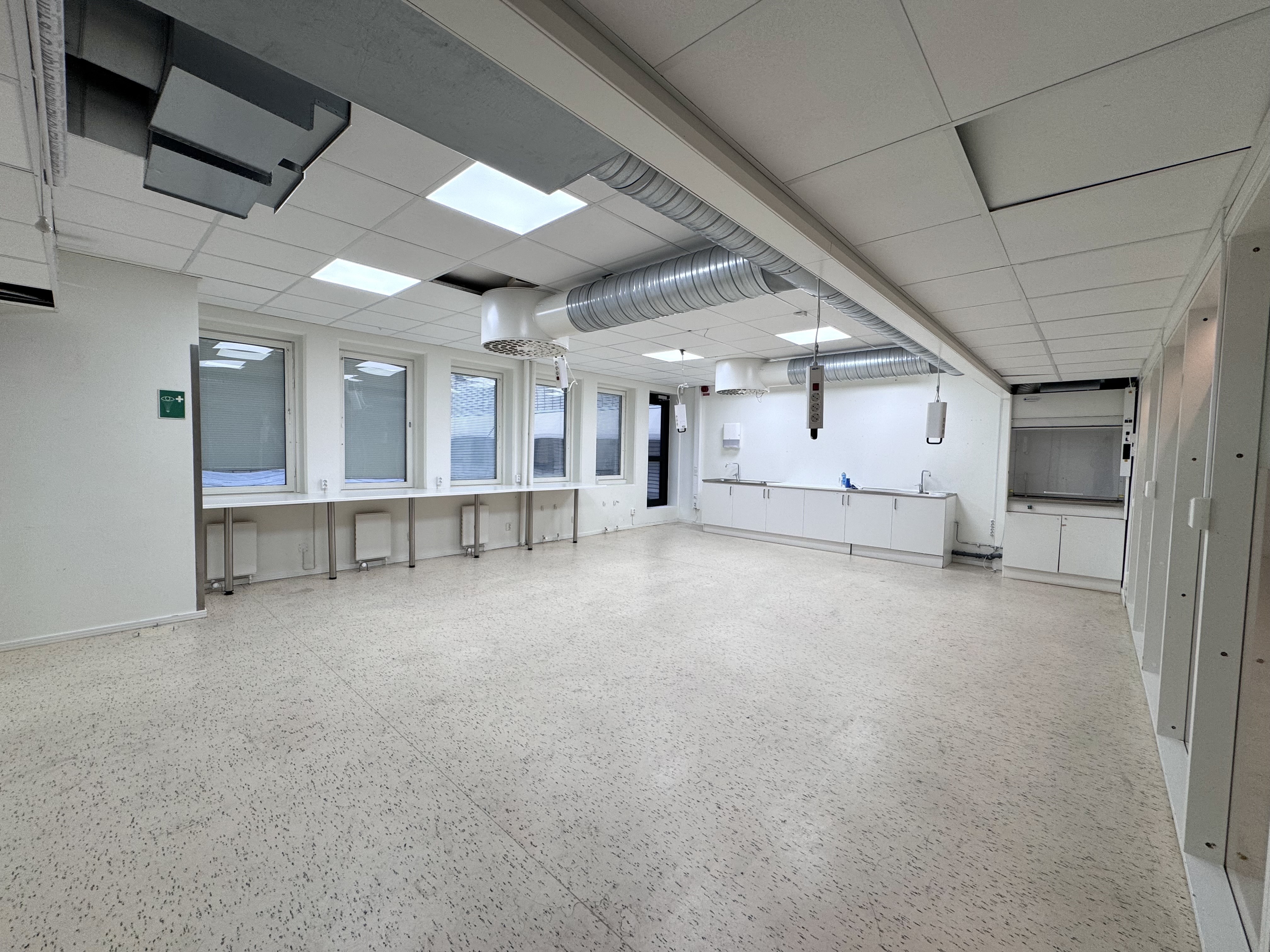 Lokalen erbjuder en flexibela möljligheter till anpassning för olika verksamhetstyper. Idag är det ett flertal stora öppna salar blandat med mindre rum. Flera WC-grupper och kök.