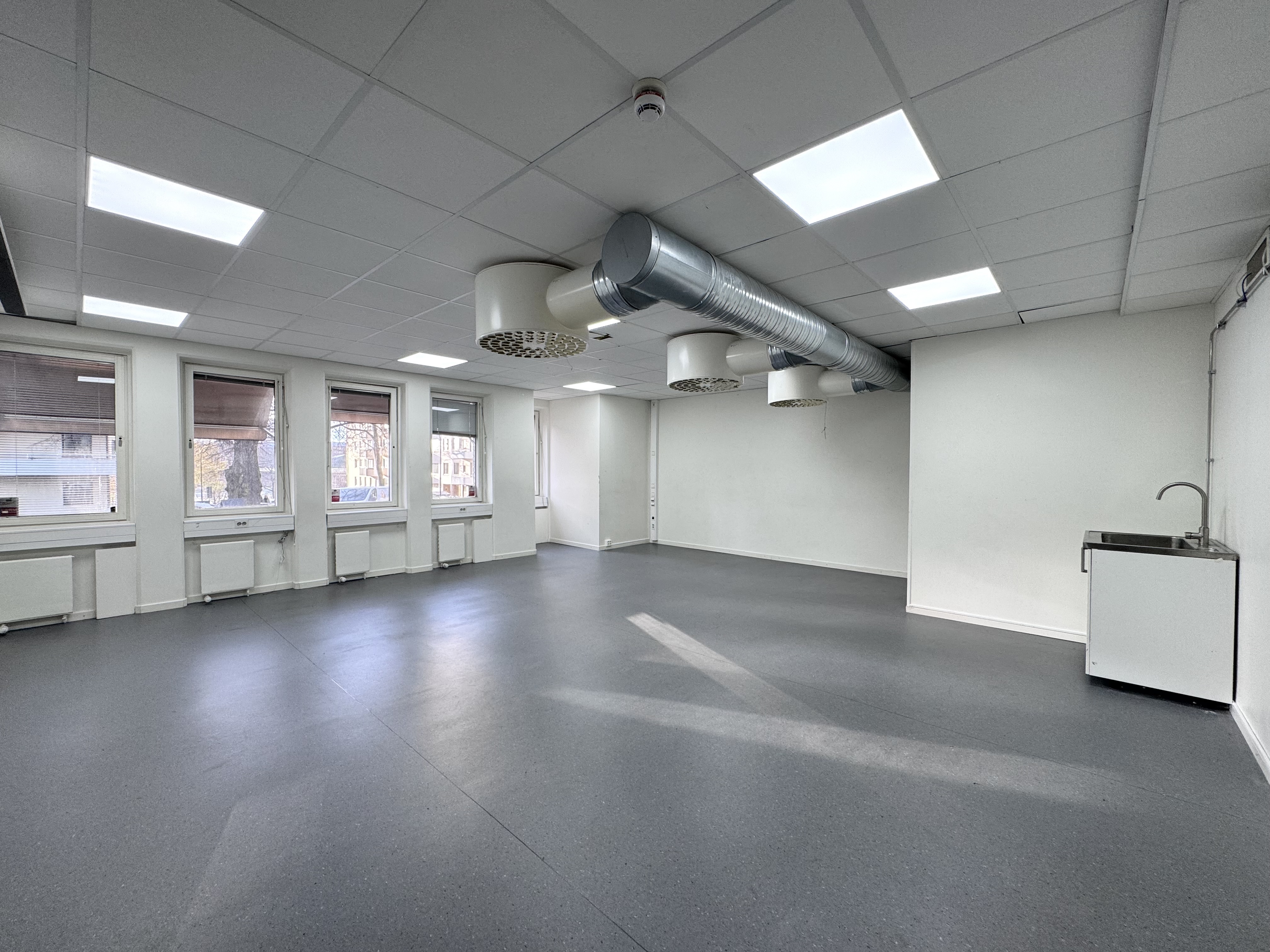 Flexibel och rymlig lokal ledig på Sysslomansgatan 18. Fd undervisningslokal med stora salar.