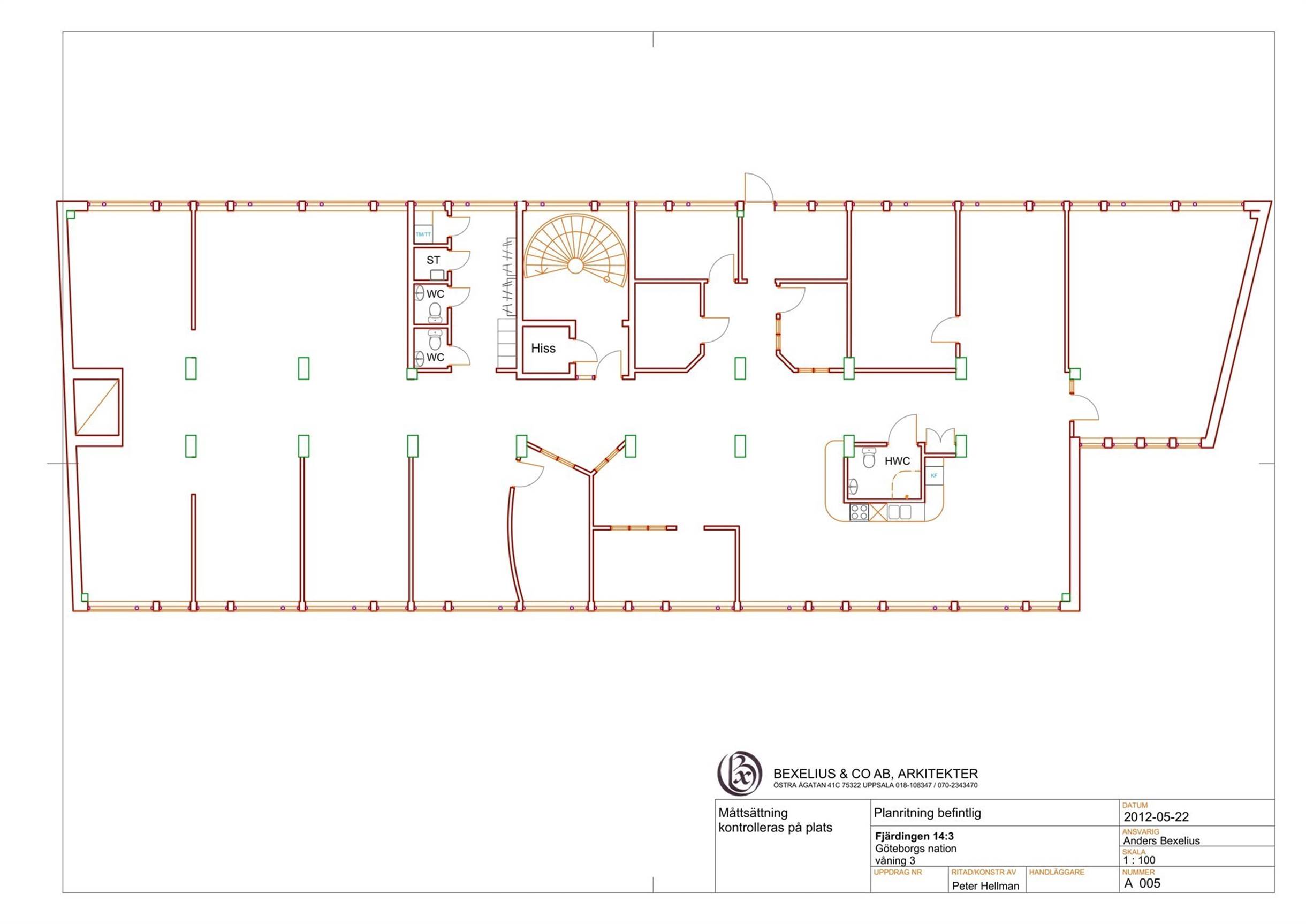 Lokalen har varierad planlösninge där det finns flera rum i varierande storlek som passat för kontor, grupprum och kongferens och även kontoslandskap som inrymmer många arbetsplatser. Det är stora sociala ytor med med ordentligt kök där det finns plats för många personer både med ett rejält matbord men också några mindre bord och en soffgrupp. Intill denna del finns även ett stort konferensrum som rymmer många deltagare. Kontoret ligger högt upp i huset Kontoret ligger högt upp i huset med ett mycket generöst ljusinsläpp. Lätt att anpassa med flera rum eller övrig ändring av planlösning om behovet finns.