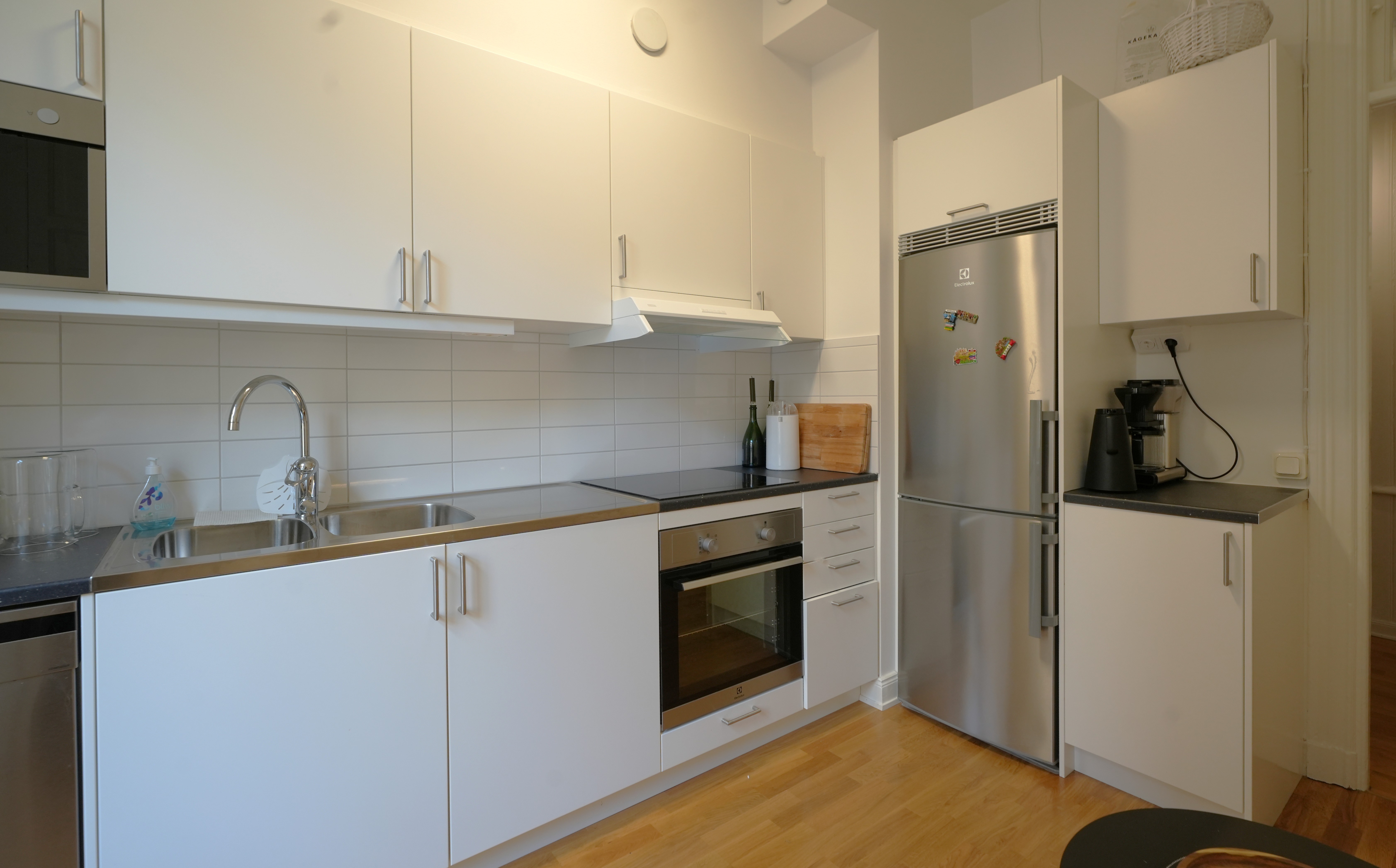 Två rum (varav ett är köket) vetter in mot den lugna och fina gården och två rum ut mot Tomtebogatan.