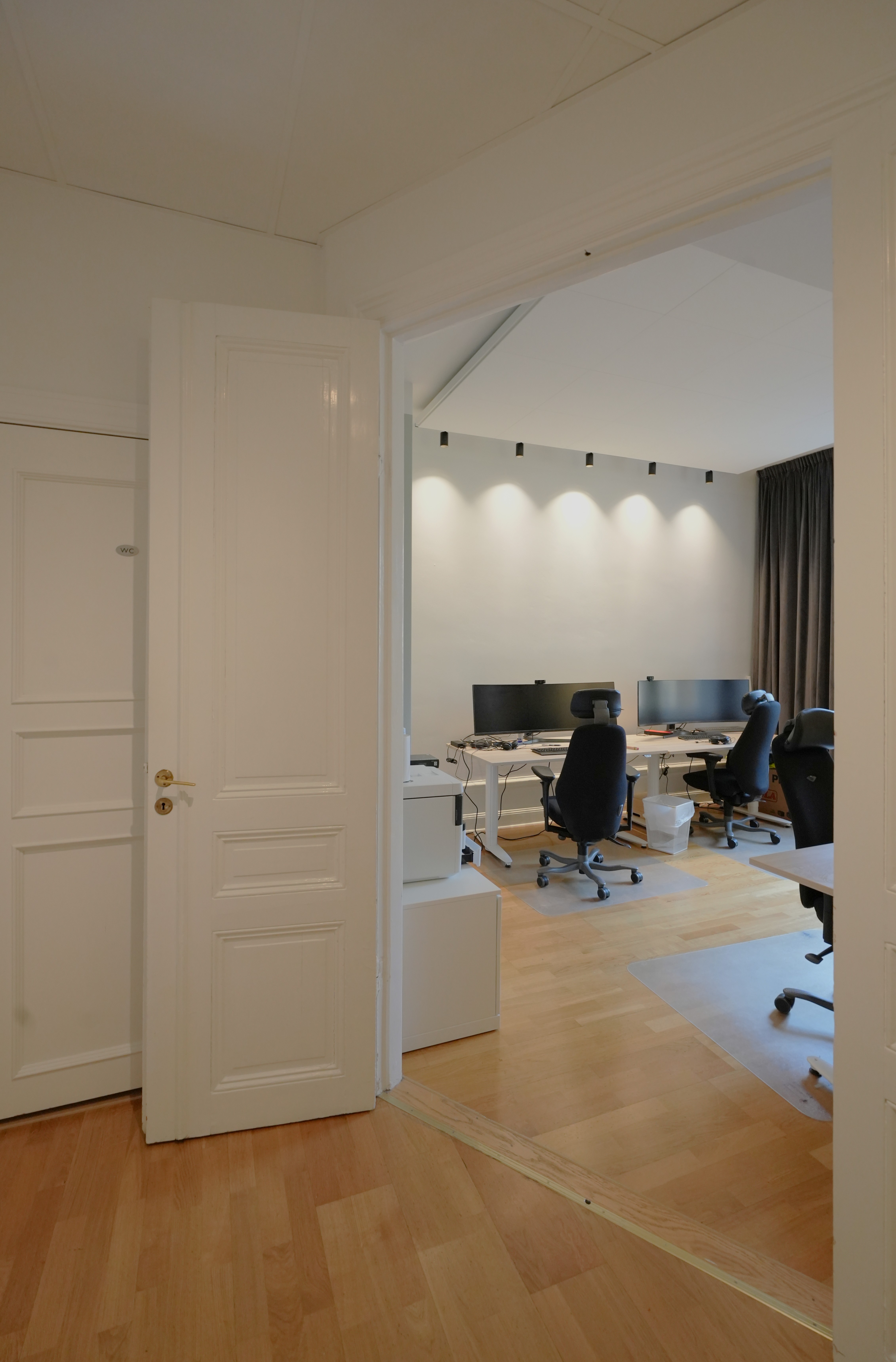 Effektiv och trevlig rumsindelad kontorslokal. En central hall med dörrar in till fyra rum + badrum.