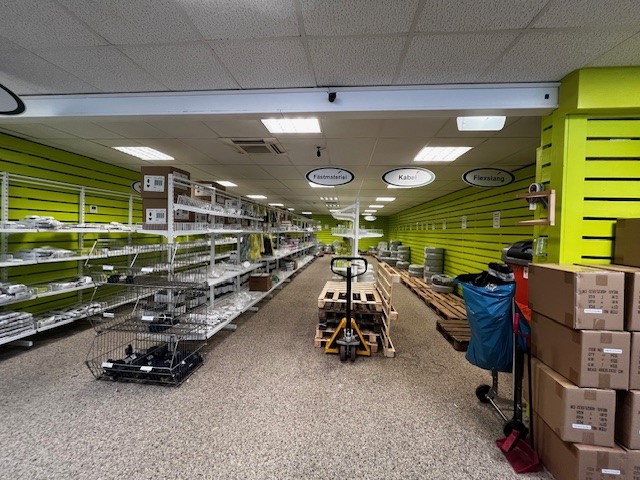 Minsta yta är 399 kvm med butiksdel med skyltfönster. Lokalen kan både öppnas upp och utökas. Flexibla ytor för kontor, lager och butik.