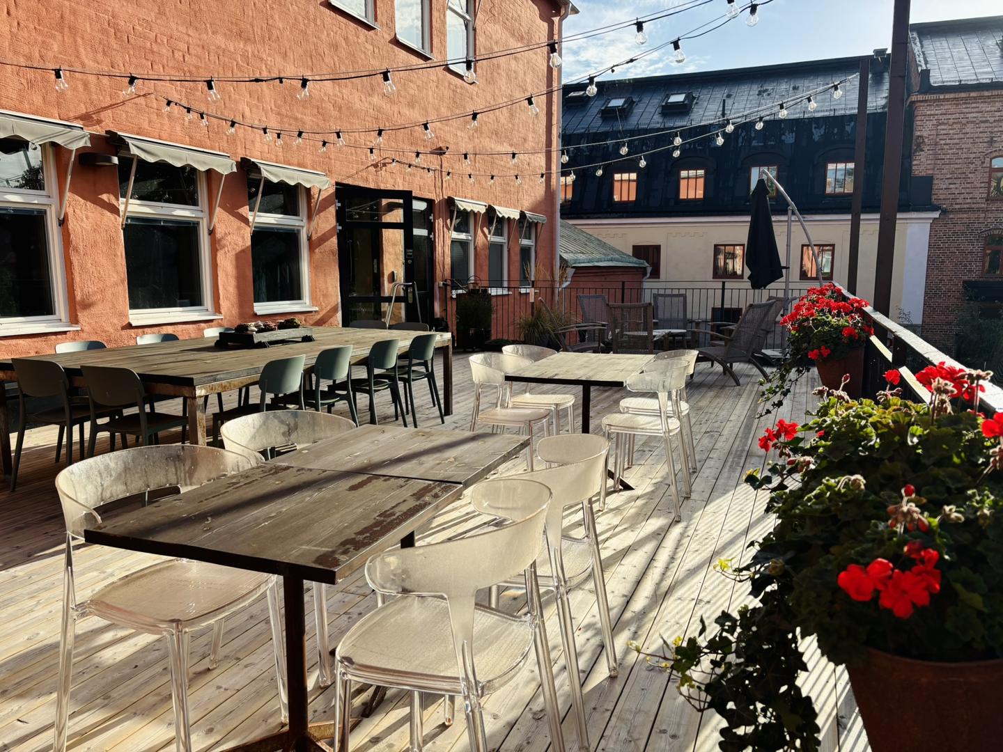 Lokalerna är tillgänglighetsanpassade med hiss, dörröppnare och HWC. I husets källarplan finns dessutom rum för rehab, bastu, omklädningsrum och duschar. Som grädde på moset får du tillgång till Nyköpings härligaste terrass med plats för en kaffe i solen eller informella möten mellan sessionerna.