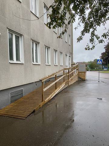 Tillgång till hiss och transportvagn finns, vilket underlättar vid in- och utflyttning.
