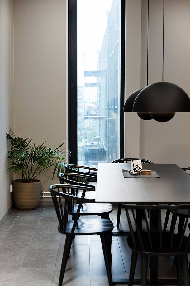 Hjärtat i lokalen är ett kök med öppen social yta, perfekt för lunch, fika eller informella möten. Inredningen är ljus och modern.